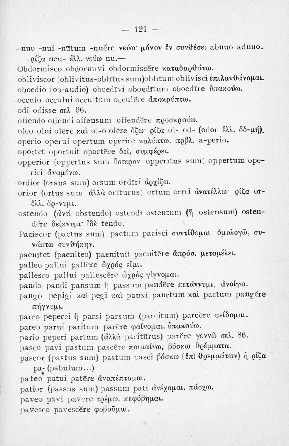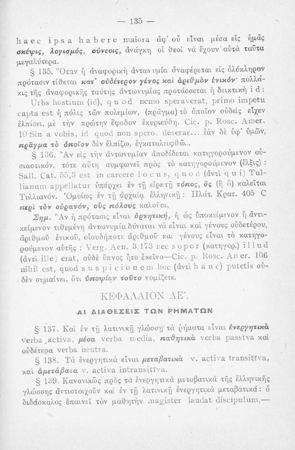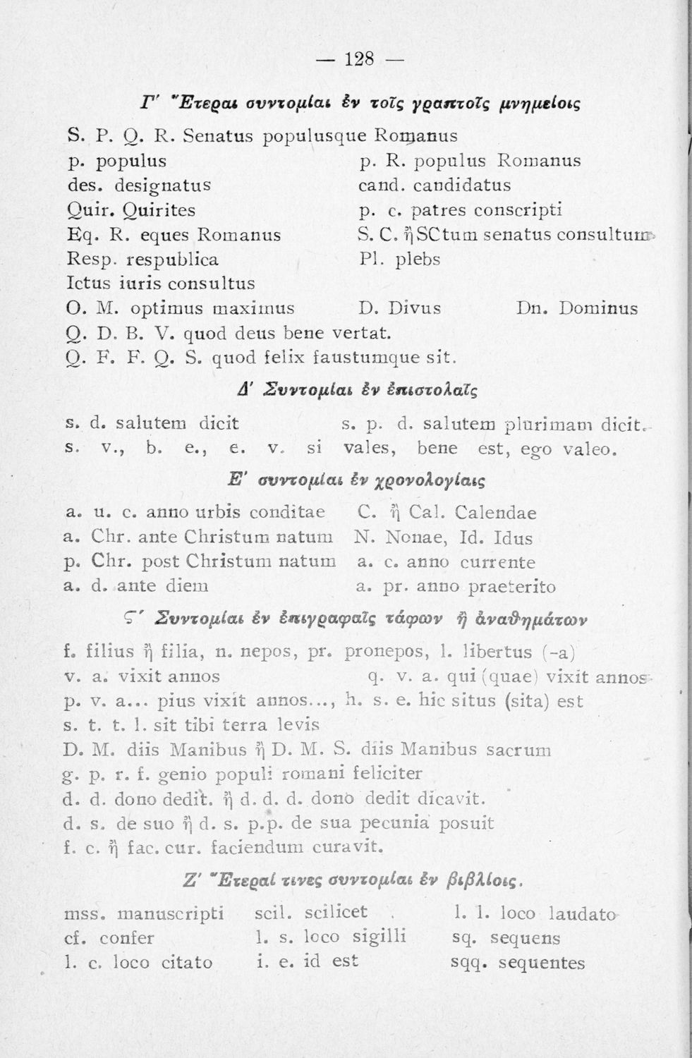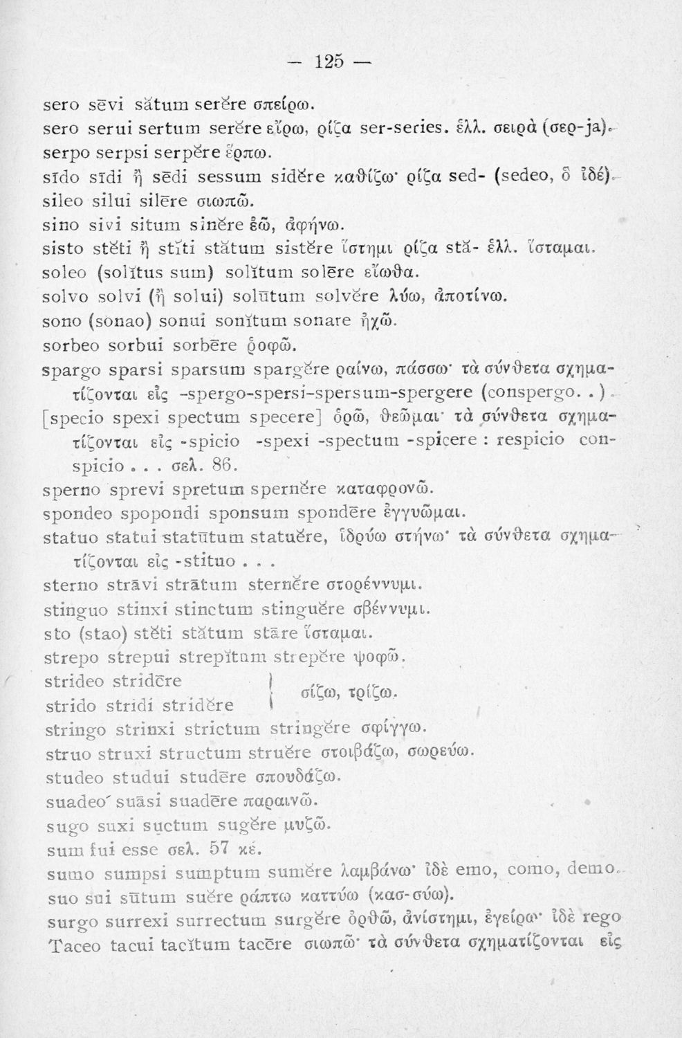 Σχολικό εγχειρίδιο Λατινικών Α΄, Β΄, Γ' Γυμνασίου που περιλαμβάνει γραμματική και συντακτικό και είναι χωρισμένο σε φθογγολογικό, τυπολογικό και ετυμολογικό μέρος.
