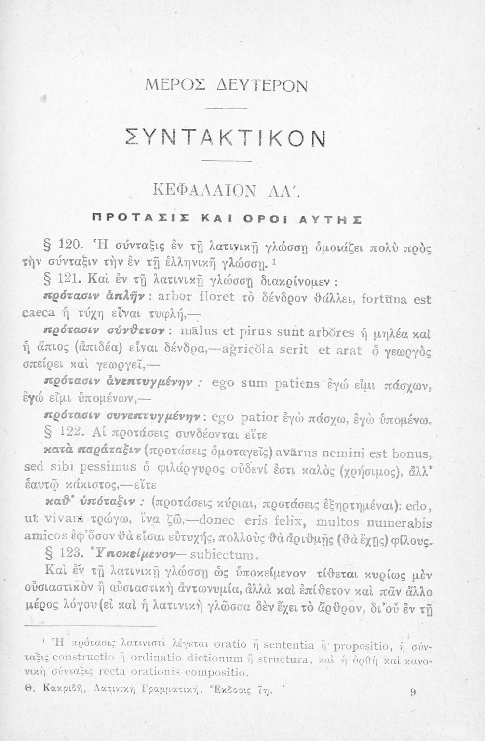 Γραμματική της λατινικής γλώσσης προς χρήσιν της Α΄ Β΄ και Γ΄ τάξεως των Γυμνασίων