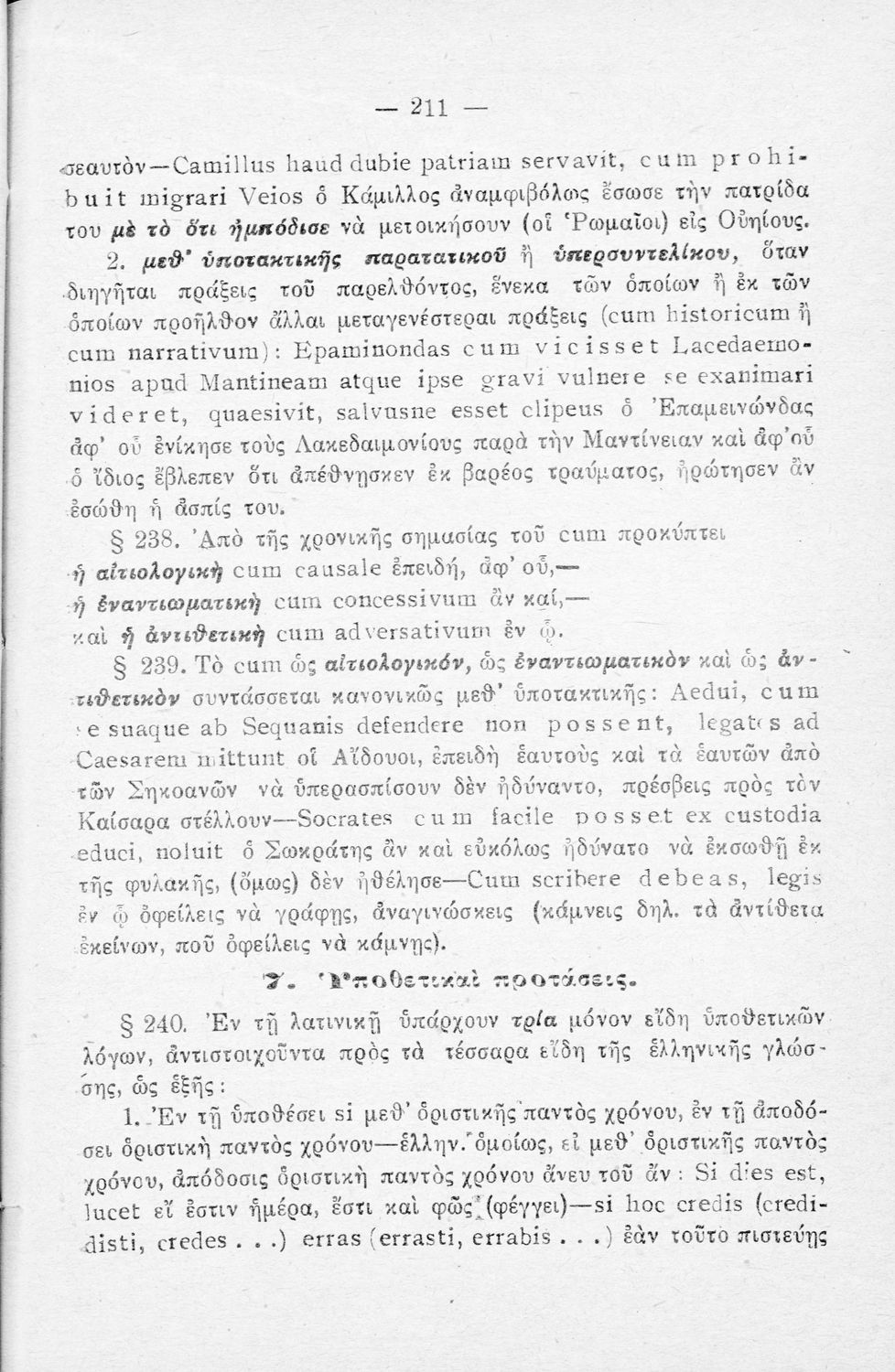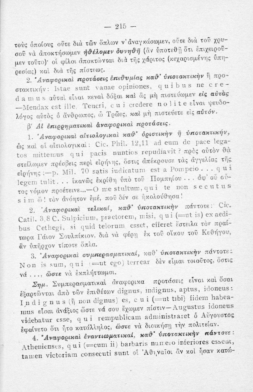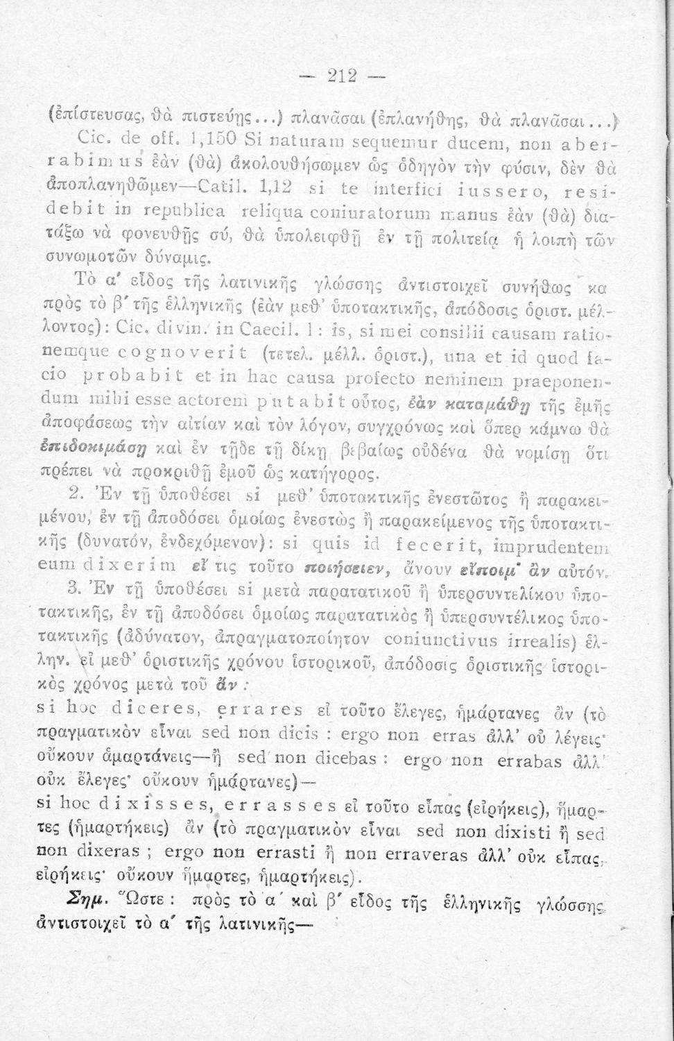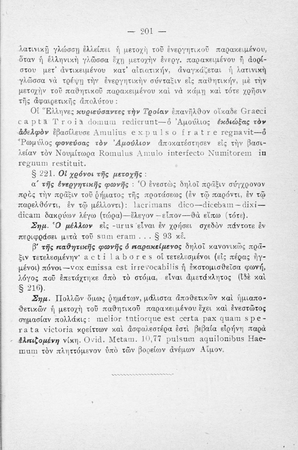 Σχολικό εγχειρίδιο Λατινικών Α΄, Β΄, Γ' Γυμνασίου που περιλαμβάνει γραμματική και συντακτικό και είναι χωρισμένο σε φθογγολογικό, τυπολογικό και ετυμολογικό μέρος.