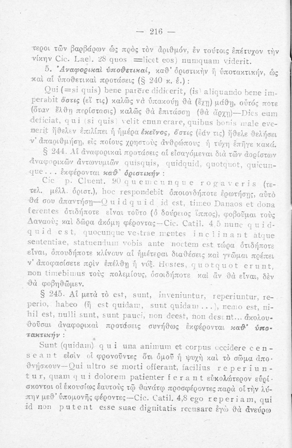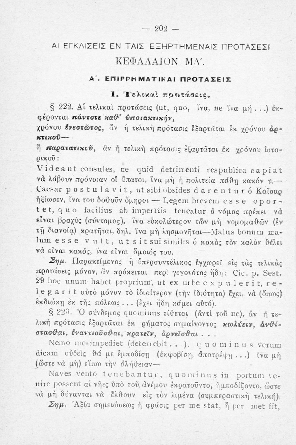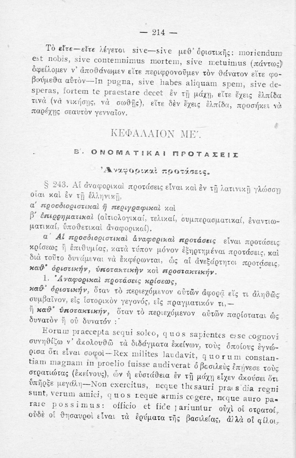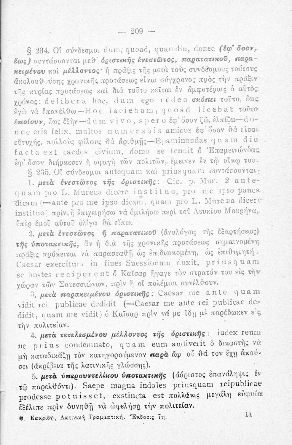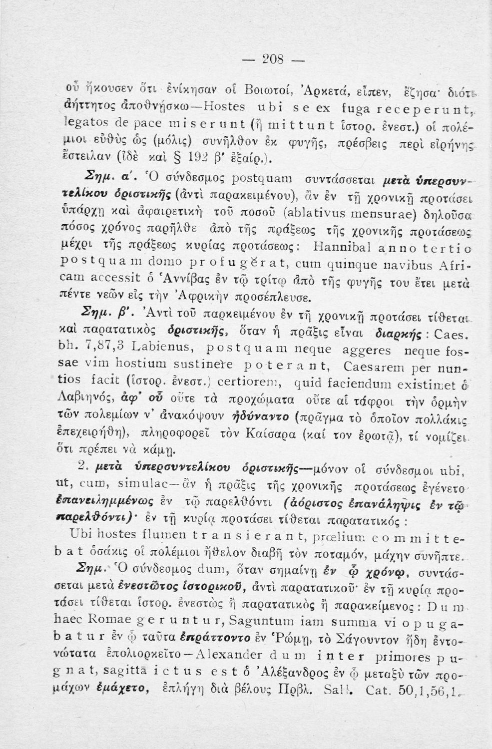 Σχολικό εγχειρίδιο Λατινικών Α΄, Β΄, Γ' Γυμνασίου που περιλαμβάνει γραμματική και συντακτικό και είναι χωρισμένο σε φθογγολογικό, τυπολογικό και ετυμολογικό μέρος.