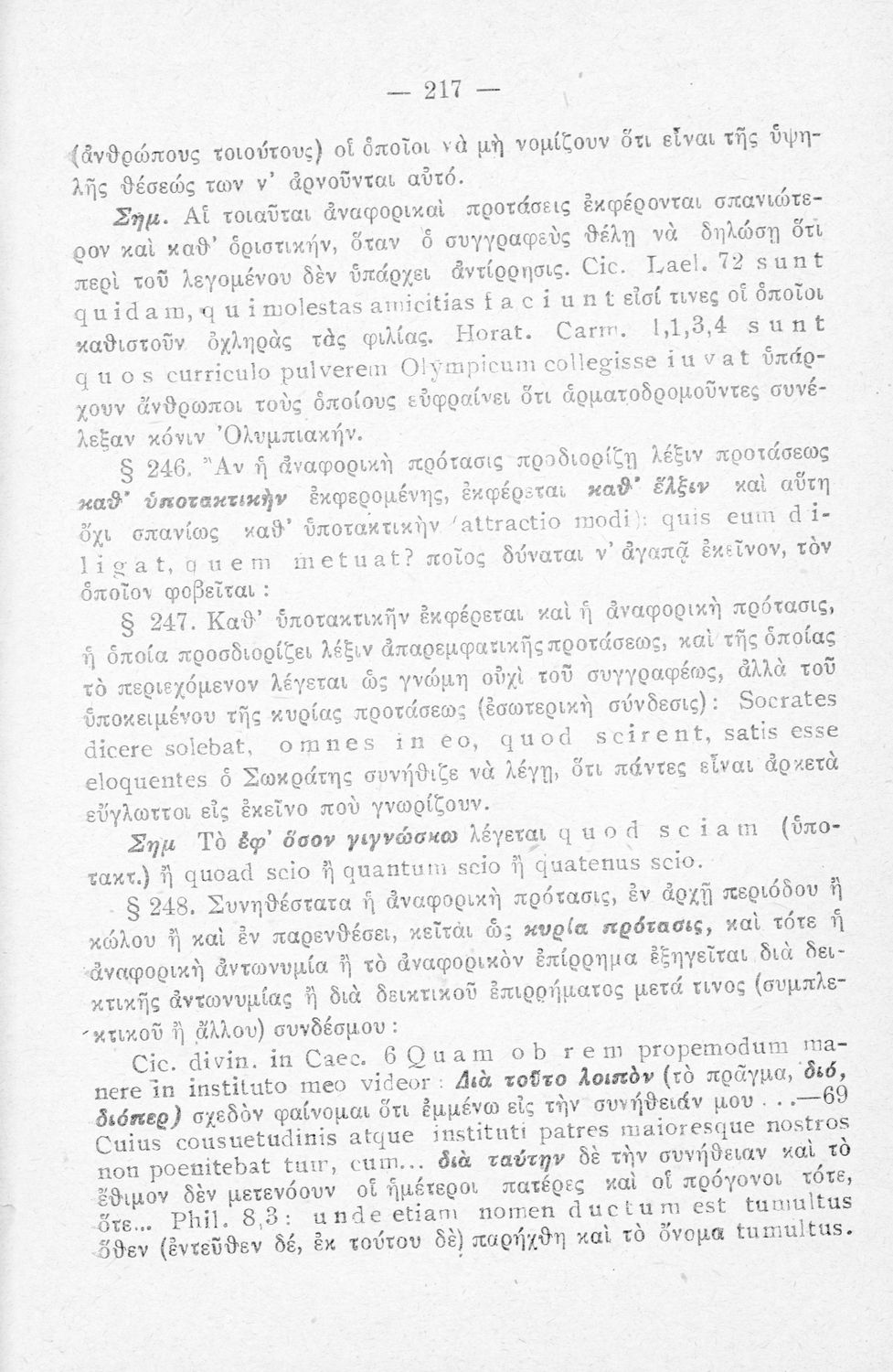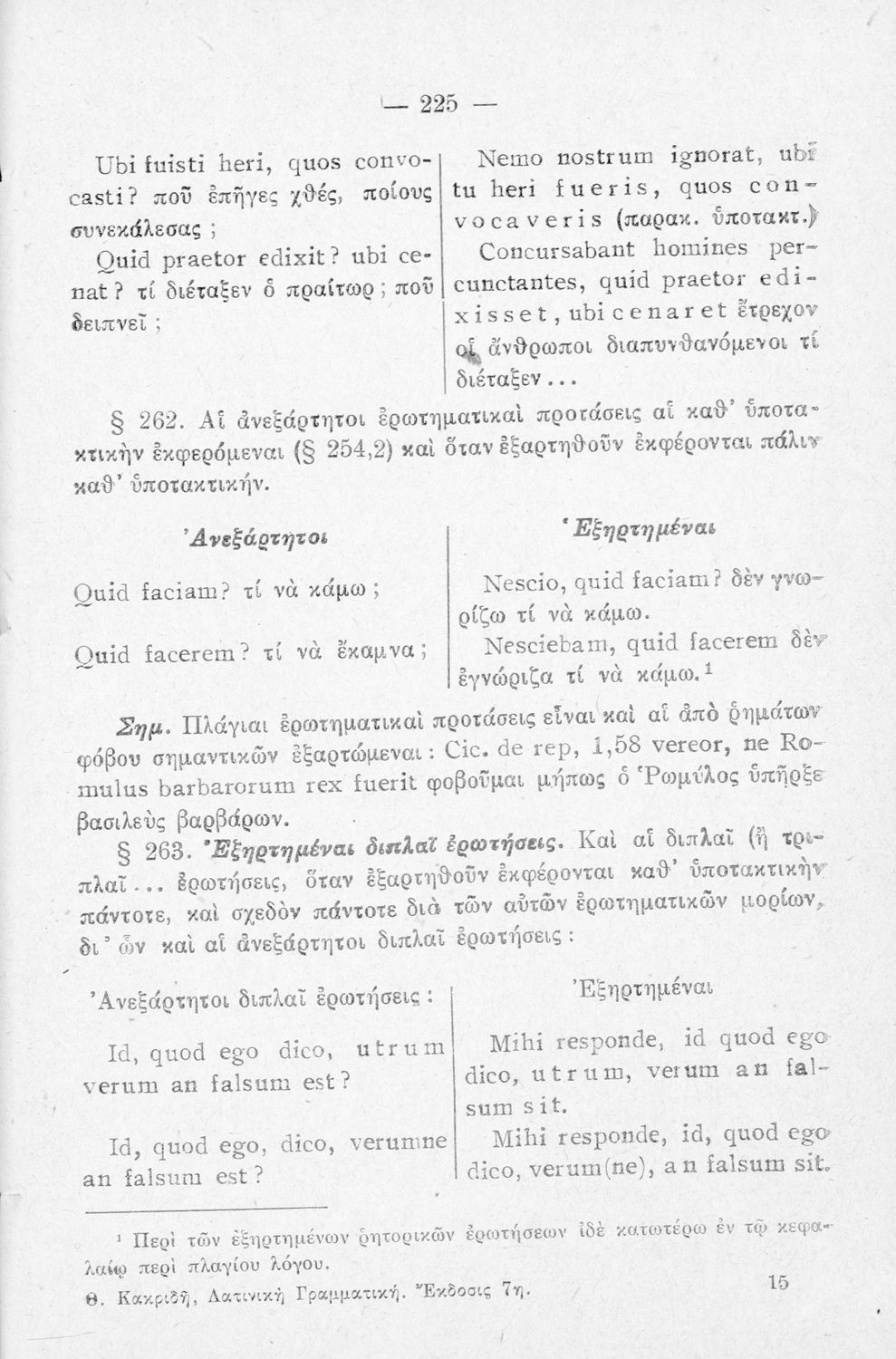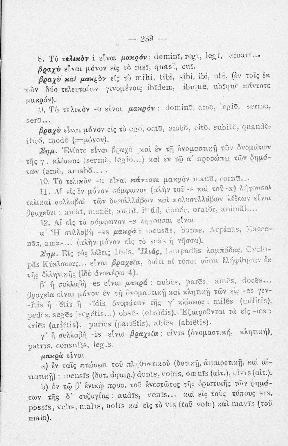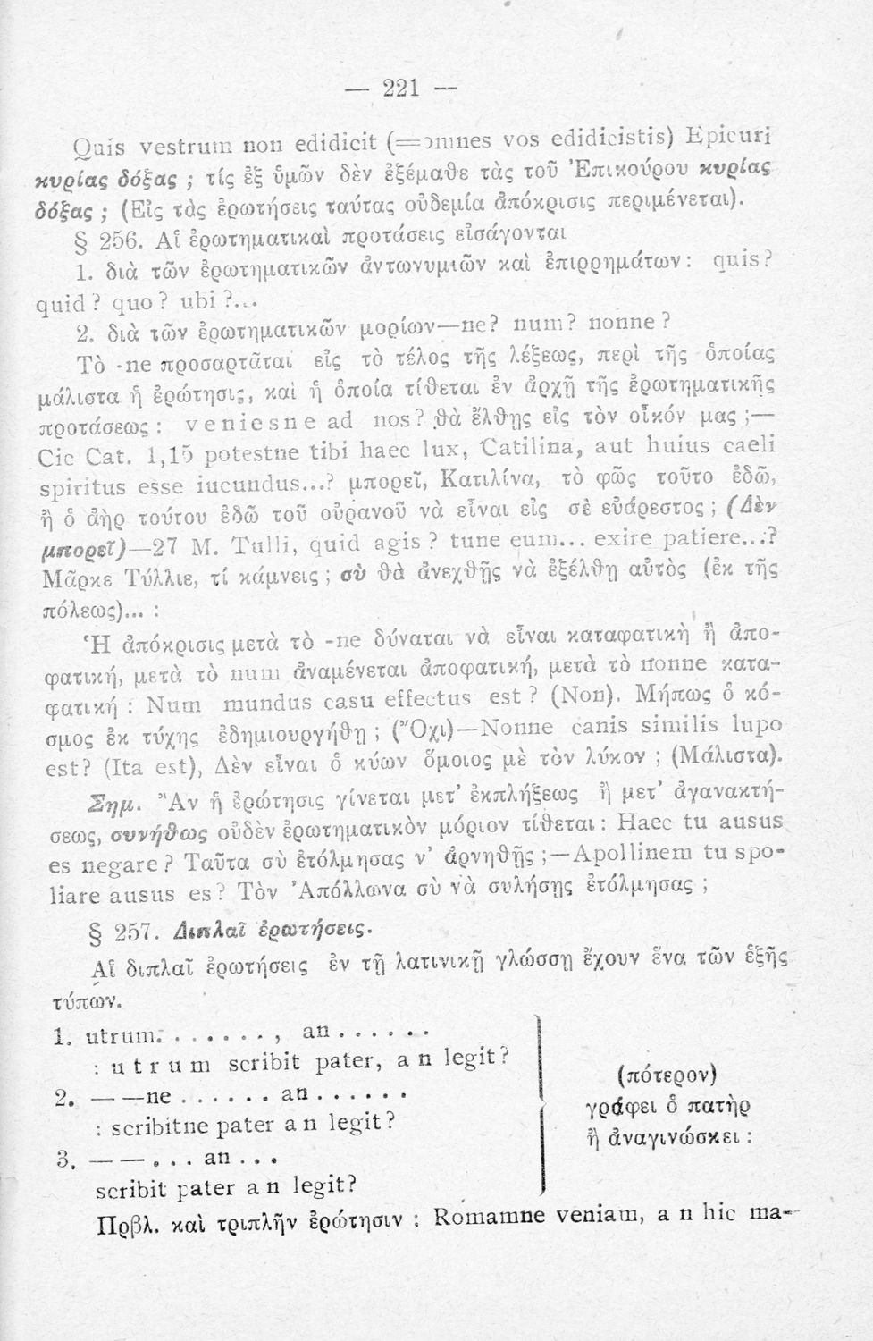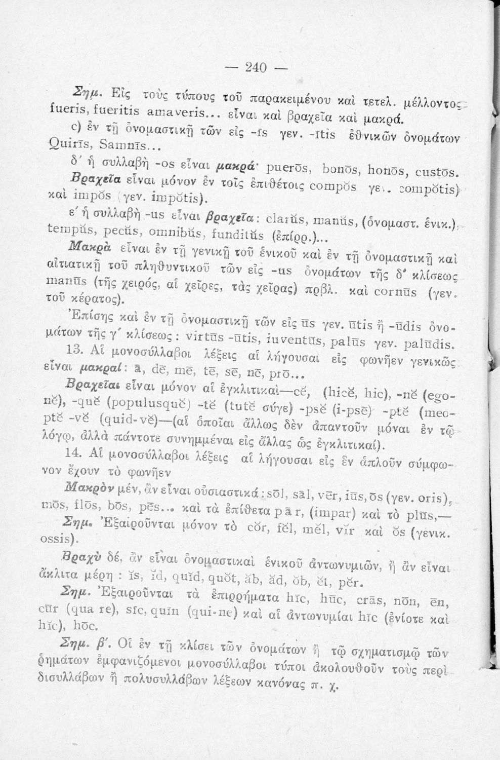Σχολικό εγχειρίδιο Λατινικών Α΄, Β΄, Γ' Γυμνασίου που περιλαμβάνει γραμματική και συντακτικό και είναι χωρισμένο σε φθογγολογικό, τυπολογικό και ετυμολογικό μέρος.
