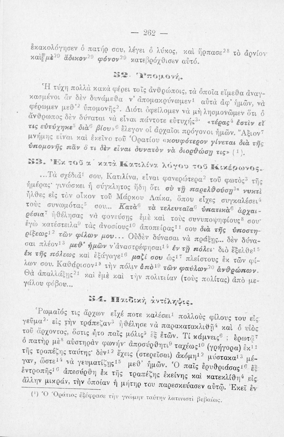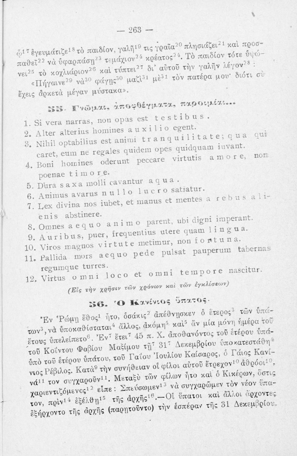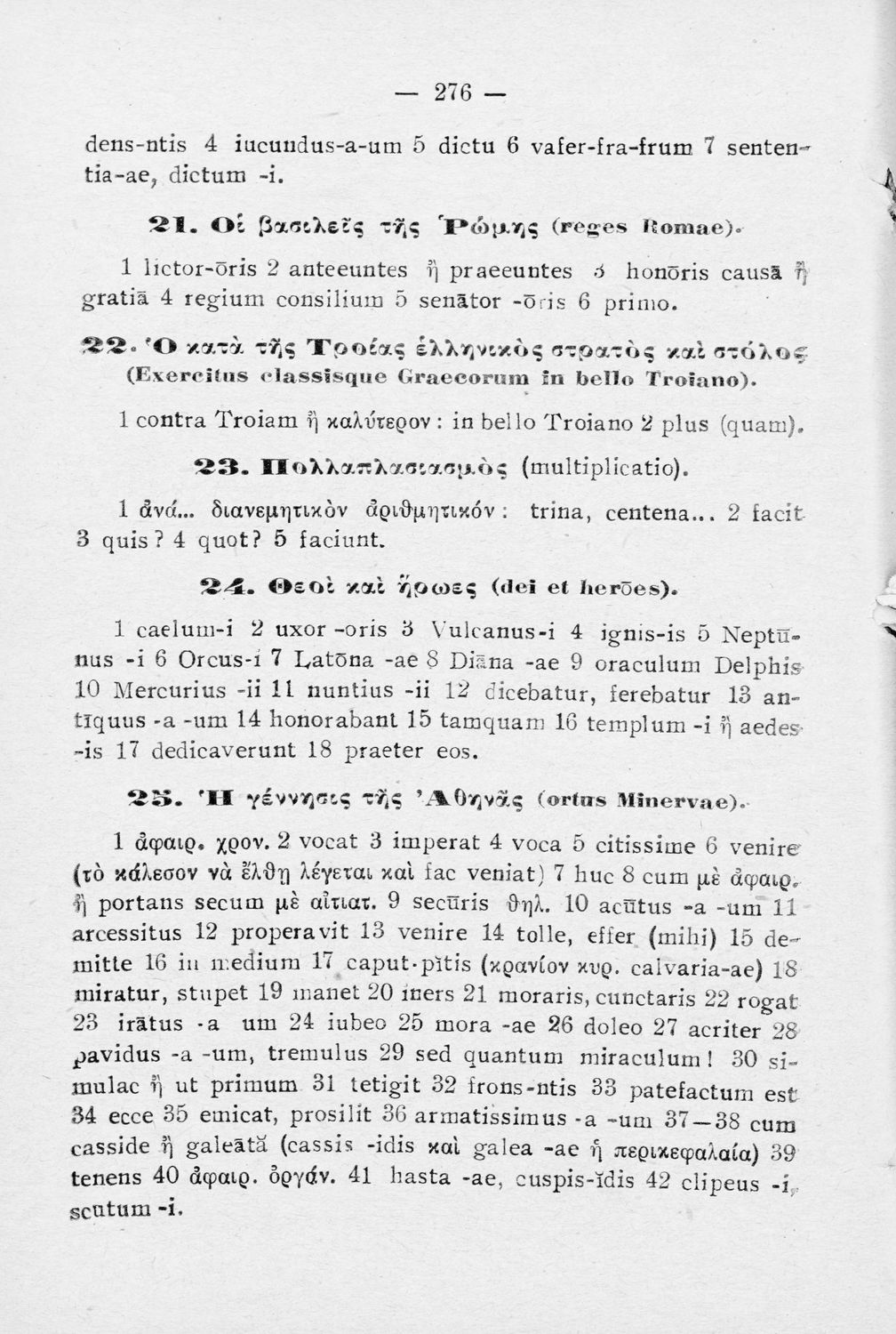 Σχολικό εγχειρίδιο Λατινικών Α΄, Β΄, Γ' Γυμνασίου που περιλαμβάνει γραμματική και συντακτικό και είναι χωρισμένο σε φθογγολογικό, τυπολογικό και ετυμολογικό μέρος.