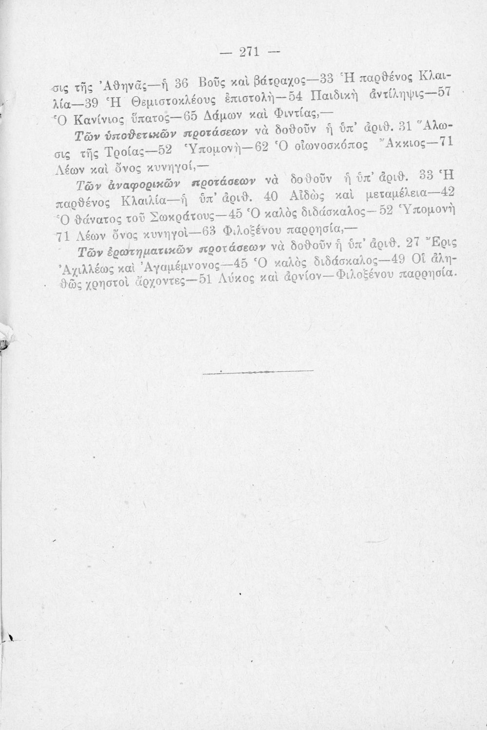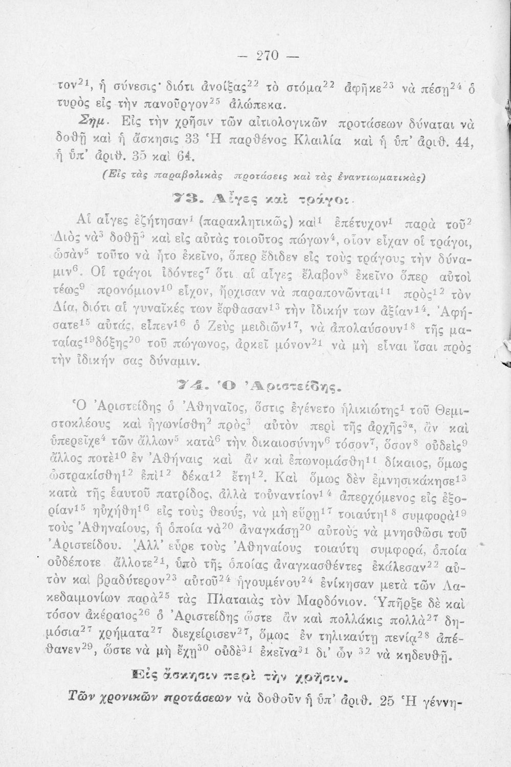 LDR 01288 2200217 4500 035 ## _a01-18766 040 ## _aΙνστιτούτο Εκπαιδευτικής Πολιτικής 041 ## _ael 100 ## _aΘεοφάνης Α. Κακριδής 110 ## _a18766 245 0# _aΓραμματική της λατινικής γλώσσης προς χρήσιν της Α΄ Β΄ και Γ΄ τάξεως των Γυμνασίων 250 ## _a7η Έκδοση 260 ## _aΑθήνα _bΙωάννης Δ. Κολλάρος _c1927 300 ## _a288 _c20 520 ## _aΣχολικό εγχειρίδιο Λατινικών Α΄, Β΄, Γ' Γυμνασίου που περιλαμβάνει γραμματική και συντακτικό και είναι χωρισμένο σε φθογγολογικό, τυπολογικό και ετυμολογικό μέρος. 521 ## _aΑ' Γυμνασίου / Β' Γυμνασίου / Γ' Γυμνασίου 522 ## _aΕλλάδα 546 ## _aΚαθαρεύουσα 563 ## _aΣκληρό Εξώφυλλο 583 ## _a13074/24-4-1919 _c1919 650 #4 _aΑνώμαλα ρήματα _aΕνεργητική και παθητική φωνή _aΜέρη του λόγου _aΠροθέσεις _aΣυζυγίες _aΥποθετικοί λόγοι