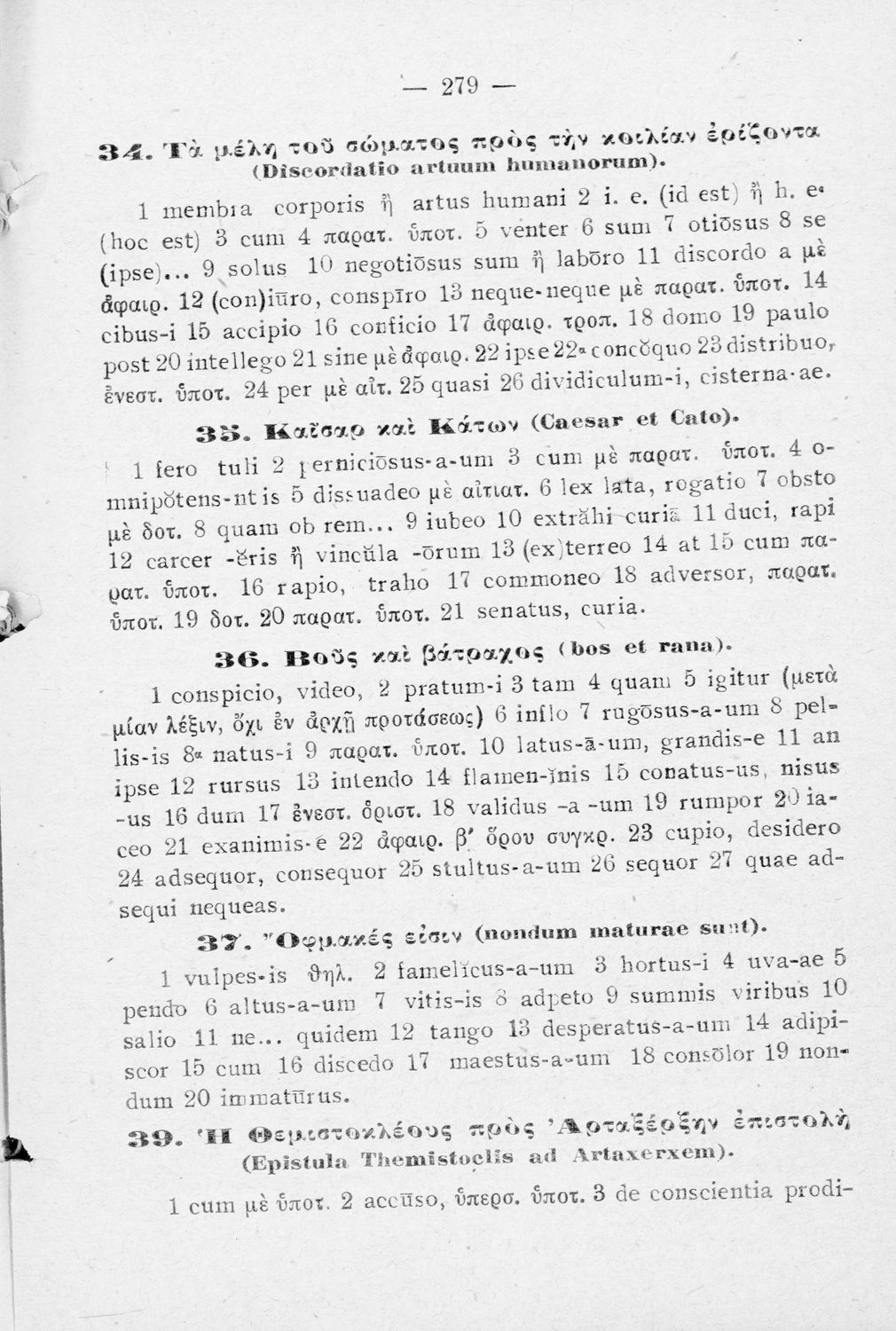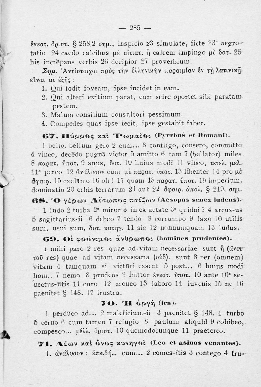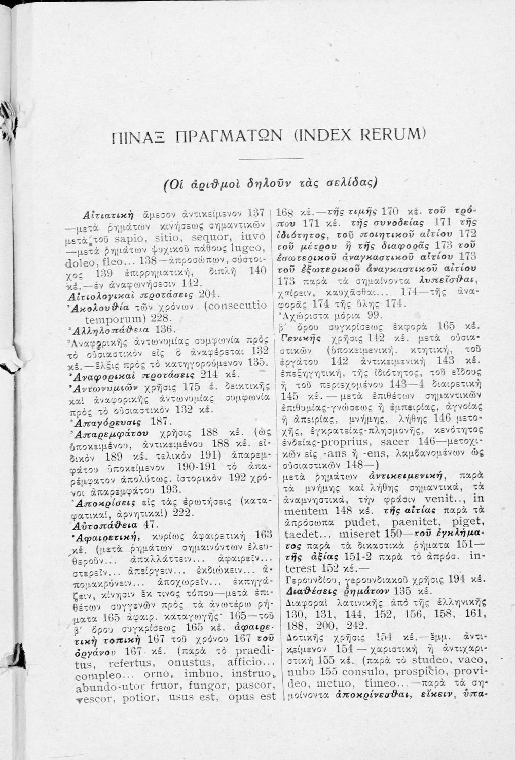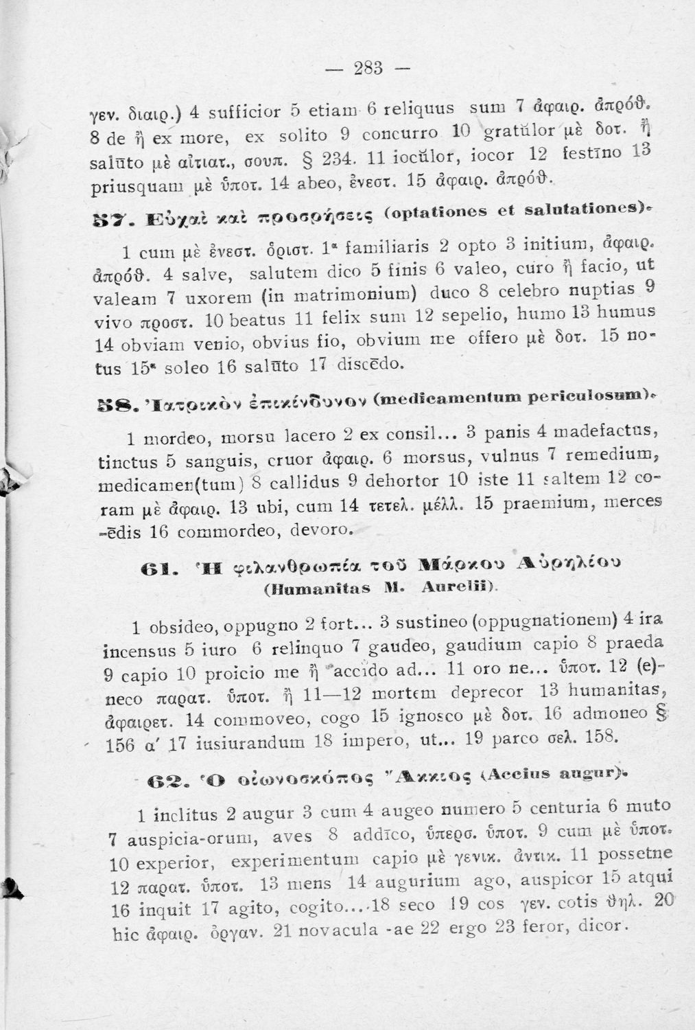 Σχολικό εγχειρίδιο Λατινικών Α΄, Β΄, Γ' Γυμνασίου που περιλαμβάνει γραμματική και συντακτικό και είναι χωρισμένο σε φθογγολογικό, τυπολογικό και ετυμολογικό μέρος.