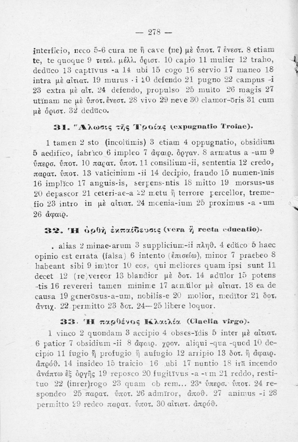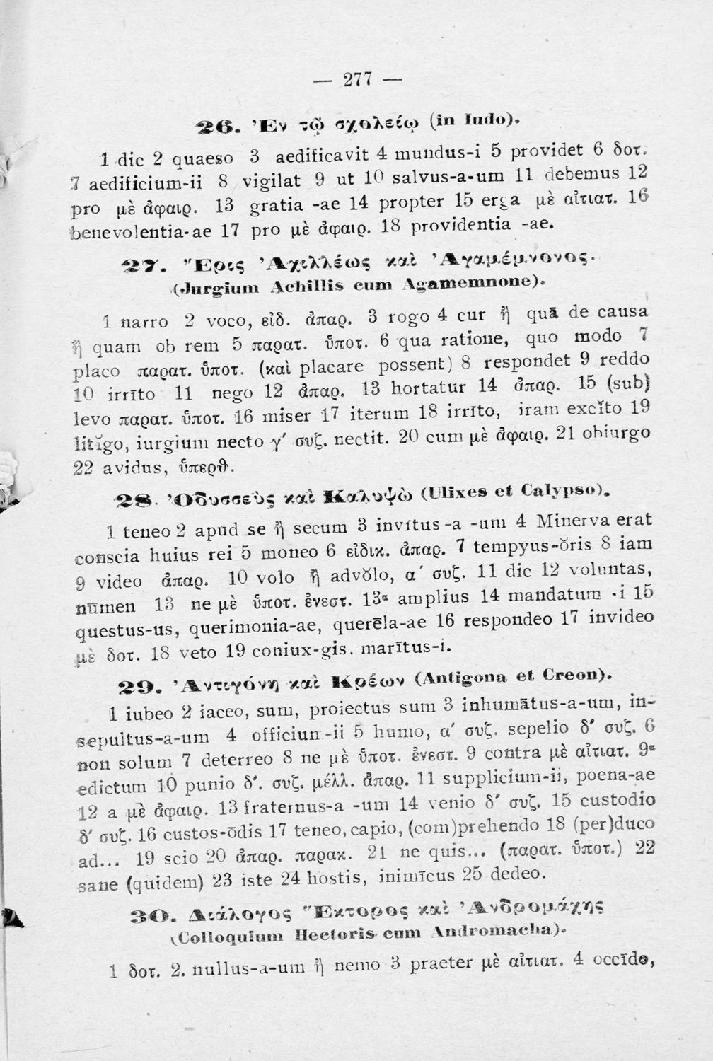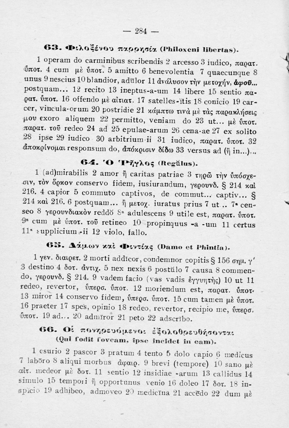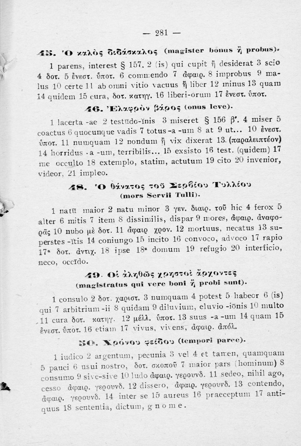 Σχολικό εγχειρίδιο Λατινικών Α΄, Β΄, Γ' Γυμνασίου που περιλαμβάνει γραμματική και συντακτικό και είναι χωρισμένο σε φθογγολογικό, τυπολογικό και ετυμολογικό μέρος.