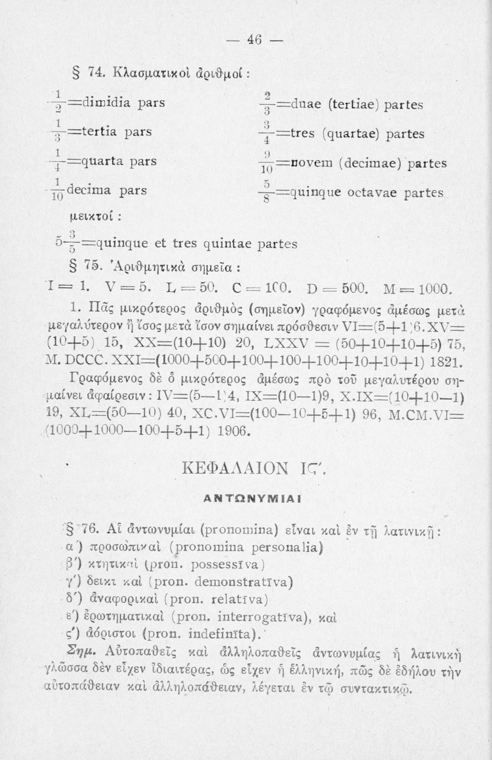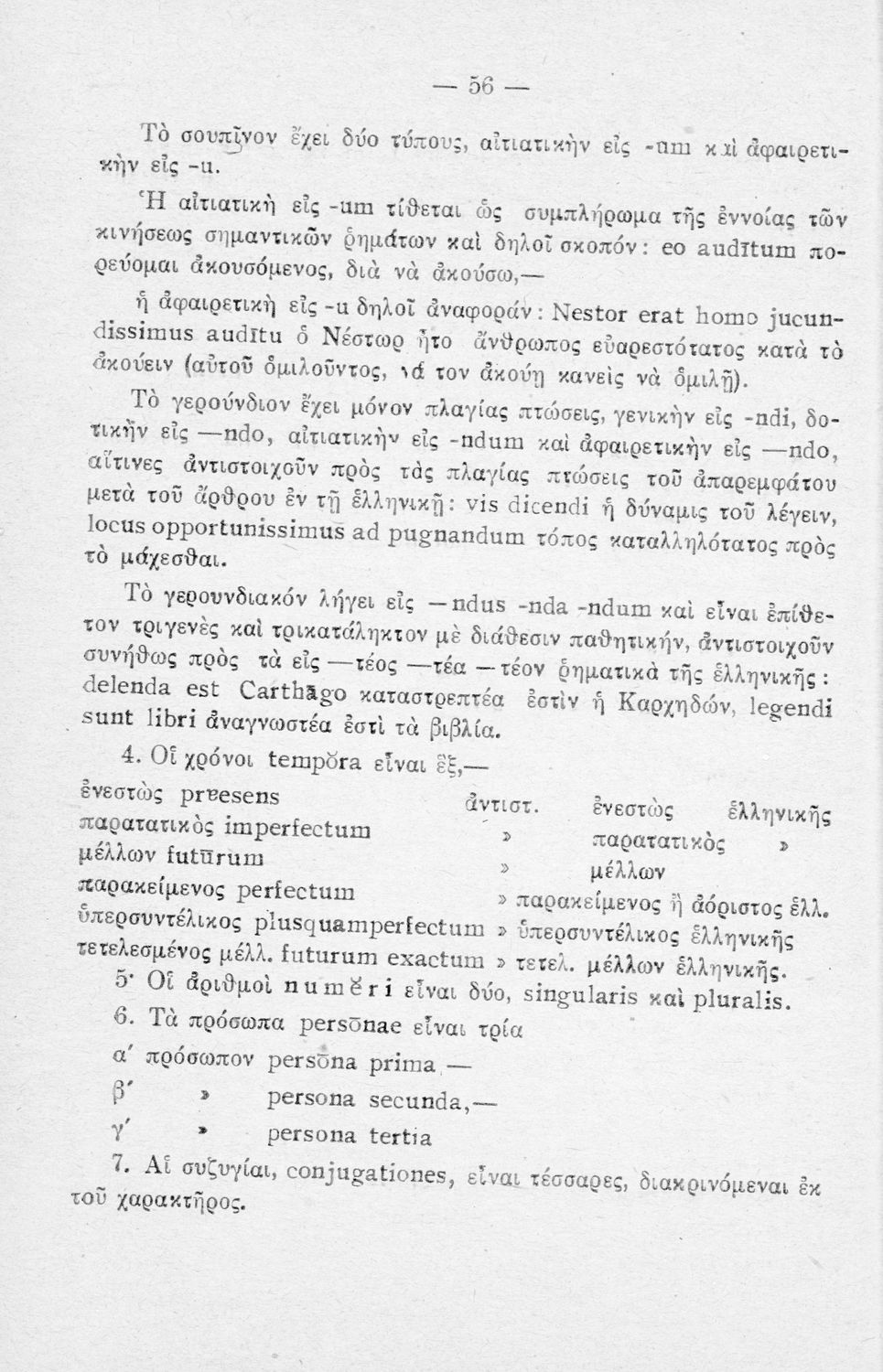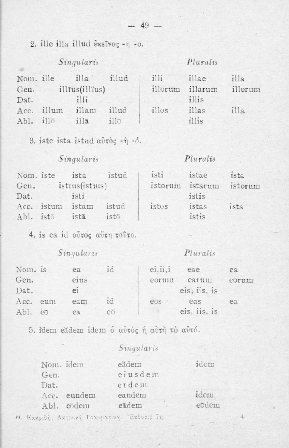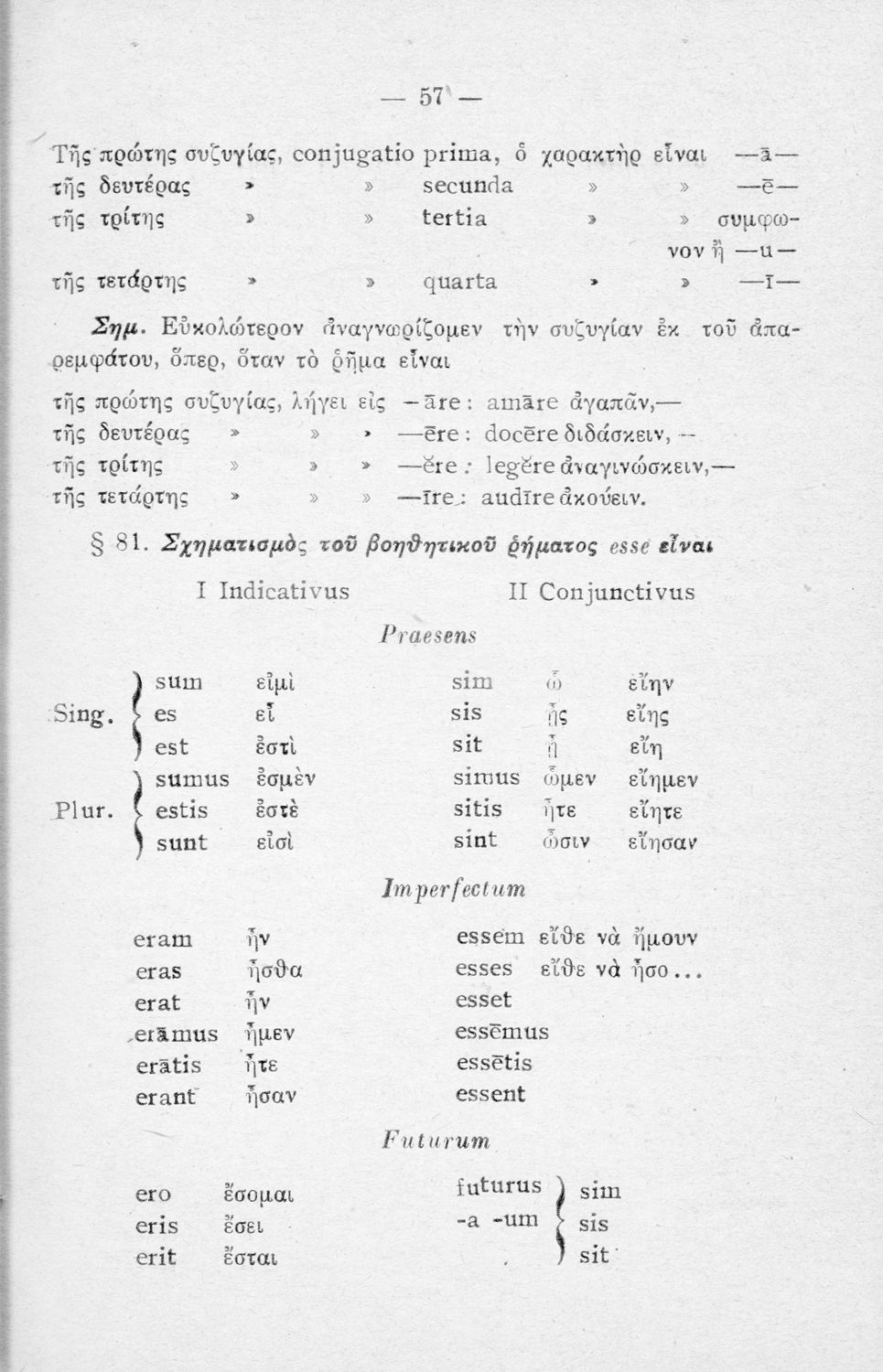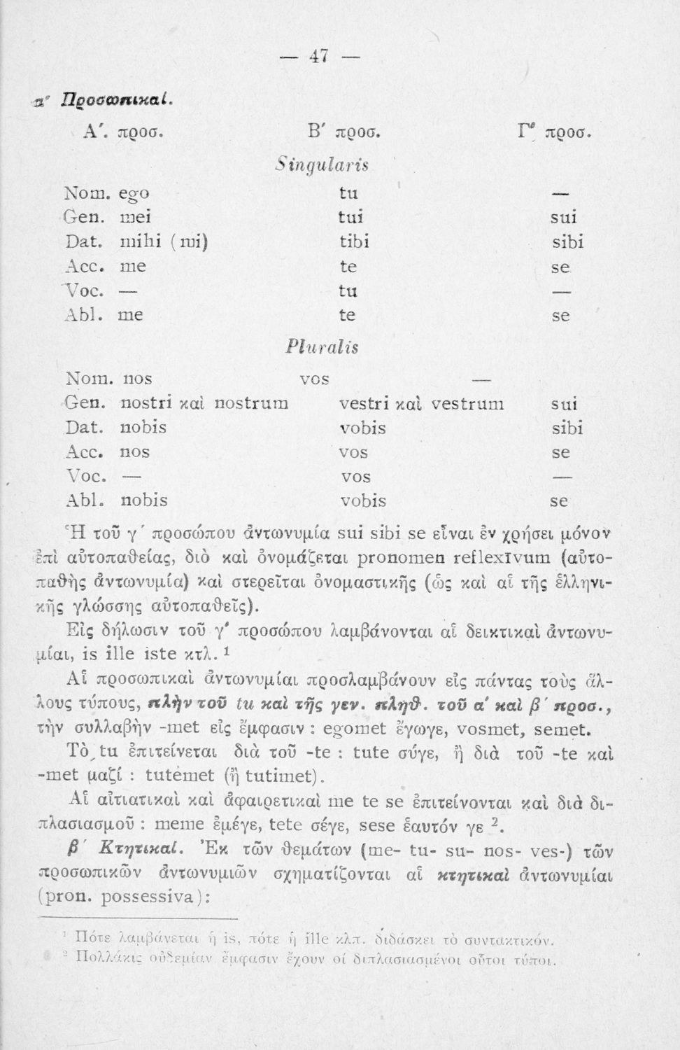 Σχολικό εγχειρίδιο Λατινικών Α΄, Β΄, Γ' Γυμνασίου που περιλαμβάνει γραμματική και συντακτικό και είναι χωρισμένο σε φθογγολογικό, τυπολογικό και ετυμολογικό μέρος.