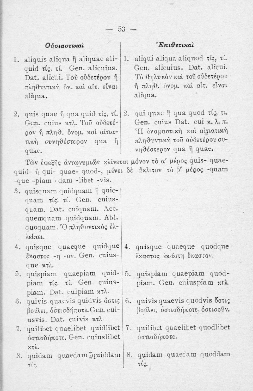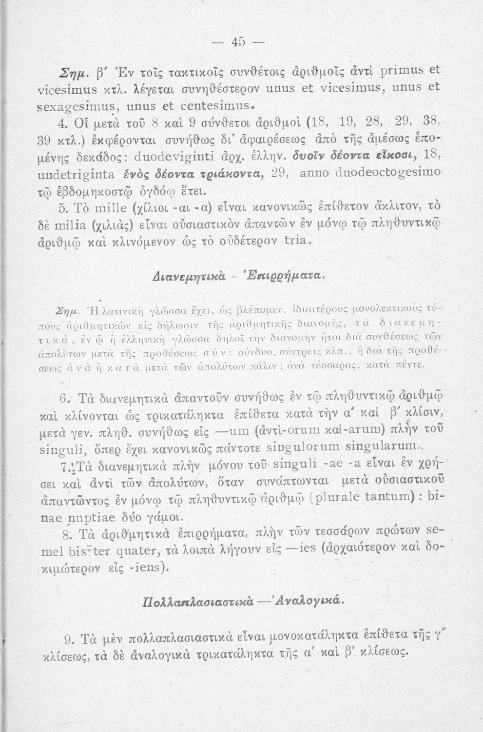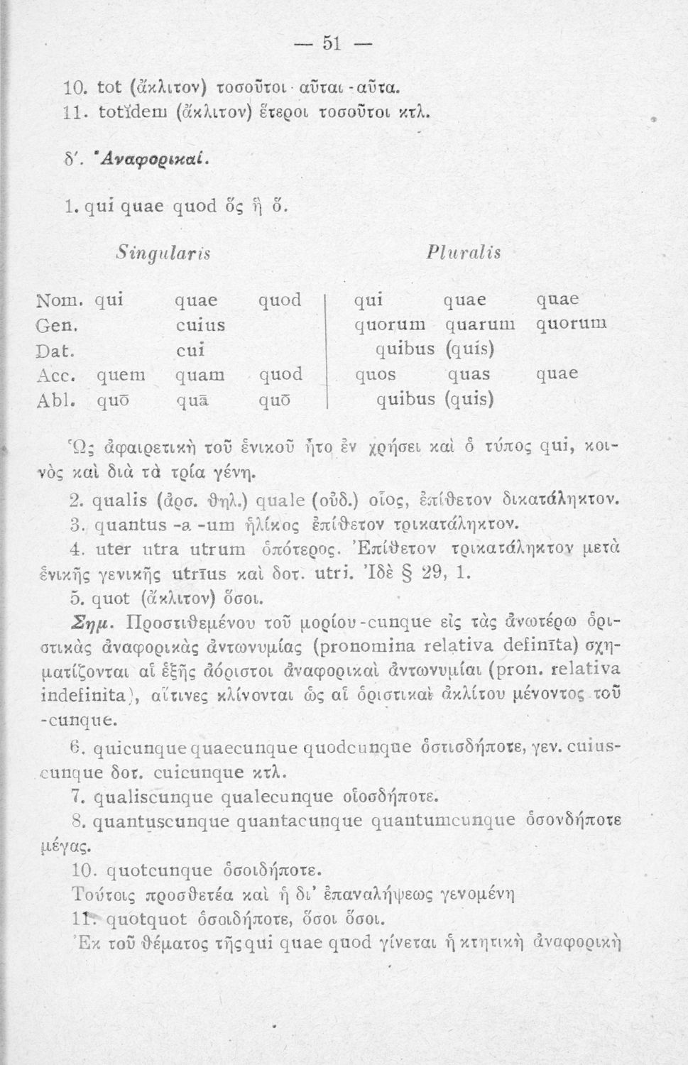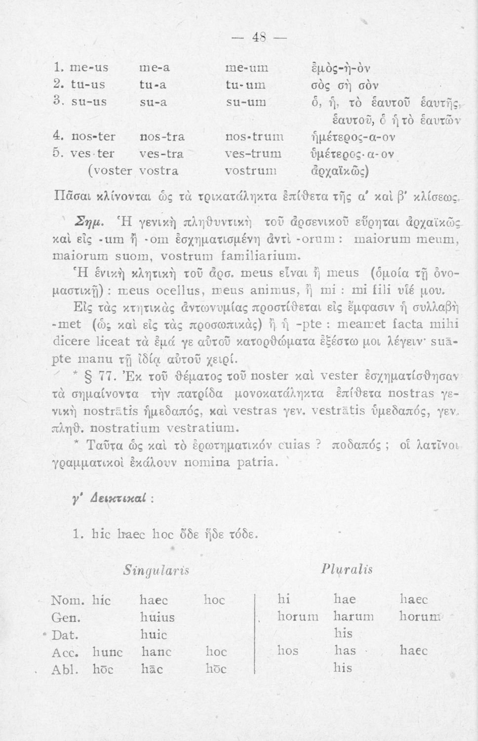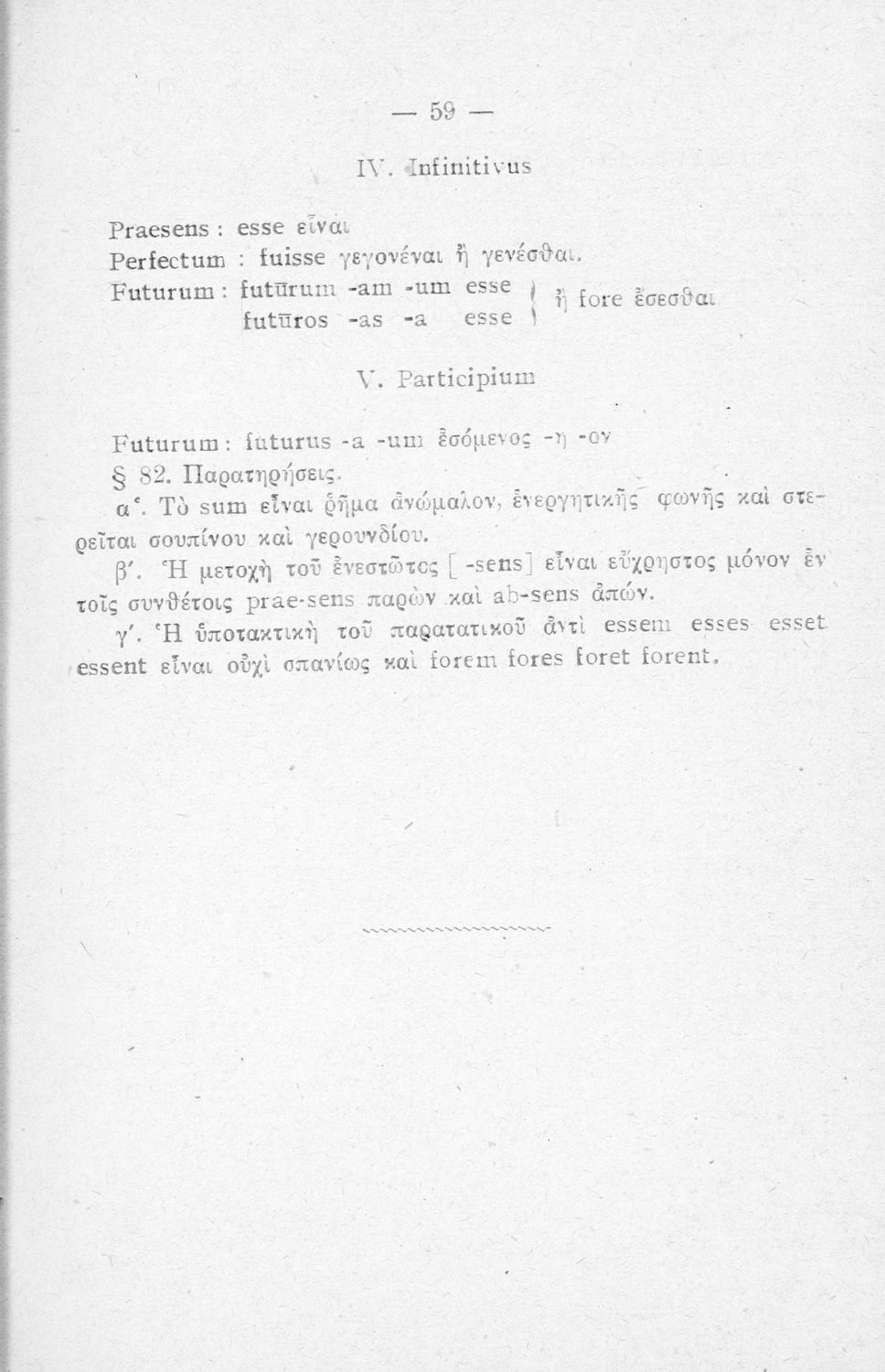 Σχολικό εγχειρίδιο Λατινικών Α΄, Β΄, Γ' Γυμνασίου που περιλαμβάνει γραμματική και συντακτικό και είναι χωρισμένο σε φθογγολογικό, τυπολογικό και ετυμολογικό μέρος.