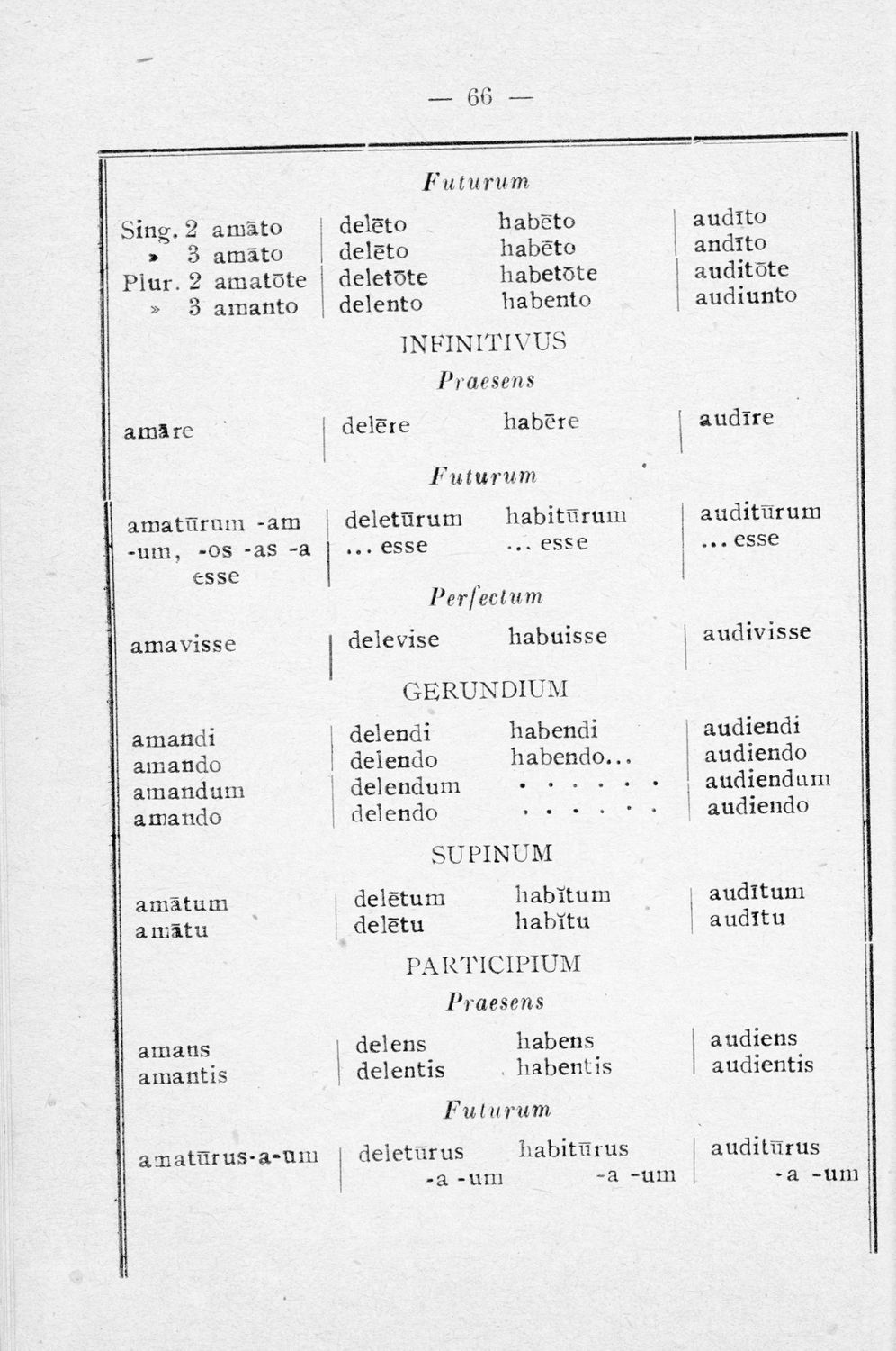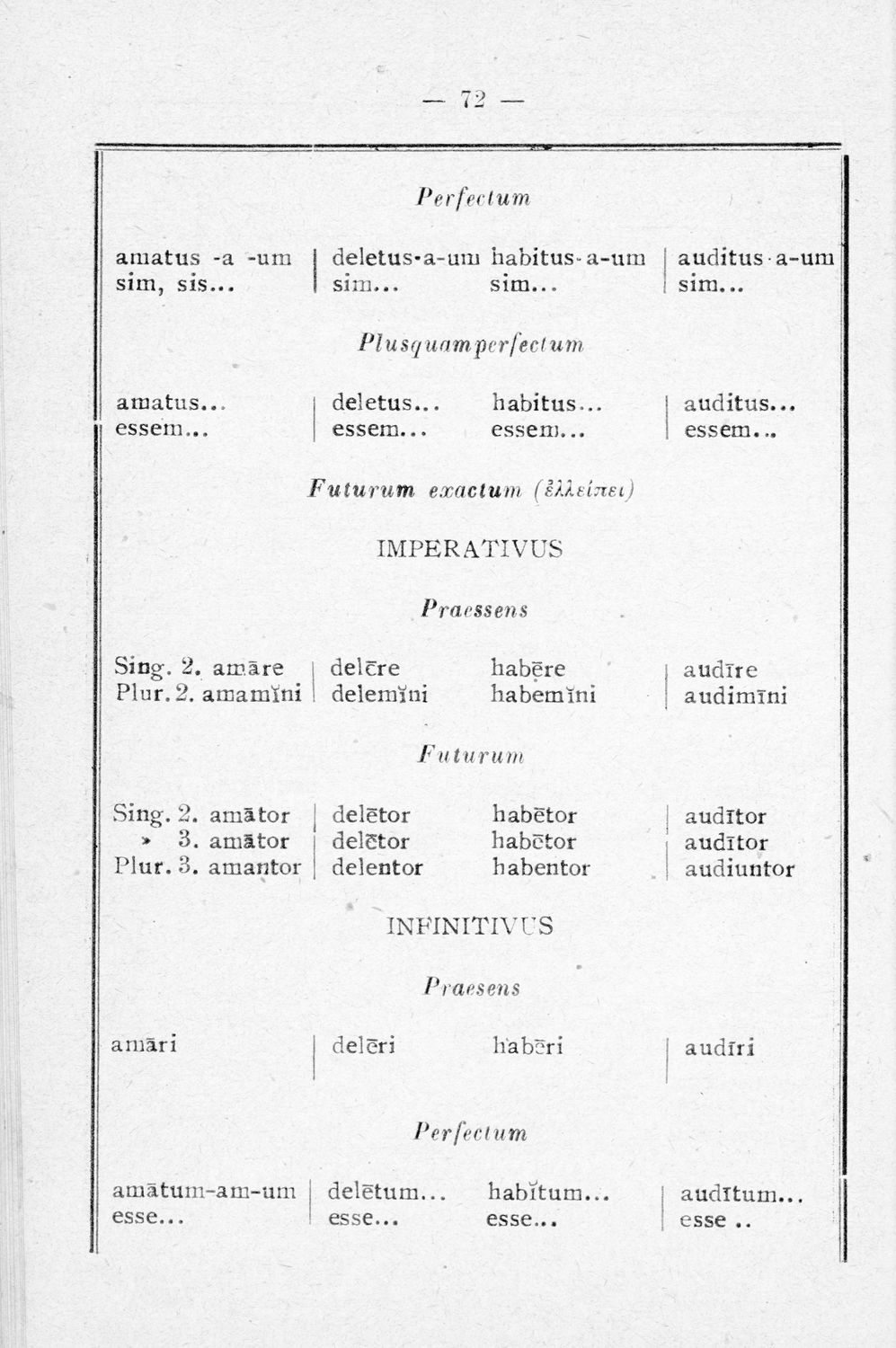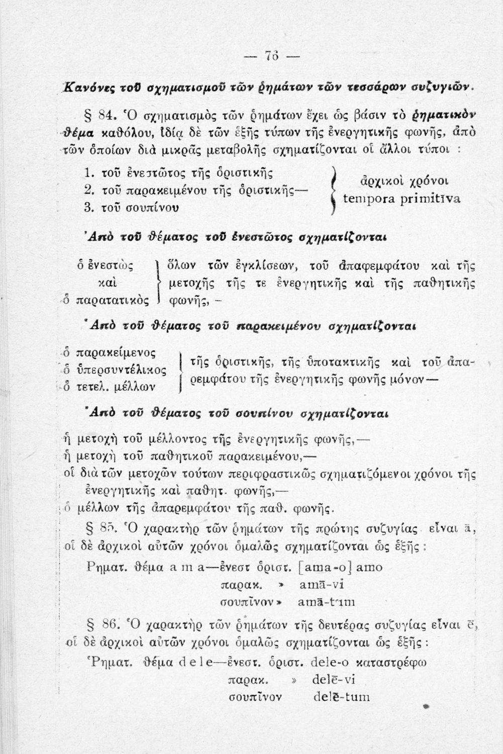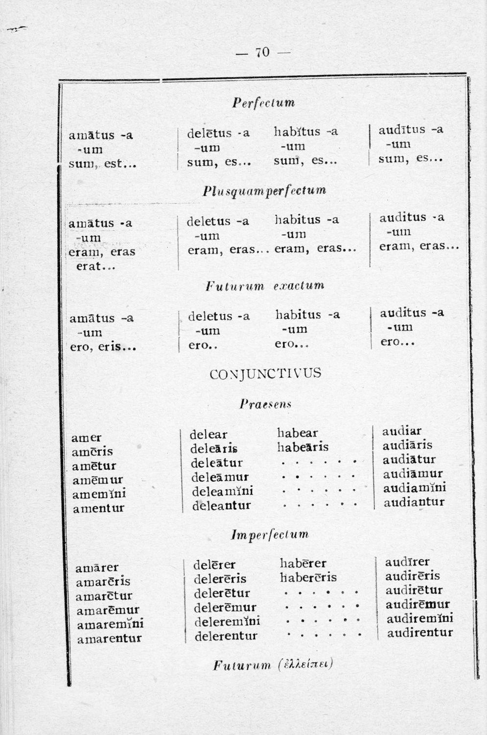 Σχολικό εγχειρίδιο Λατινικών Α΄, Β΄, Γ' Γυμνασίου που περιλαμβάνει γραμματική και συντακτικό και είναι χωρισμένο σε φθογγολογικό, τυπολογικό και ετυμολογικό μέρος.