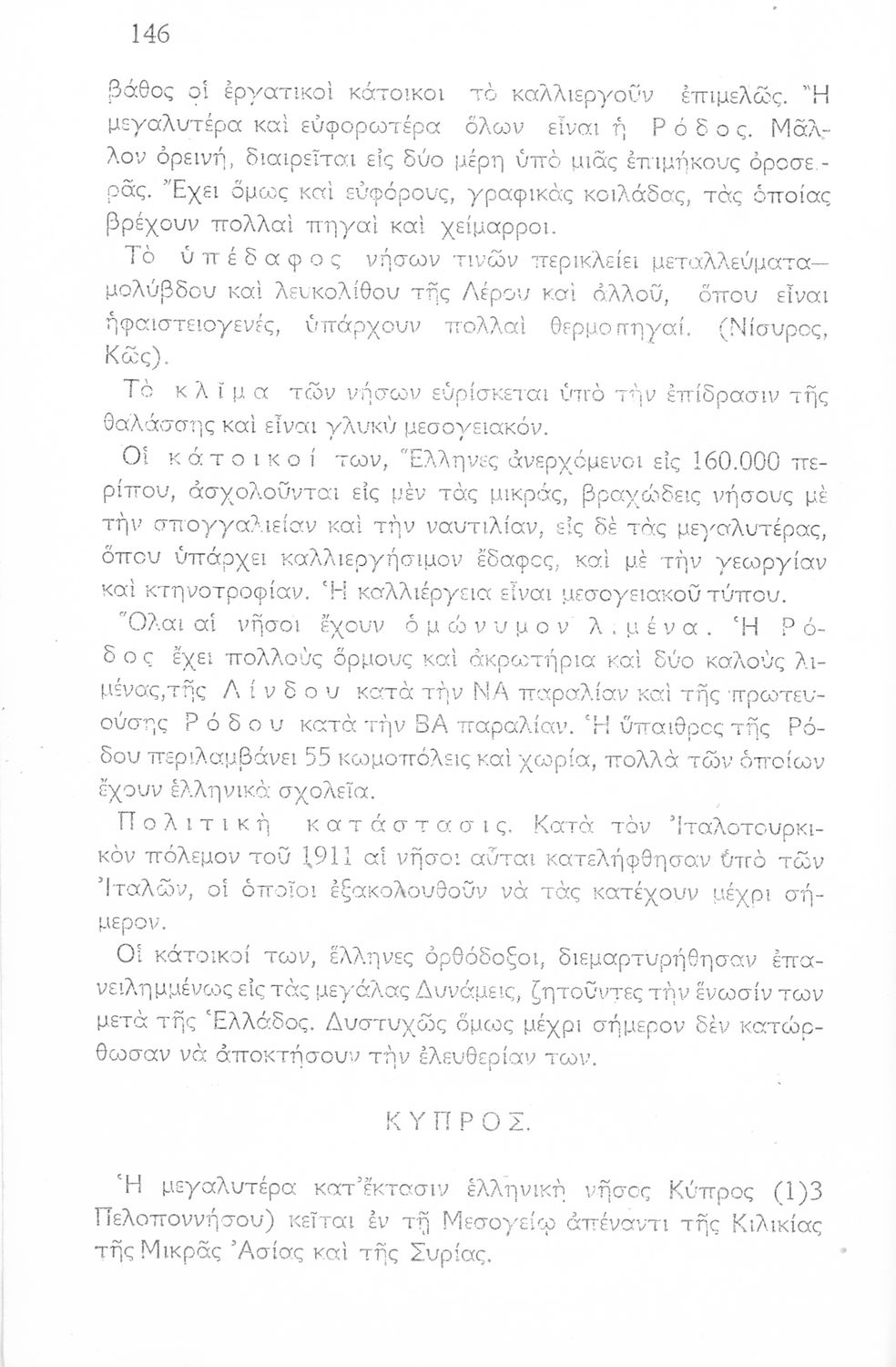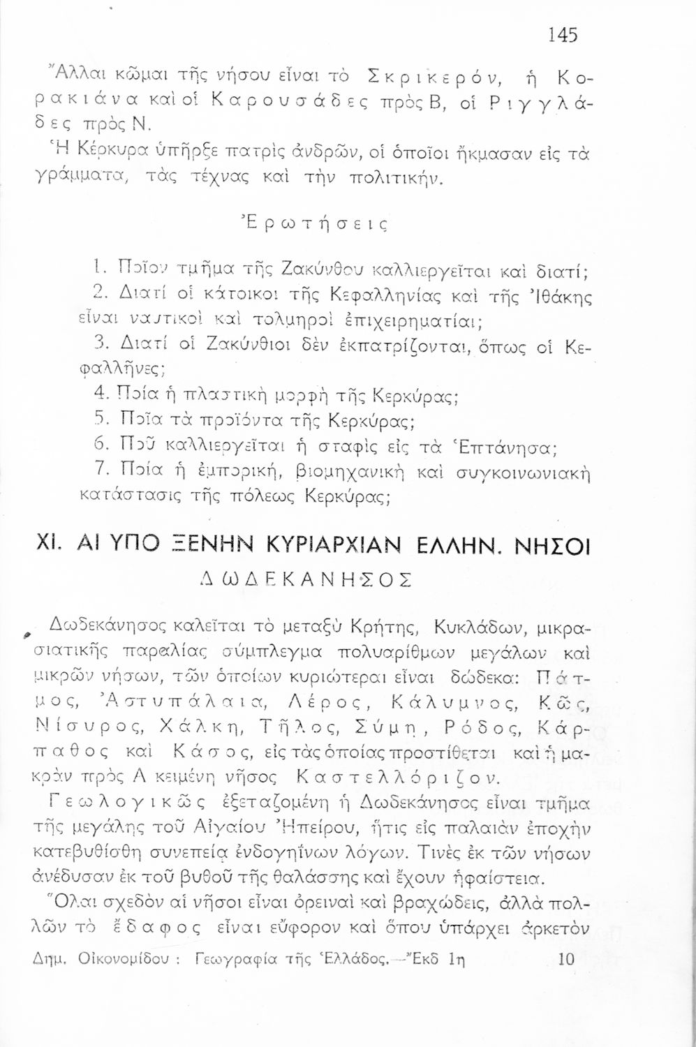 Κωδικός αναγνώρισης: 01-18768 Τίτλος: Γεωγραφία της Ελλάδος Δια την Α΄ τάξιν των Γυμνασίων Συγγραφέας: Δημ. Οικονομίδης Μέγεθος και υπόστρωμα: Σχολικό εγχειρίδιο, 221 σελίδες. Εικόνες (ασπρόμαυρες), χάρτες (ασπρόμαυροι). |
