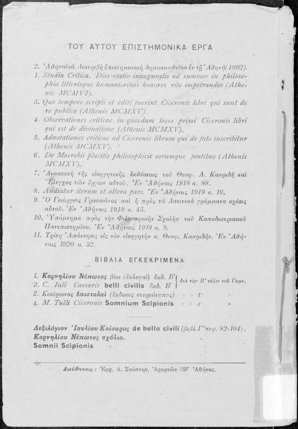 Τίτλος: Γ. Ιουλίου Καίσαρος Υπομνήματα de bello civili βιβλ. Γ΄, κεφ. 82-104 προς χρήσιν μαθητών της Β΄ τάξεως του Γυμνασίου