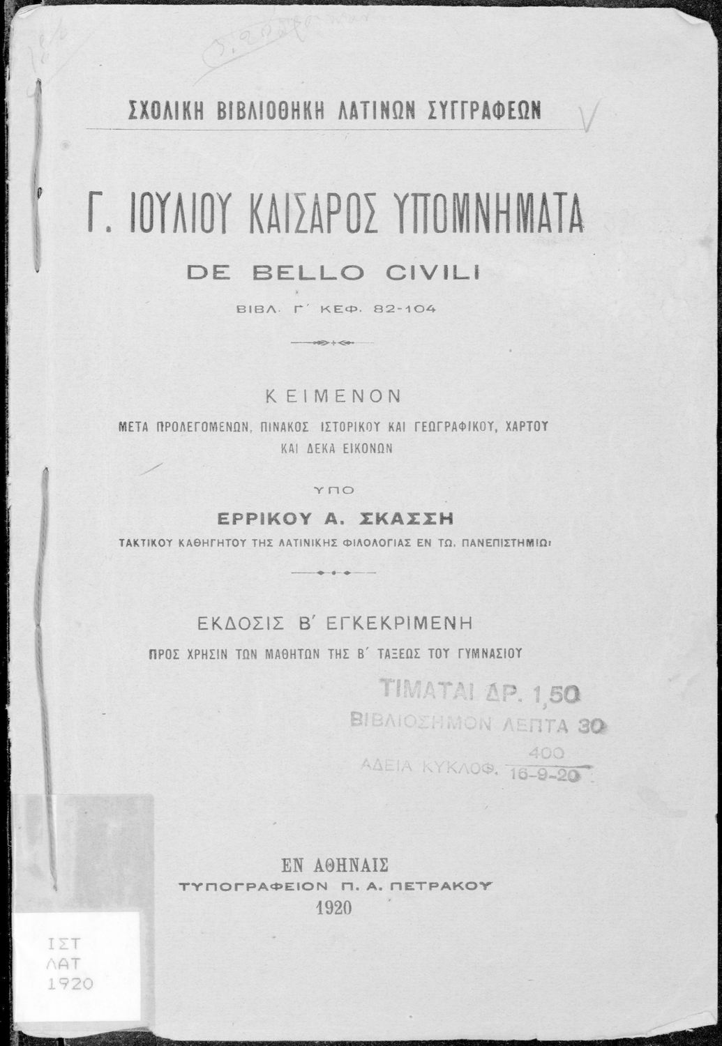 Εκδότης: Τυπογραφείο Π.Α. Πετράκου Έτος έκδοσης: 1920 Τόπος έκδοσης: Αθήνα Έκδοση: 2η |