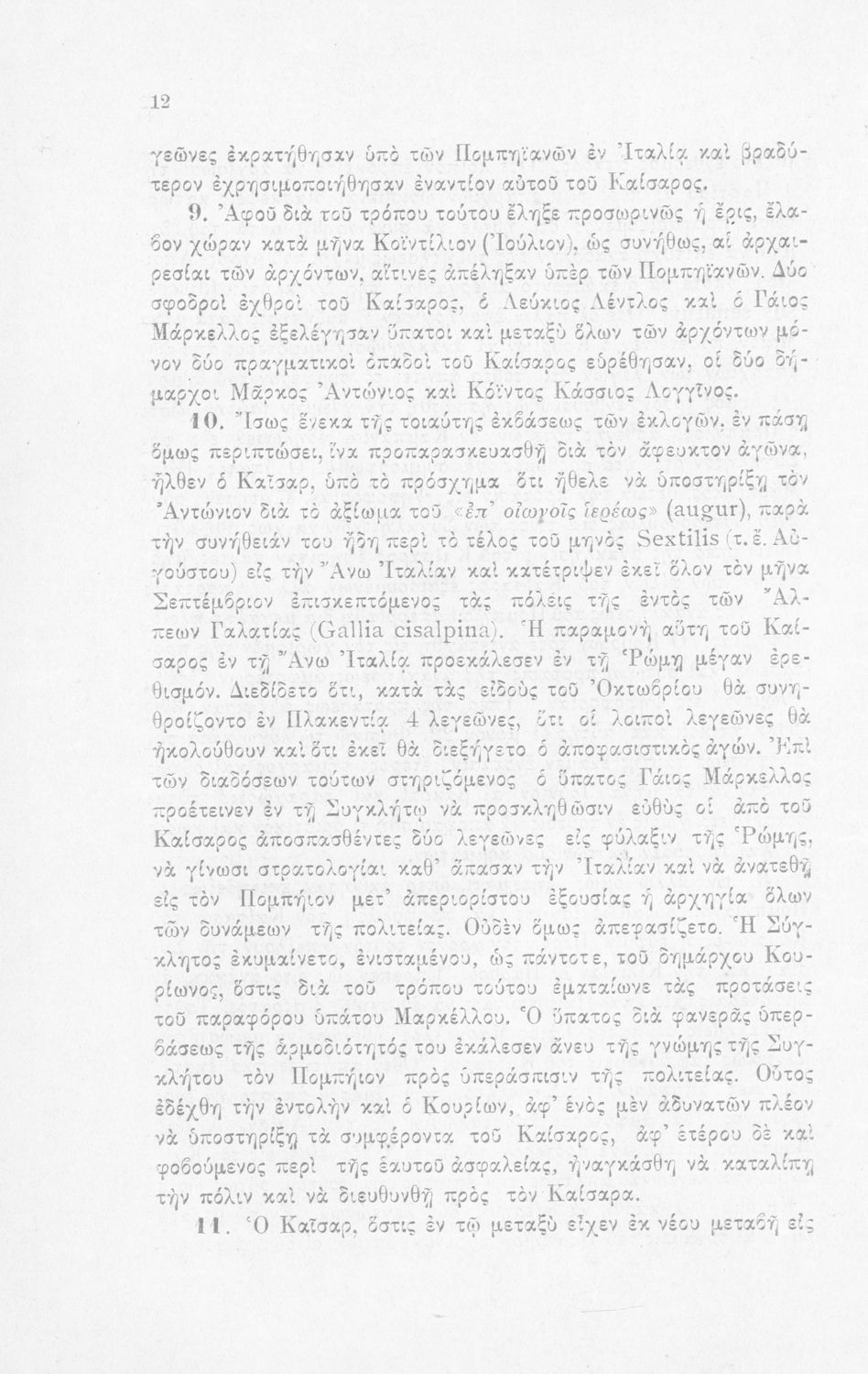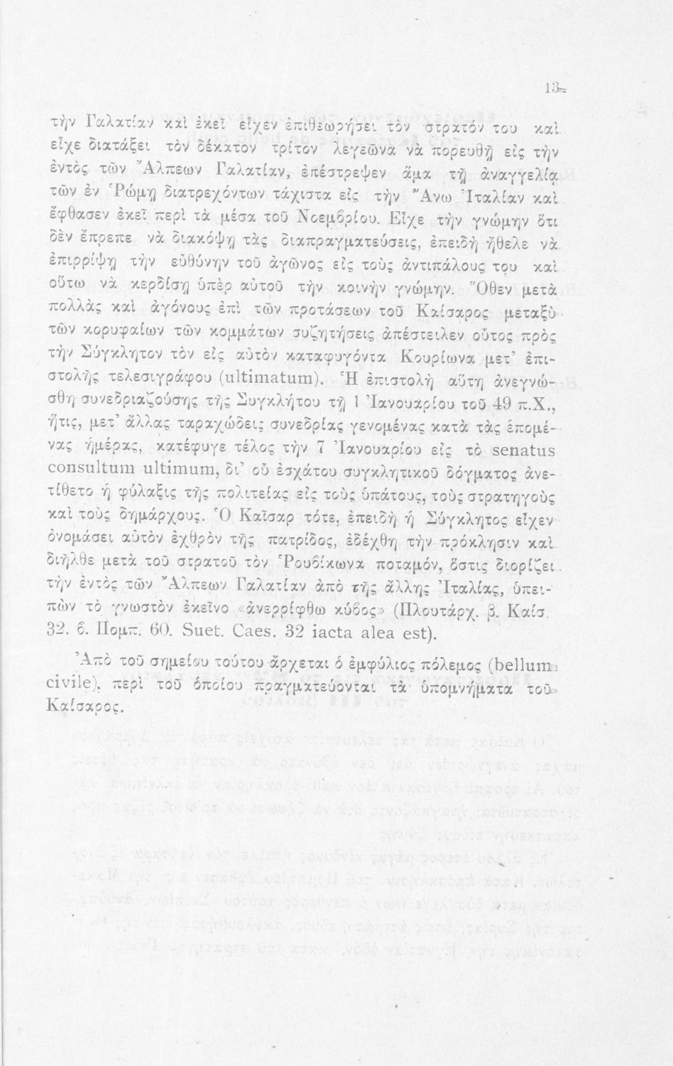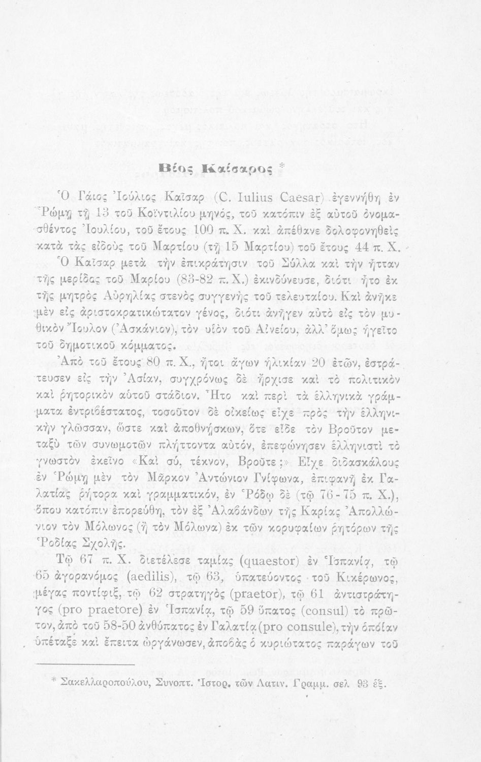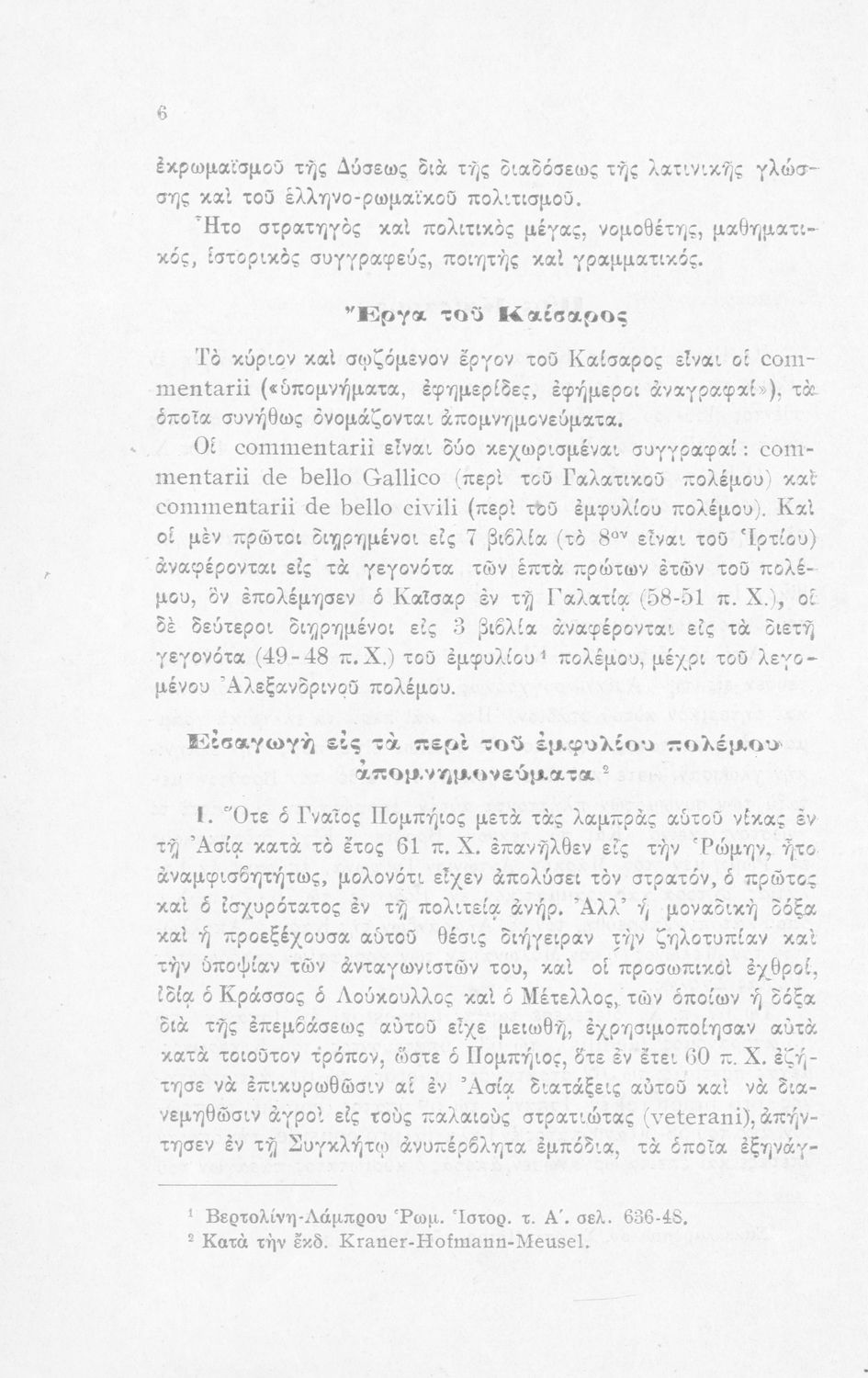 Σχολικό εγχειρίδιο Λατινικών για τη Β΄ Γυμνασίου που περιέχει σύντομο βιογραφικό σημείωμα του Ιούλιου Καίσαρα, εισαγωγή στο έργο, ιστορικό και γεωγραφικό πίνακα και λεξιλόγιο. Ο συγγραφέας ήταν καθηγητής της Λατινικής Φιλολογίας στο Πανεπιστήμιο Αθηνών.