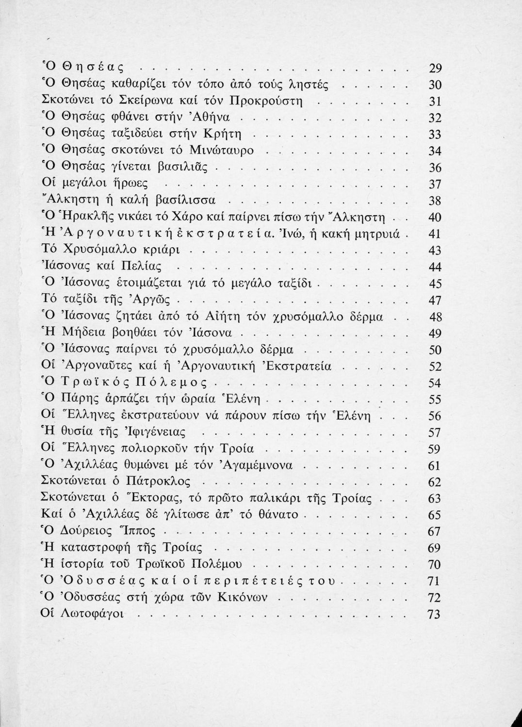 Το σύγγραμμα αποτελεί μαθητικό βοήθημα για το μάθημα της Ιστορίας στους μαθητές του Δημοτικού. Αναφέρεται κυρίως στην μυθολογία, τους αρχαίους ήρωες, τους Θεούς του Ολύμπου. Στη συνέχεια αναφέρει τους Περσικούς πολέμους. Η γλώσσα είναι δημοτική και το ύφος απλό. Με ευσύνοπτο τρόπο παρουσιάζονται τα μυθικά χρόνια στους μαθητές προκειμένου να καλλιεργηθεί η εθνική συνείδηση.