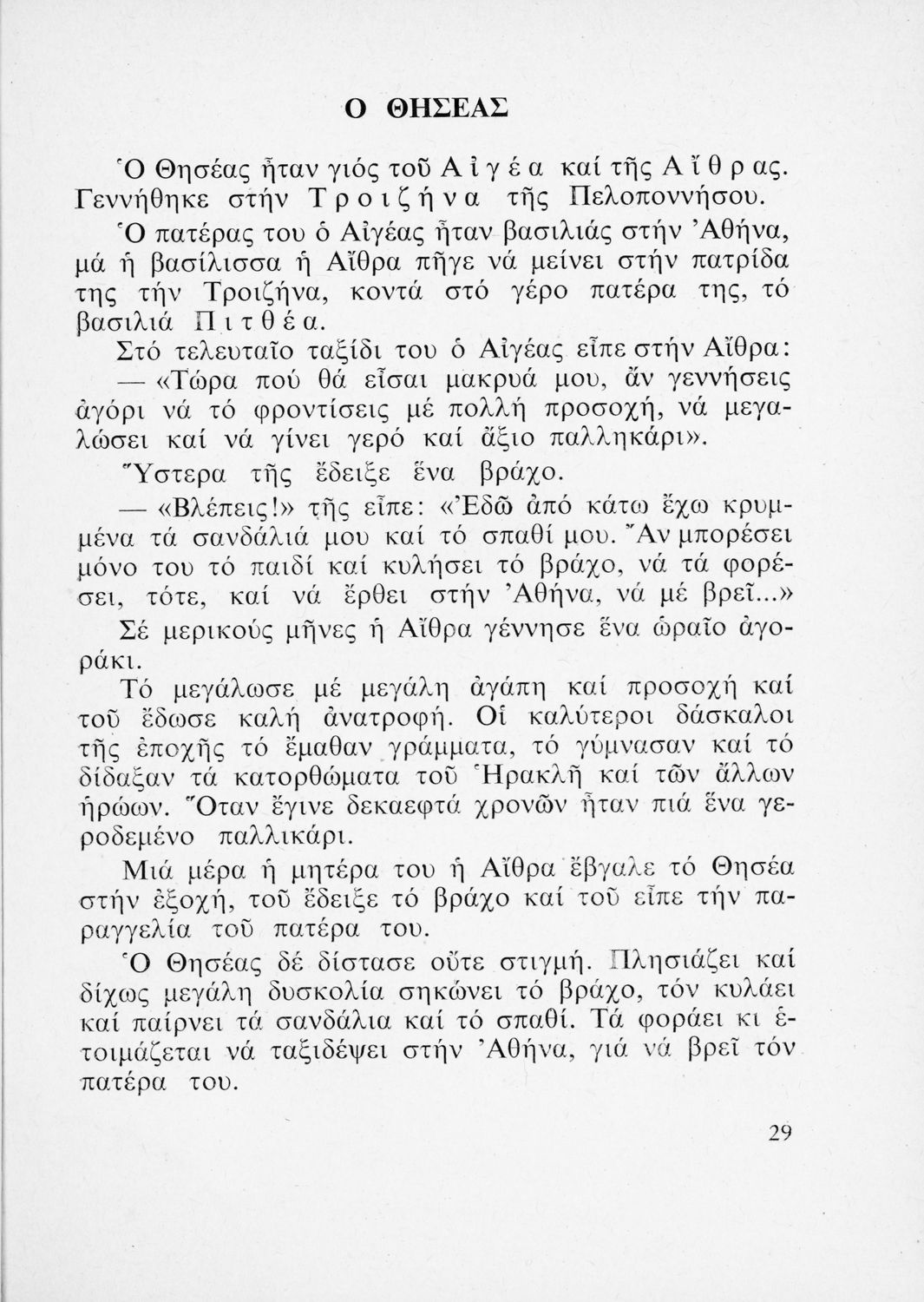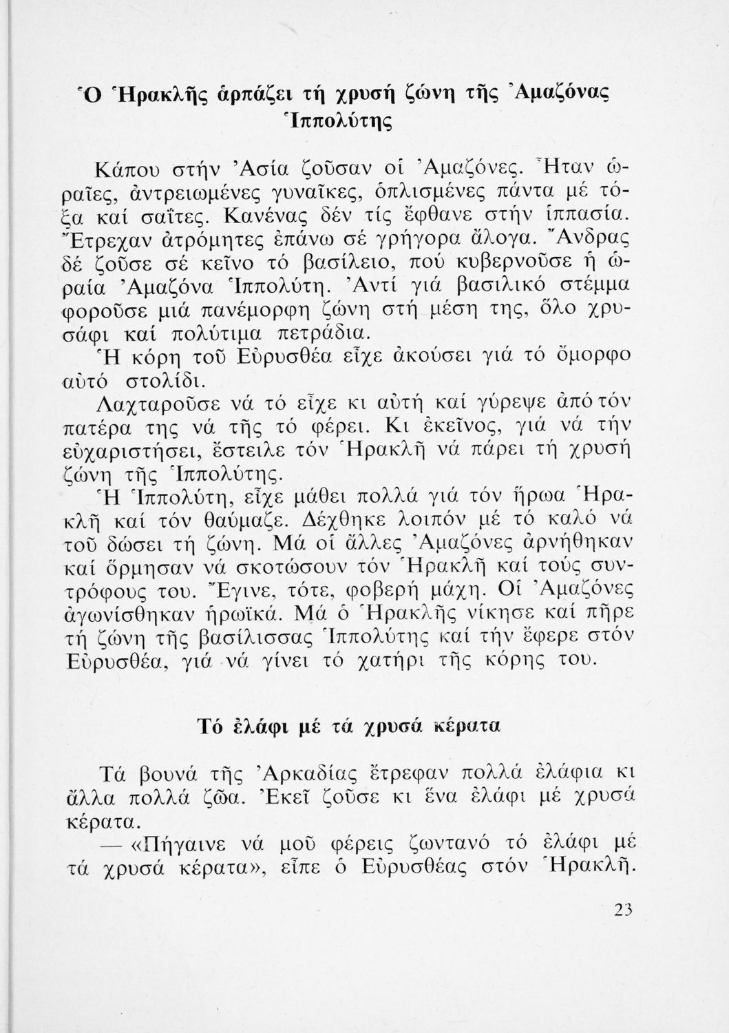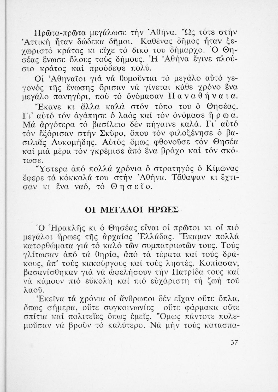 Βαθμίδα εκπαίδευσης: Πρωτοβάθμια Τάξη: Γ' Δημοτικού Μάθημα: Ιστορία Γλώσσα: Δημοτική Παρουσίαση περιεχομένου: Το σύγγραμμα αποτελεί μαθητικό βοήθημα για το μάθημα της Ιστορίας στους μαθητές του Δημοτικού. Αναφέρεται κυρίως στην μυθολογία, τους αρχαίους ήρωες, τους Θεούς του Ολύμπου. Στη συνέχεια αναφέρει τους Περσικούς πολέμους. Η γλώσσα είναι δημοτική και το ύφος απλό. Με ευσύνοπτο τρόπο παρουσιάζονται τα μυθικά χρόνια στους μαθητές προκειμένου να καλλιεργηθεί η εθνική συνείδηση. |