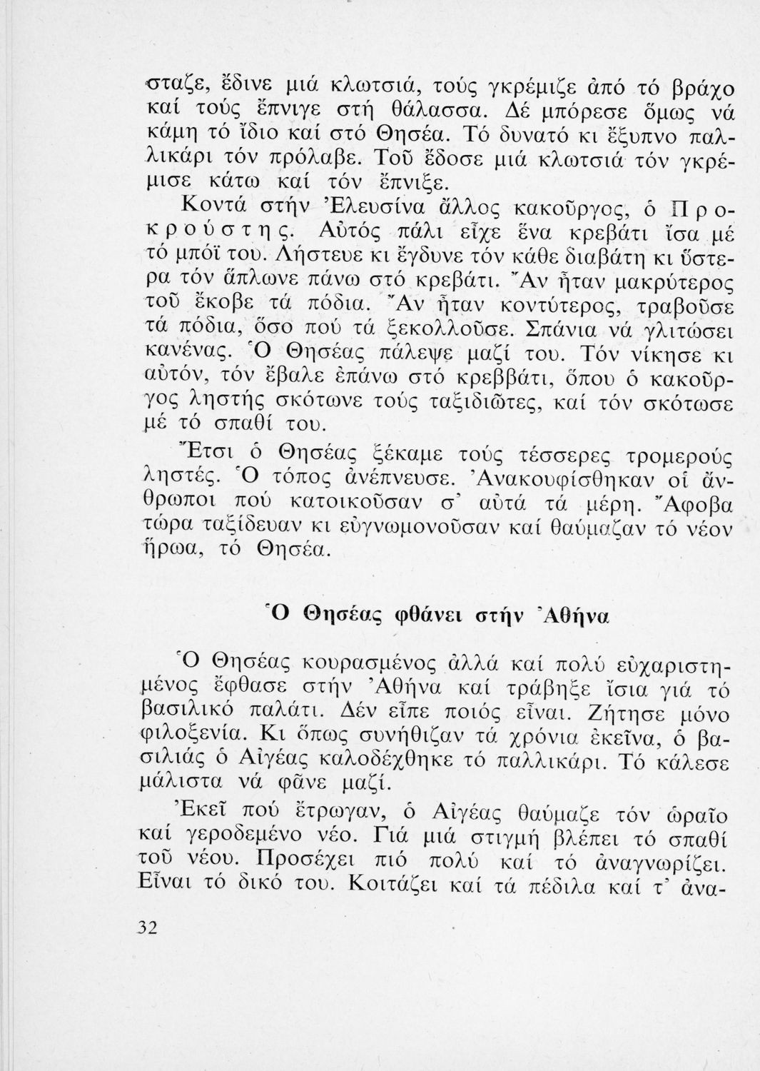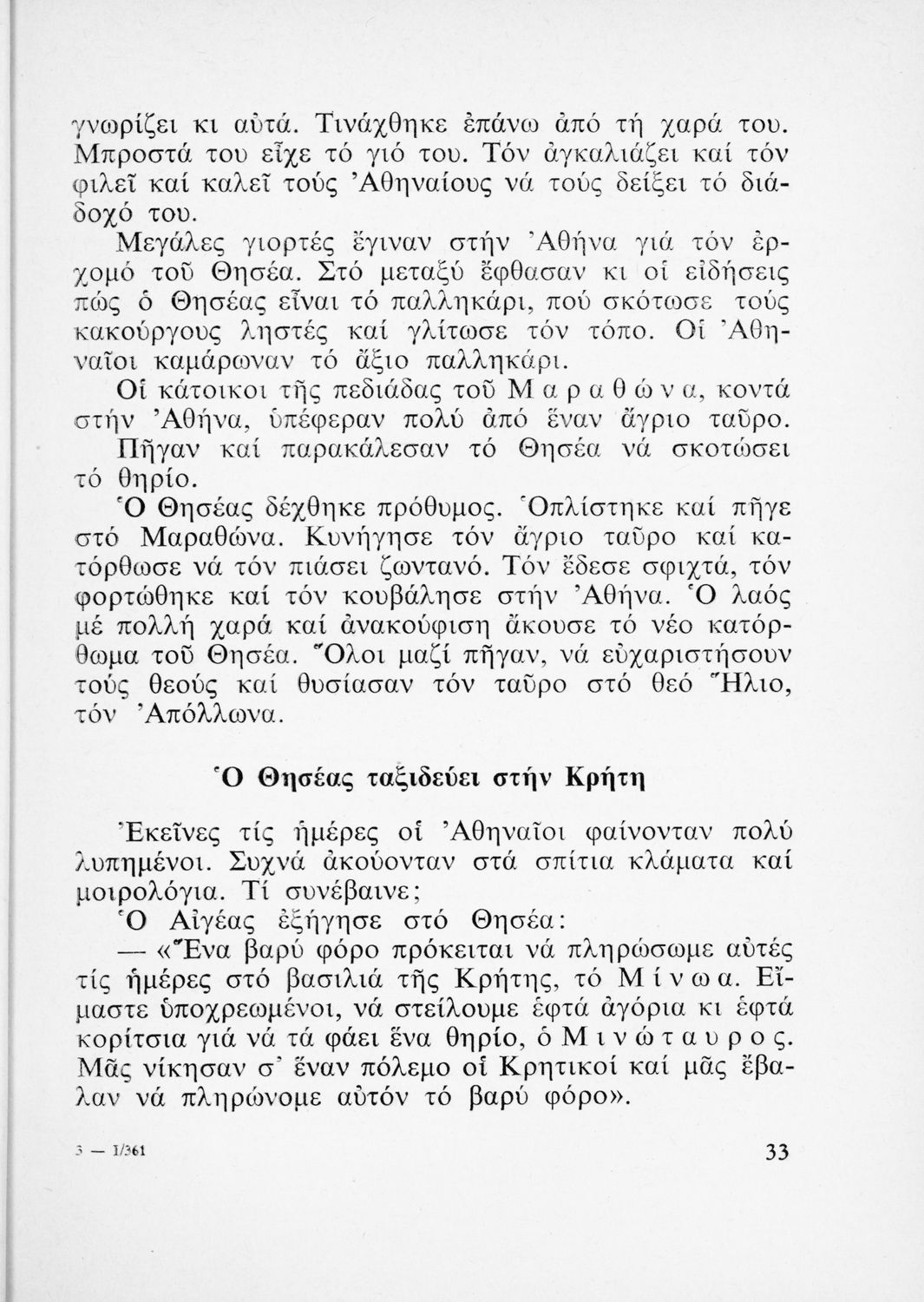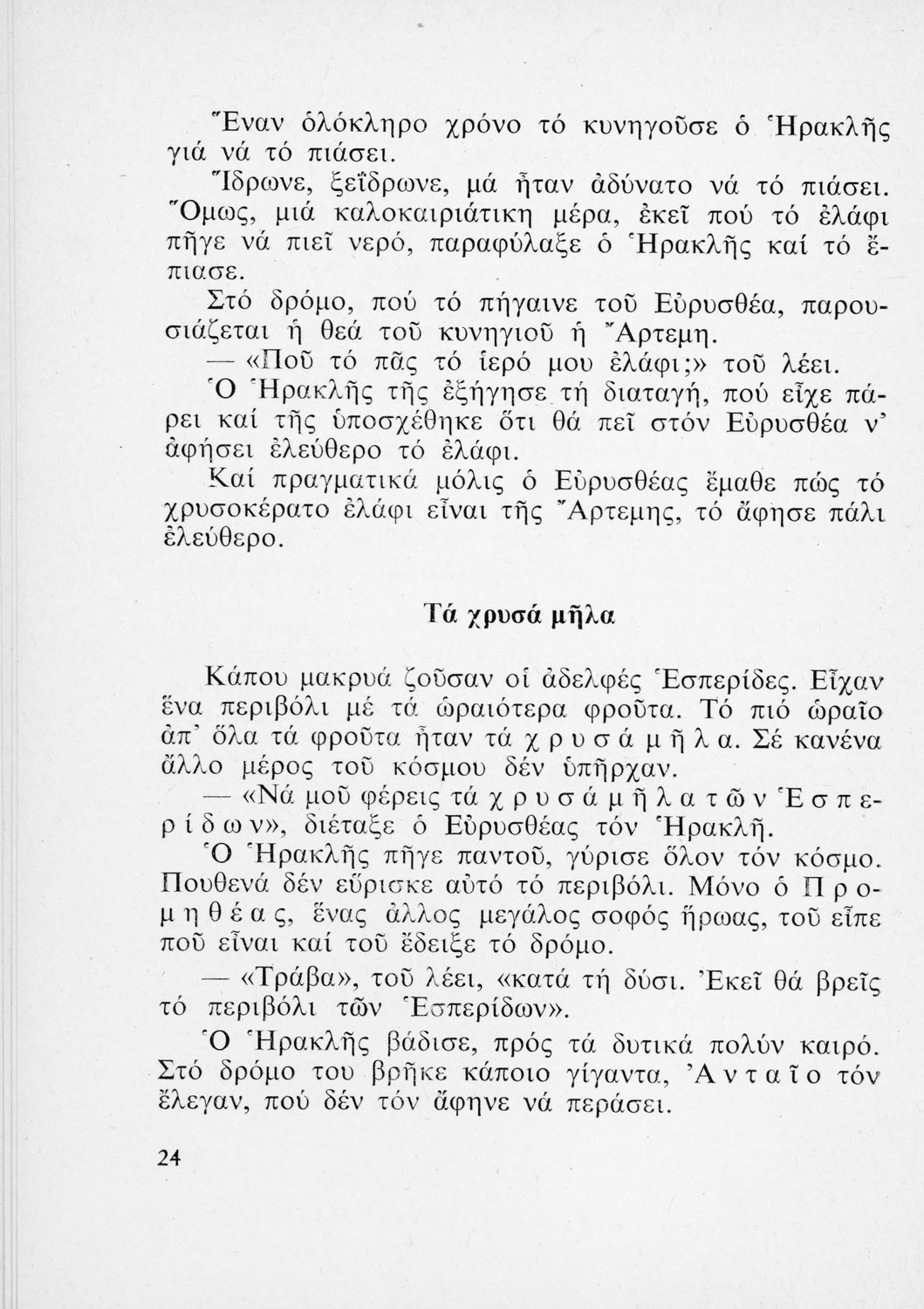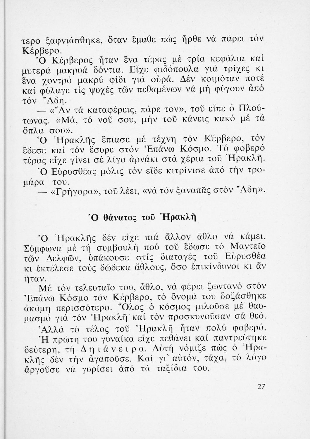 Βαθμίδα εκπαίδευσης: Πρωτοβάθμια Τάξη: Γ' Δημοτικού Μάθημα: Ιστορία Γλώσσα: Δημοτική Παρουσίαση περιεχομένου: Το σύγγραμμα αποτελεί μαθητικό βοήθημα για το μάθημα της Ιστορίας στους μαθητές του Δημοτικού. Αναφέρεται κυρίως στην μυθολογία, τους αρχαίους ήρωες, τους Θεούς του Ολύμπου. Στη συνέχεια αναφέρει τους Περσικούς πολέμους. Η γλώσσα είναι δημοτική και το ύφος απλό. Με ευσύνοπτο τρόπο παρουσιάζονται τα μυθικά χρόνια στους μαθητές προκειμένου να καλλιεργηθεί η εθνική συνείδηση. |