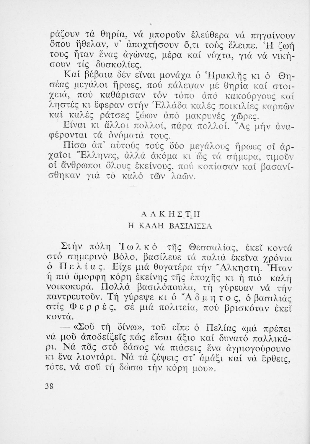 Το σύγγραμμα αποτελεί μαθητικό βοήθημα για το μάθημα της Ιστορίας στους μαθητές του Δημοτικού. Αναφέρεται κυρίως στην μυθολογία, τους αρχαίους ήρωες, τους Θεούς του Ολύμπου. Στη συνέχεια αναφέρει τους Περσικούς πολέμους. Η γλώσσα είναι δημοτική και το ύφος απλό. Με ευσύνοπτο τρόπο παρουσιάζονται τα μυθικά χρόνια στους μαθητές προκειμένου να καλλιεργηθεί η εθνική συνείδηση.