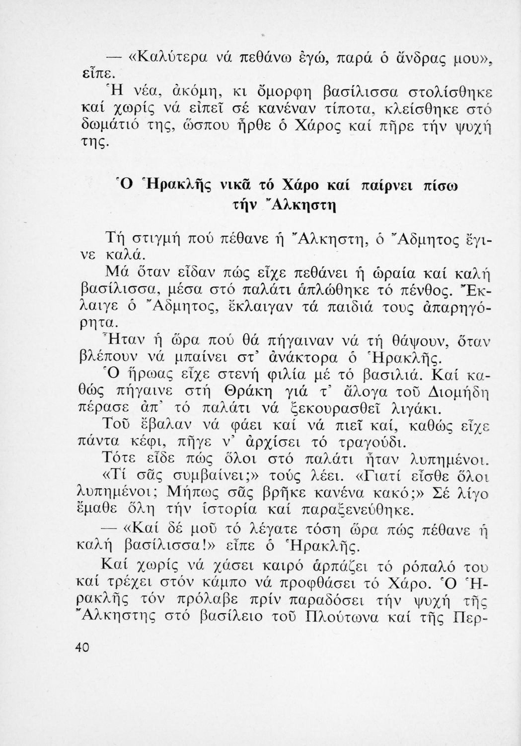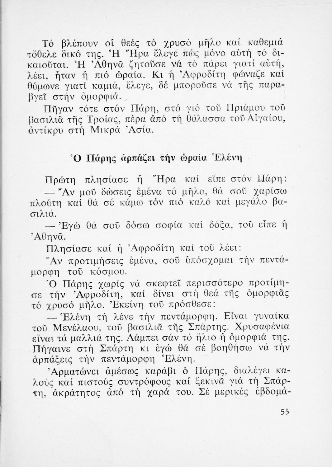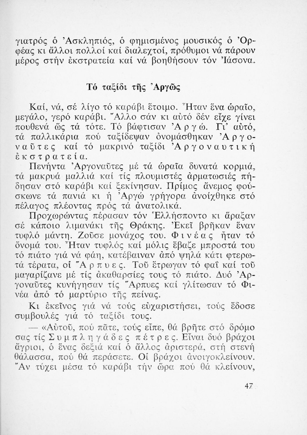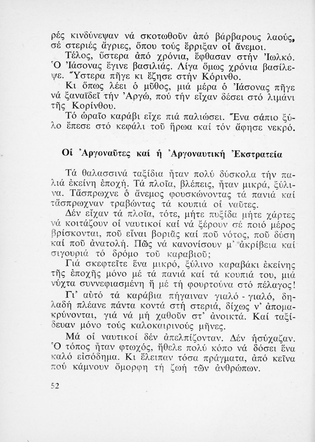 Το σύγγραμμα αποτελεί μαθητικό βοήθημα για το μάθημα της Ιστορίας στους μαθητές του Δημοτικού. Αναφέρεται κυρίως στην μυθολογία, τους αρχαίους ήρωες, τους Θεούς του Ολύμπου. Στη συνέχεια αναφέρει τους Περσικούς πολέμους. Η γλώσσα είναι δημοτική και το ύφος απλό. Με ευσύνοπτο τρόπο παρουσιάζονται τα μυθικά χρόνια στους μαθητές προκειμένου να καλλιεργηθεί η εθνική συνείδηση.