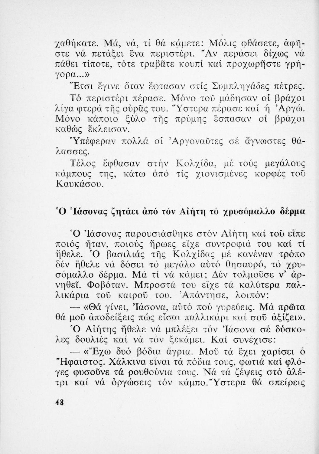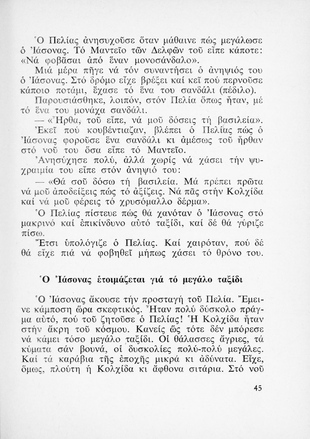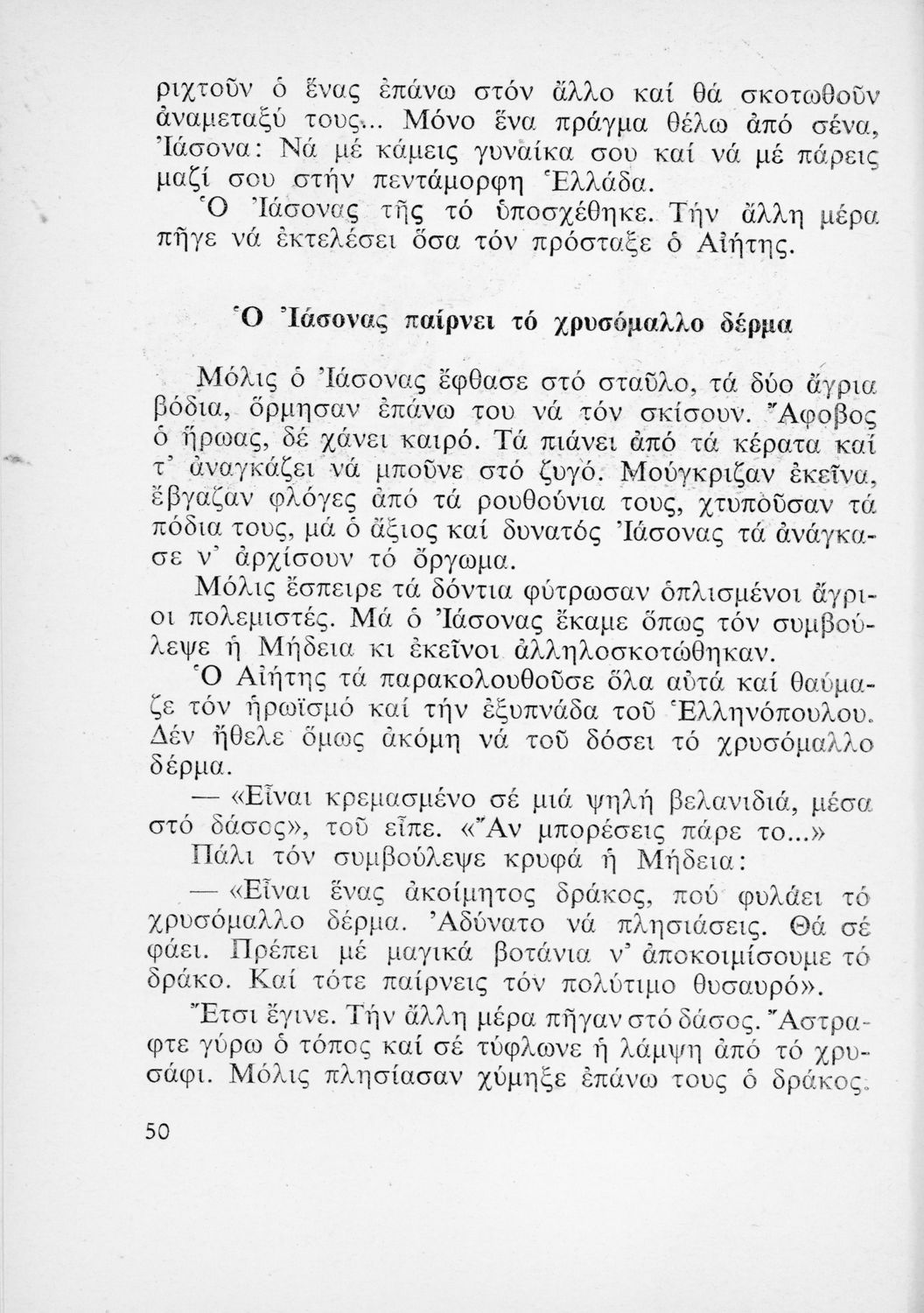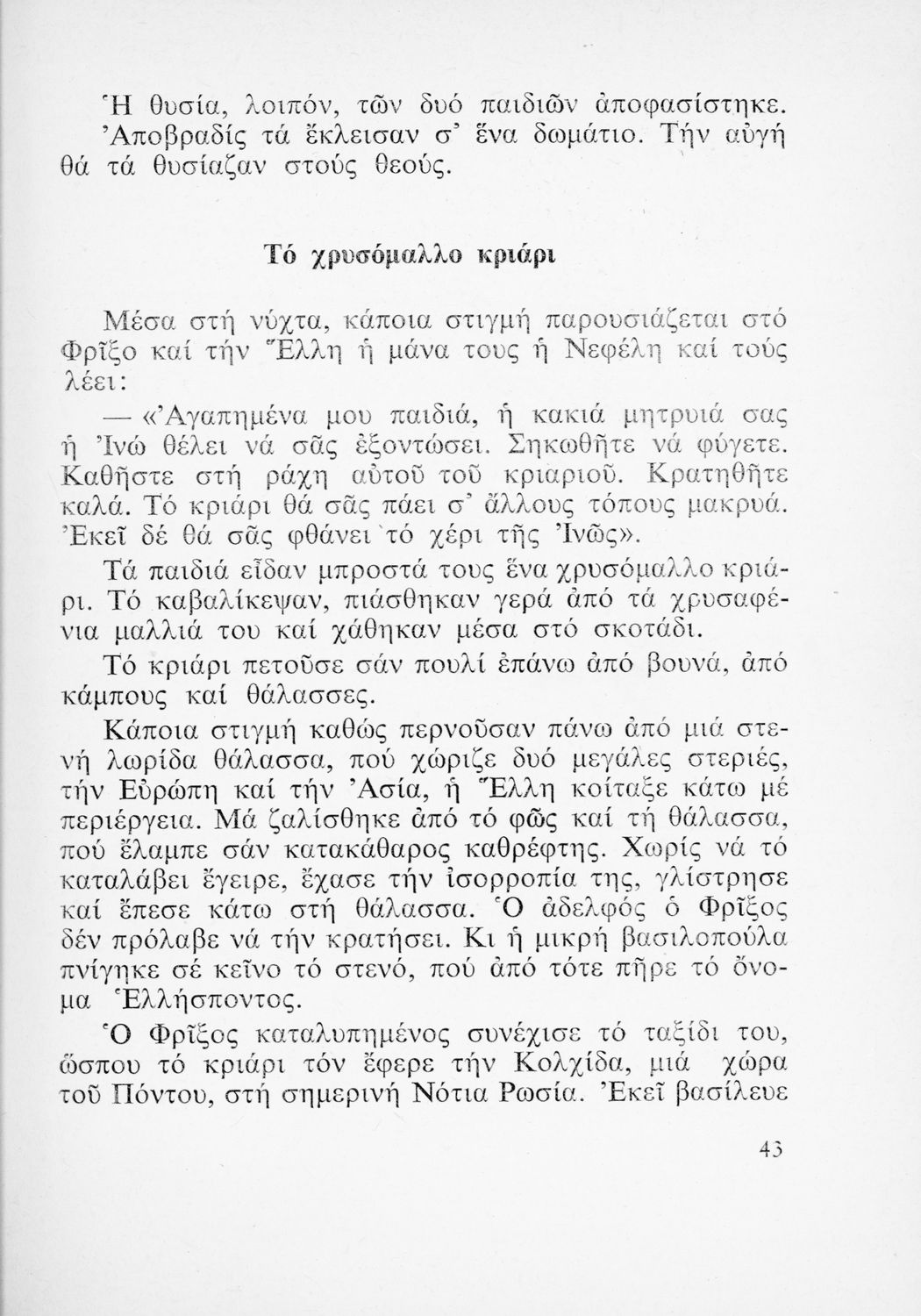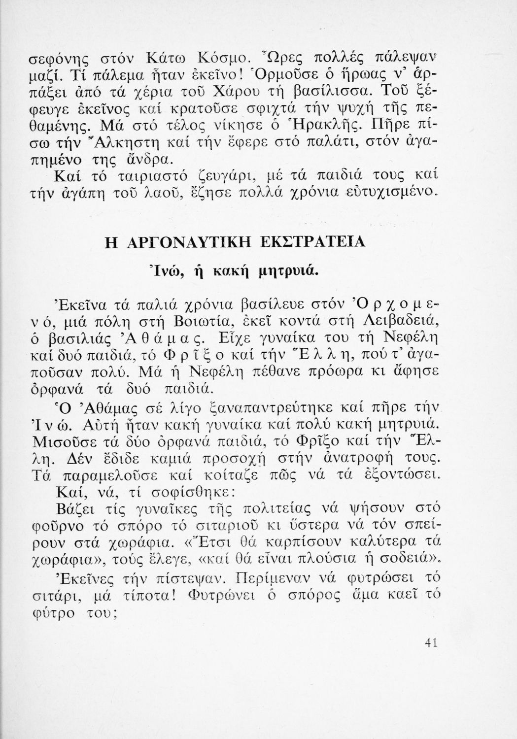 Βαθμίδα εκπαίδευσης: Πρωτοβάθμια Τάξη: Γ' Δημοτικού Μάθημα: Ιστορία Γλώσσα: Δημοτική Παρουσίαση περιεχομένου: Το σύγγραμμα αποτελεί μαθητικό βοήθημα για το μάθημα της Ιστορίας στους μαθητές του Δημοτικού. Αναφέρεται κυρίως στην μυθολογία, τους αρχαίους ήρωες, τους Θεούς του Ολύμπου. Στη συνέχεια αναφέρει τους Περσικούς πολέμους. Η γλώσσα είναι δημοτική και το ύφος απλό. Με ευσύνοπτο τρόπο παρουσιάζονται τα μυθικά χρόνια στους μαθητές προκειμένου να καλλιεργηθεί η εθνική συνείδηση. |