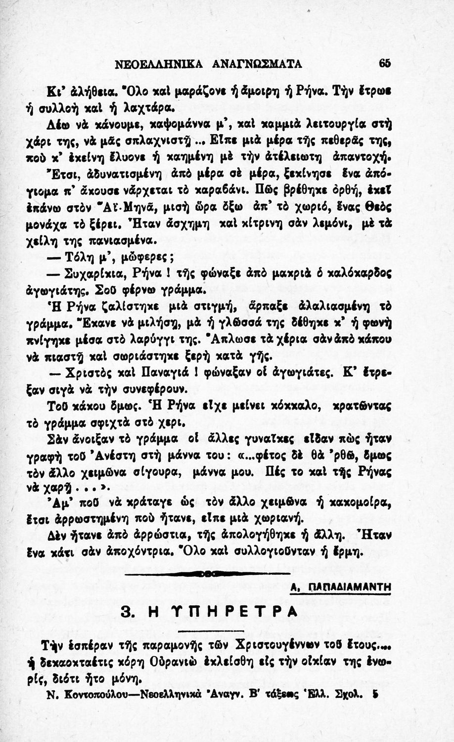 Νεοελληνικά αναγνώσματα διά τους μαθητάς της Β΄ τάξεως των Ελληνικών Σχολείων και τη αντιστοίχου των λοιπών της Μέσης Εκπαιδεύσεως
