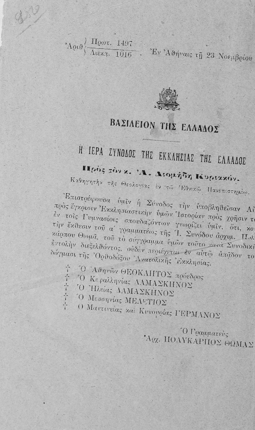 Σχολικό εγχειρίδιο Θρησκευτικών. Περιέχει την ιστορία της Εκκλησίας από την ίδρυσή της μέχρι την δημιουργία της Εκκλησίας της Ελλάδας.