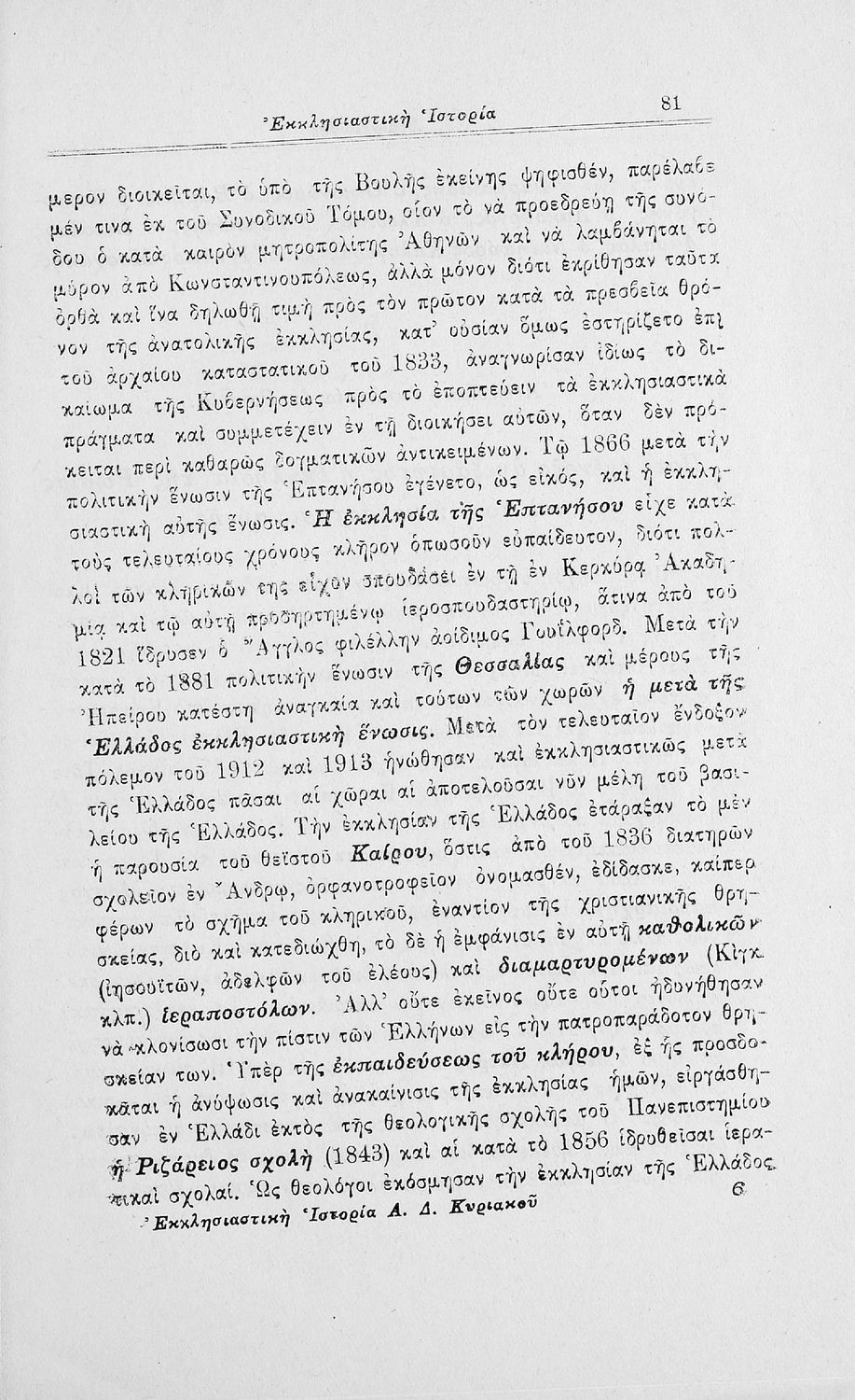 Σχολικό εγχειρίδιο Θρησκευτικών. Περιέχει την ιστορία της Εκκλησίας από την ίδρυσή της μέχρι την δημιουργία της Εκκλησίας της Ελλάδας.