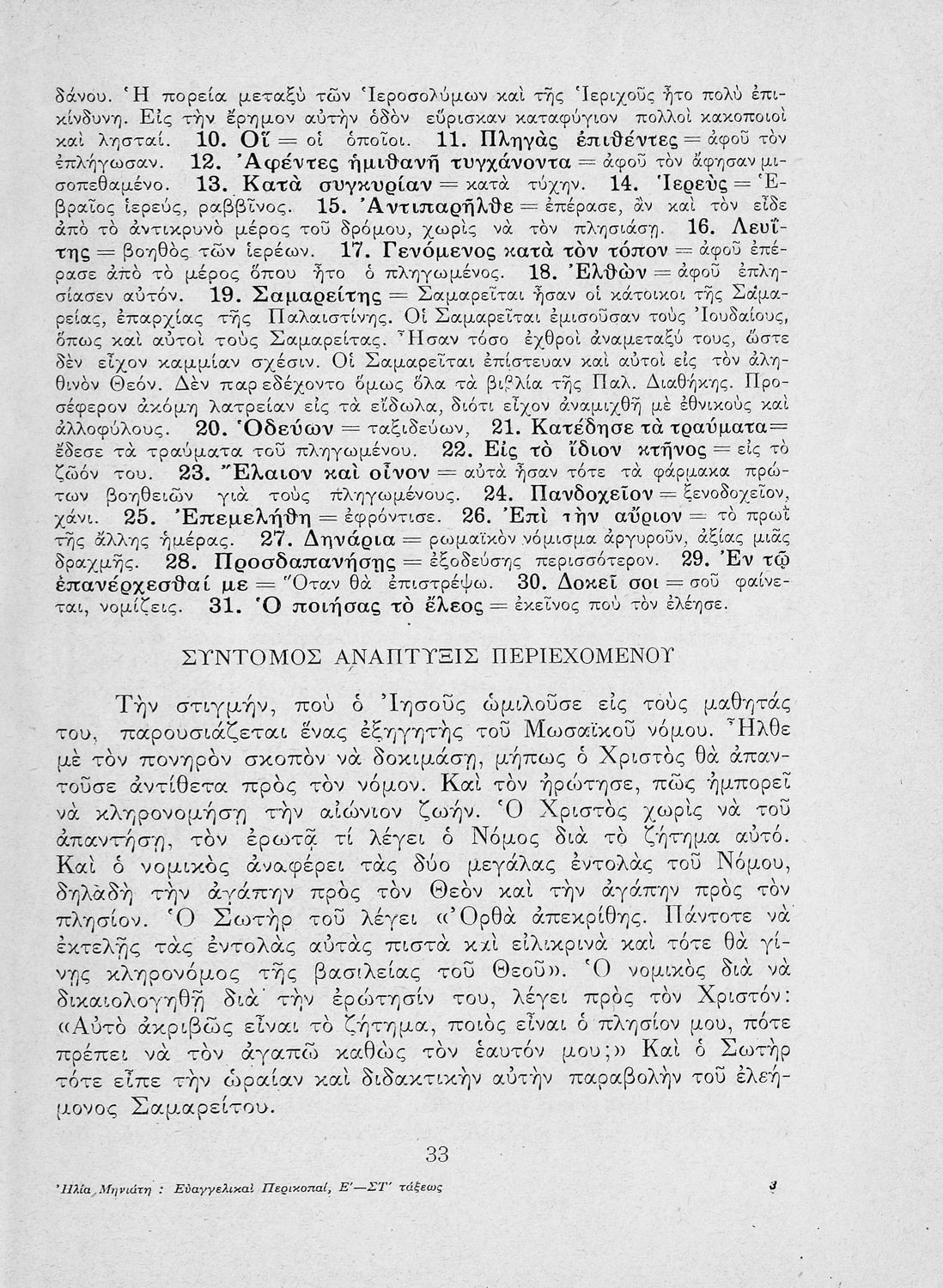 Μαθητικό βοήθημα Θρησκευτικών για τις Ε΄ και ΣΤ΄ Δημοτικού που περιλαμβάνει εισαγωγικά σχόλια στα βιβλία της Παλαιάς και Καινής Διαθήκης, βιογραφικά σημειώματα των ευαγγελιστών περικοπές, και ερμηνευτικές και πραγματολογικές σημειώσεις.