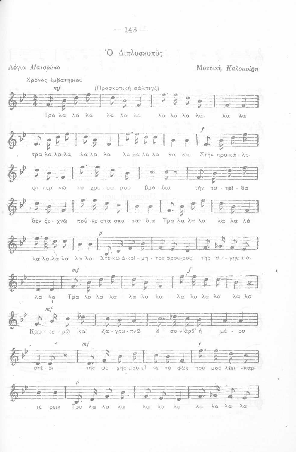 Παρουσίαση περιεχομένου: Σχολικό εγχειρίδιο Μουσικής για τις Α΄, Β΄, Γ΄, Δ΄ τάξη Γυμνασίου, Πρακτικών Λυκείων και Διδασκαλείων που περιλαμβάνει θεωρία, μελωδικές ασκήσεις καθώς και σχολικά τραγούδια. Ο συγγραφέας ήταν καθηγητής της σχολικής Μουσικής.