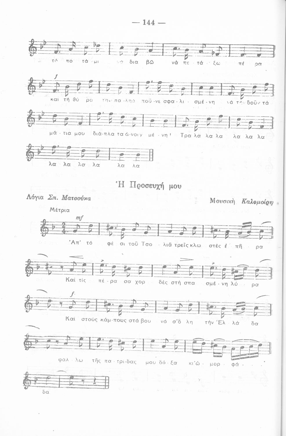 Σχολικό εγχειρίδιο Μουσικής για την Α', Β', Γ΄, Δ' τάξη Γυμνασίου, Πρακτικών Λυκείων και Διδασκαλείων. Περιέχει ασκήσεις μελωδικές, χωρίς θεωρία.