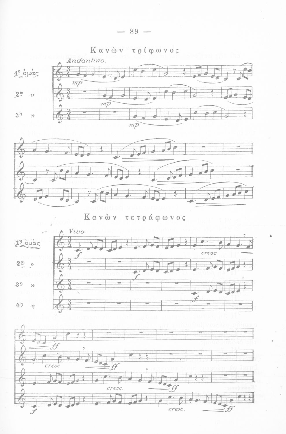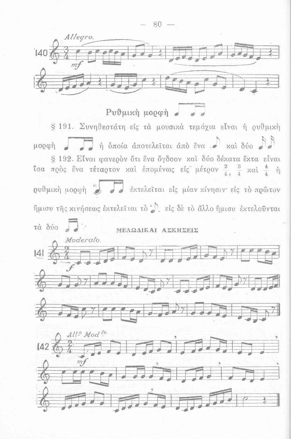 Σχολικό εγχειρίδιο Μουσικής για την Α', Β', Γ', Δ' Γυμνασίου, Πρακτικών Λυκείων και Διδασκαλείων. Περιέχει ασκήσεις μελωδικές, χωρίς θεωρία.