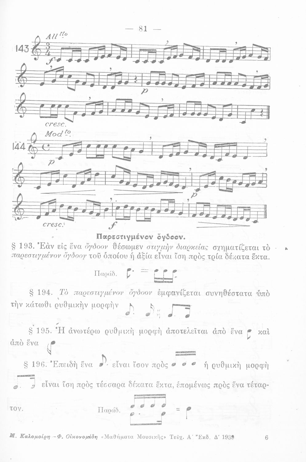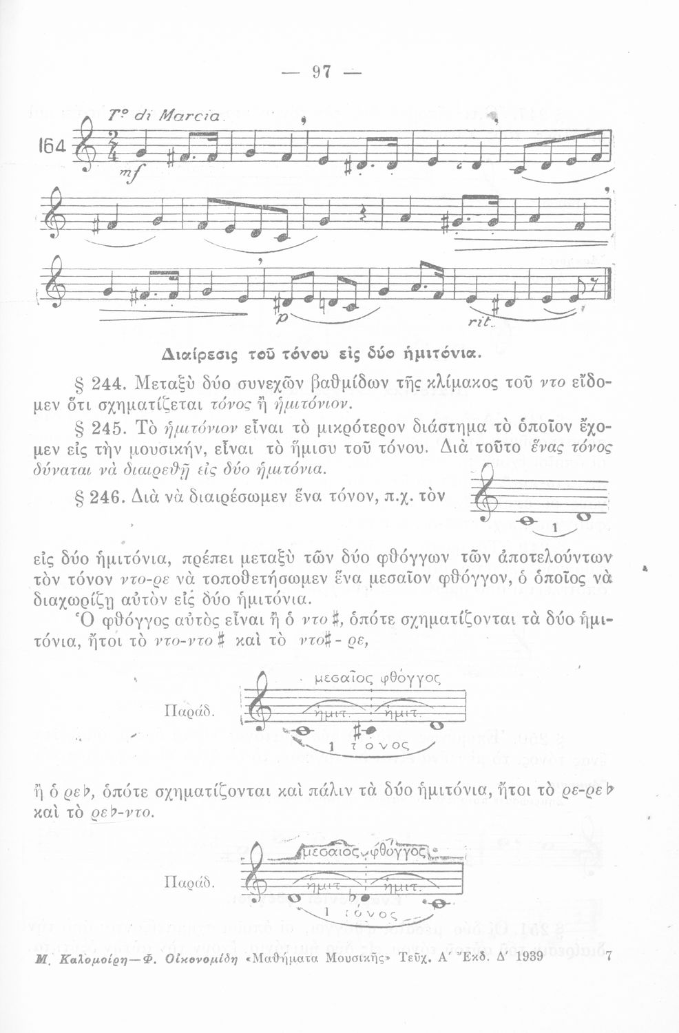 Σχολικό εγχειρίδιο Μουσικής για Γυμνάσια και Διδασκαλεία που περιέχει στοιχεία θεωρίας της μουσικής, μελωδικές ασκήσεις καθώς και σχολικά τραγούδια
