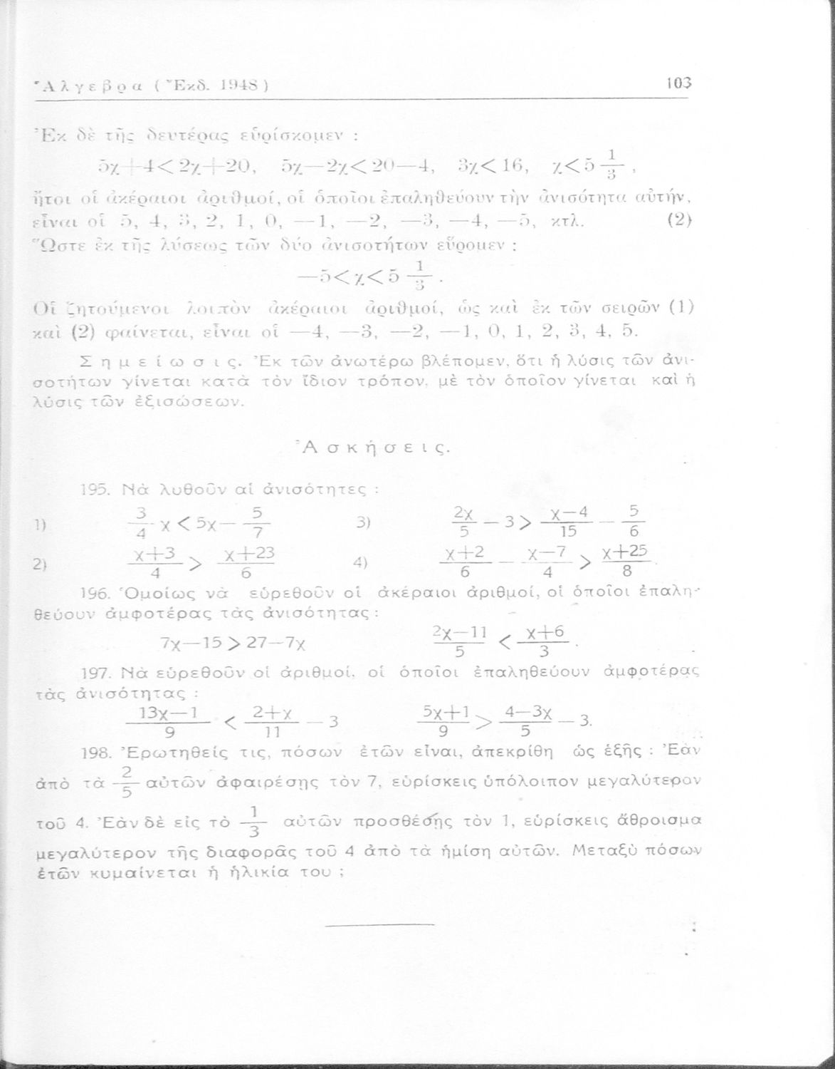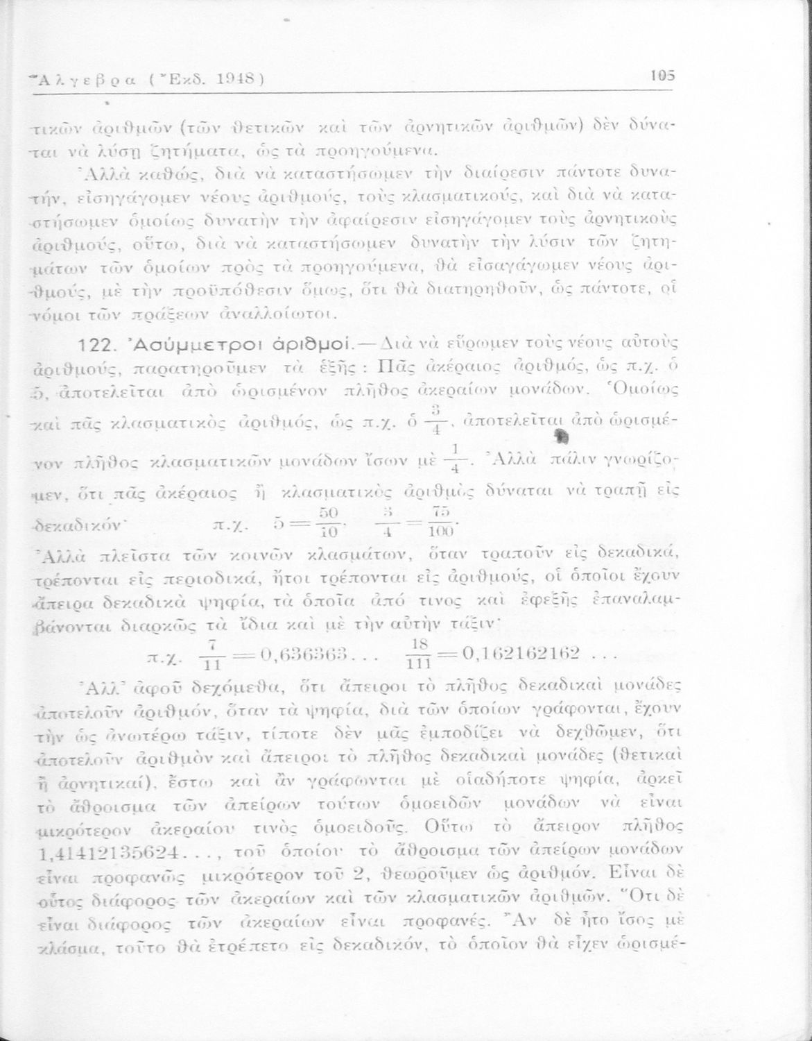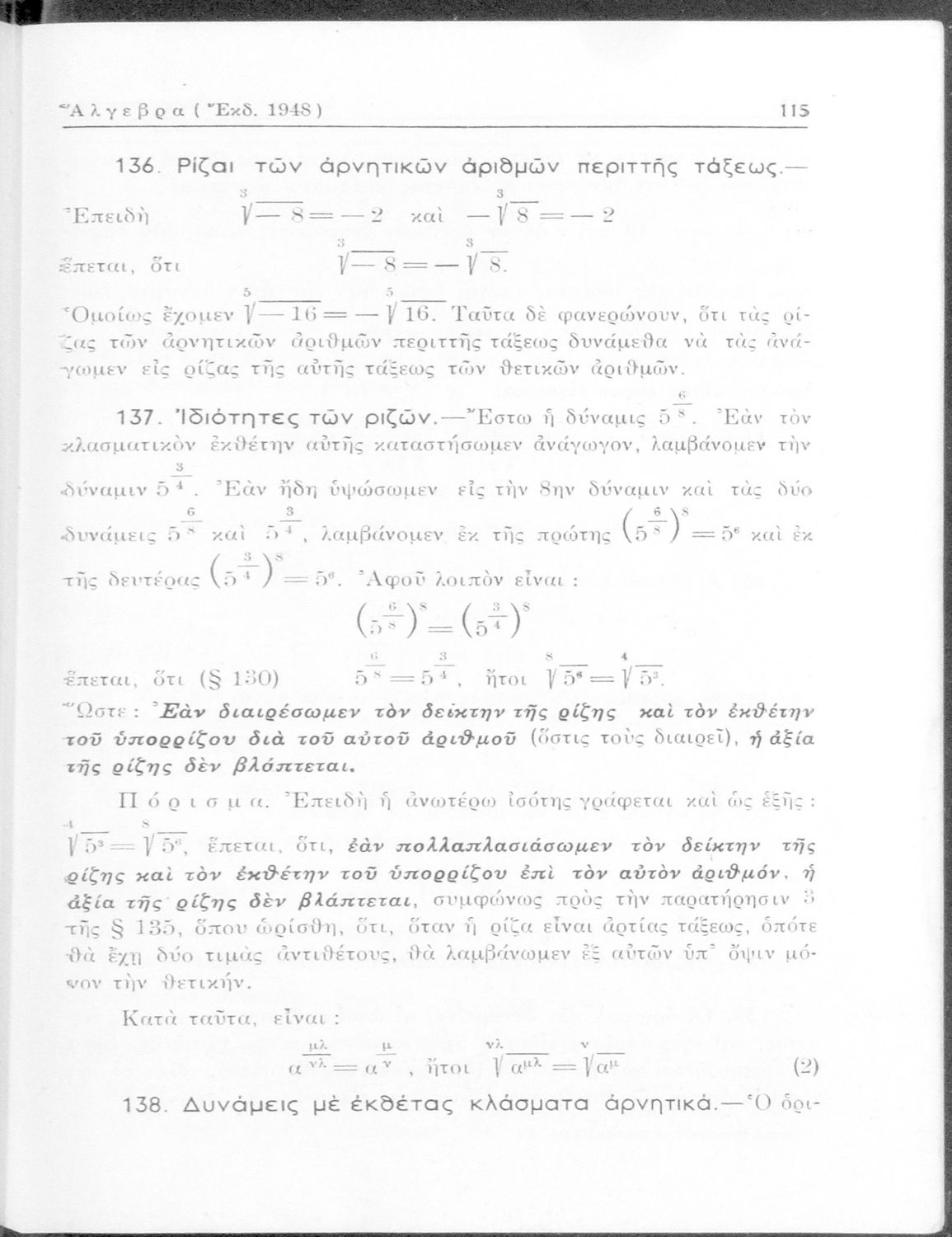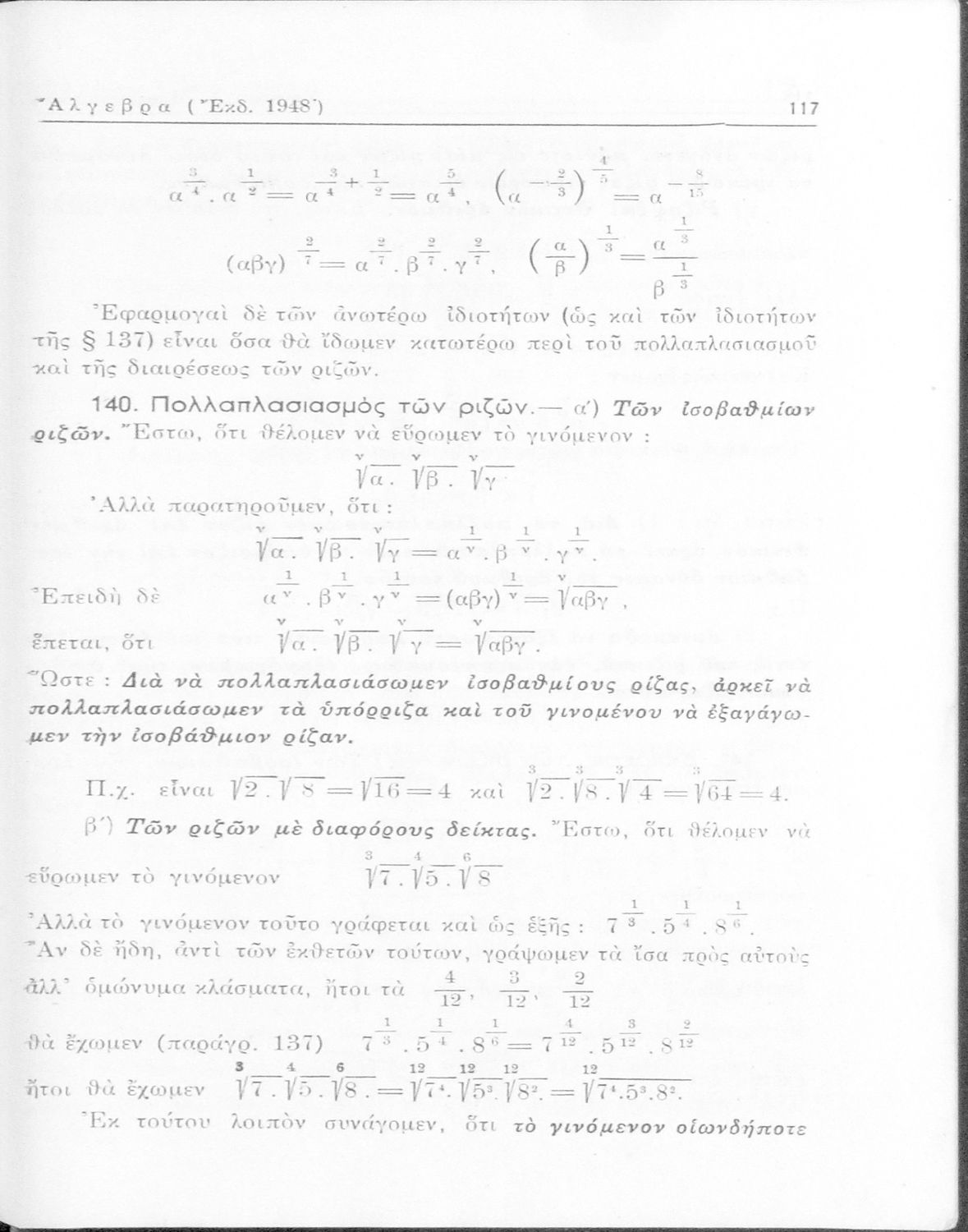 Άλγεβρα δια τας ανωτέρας τάξεις των Γυμνασίων