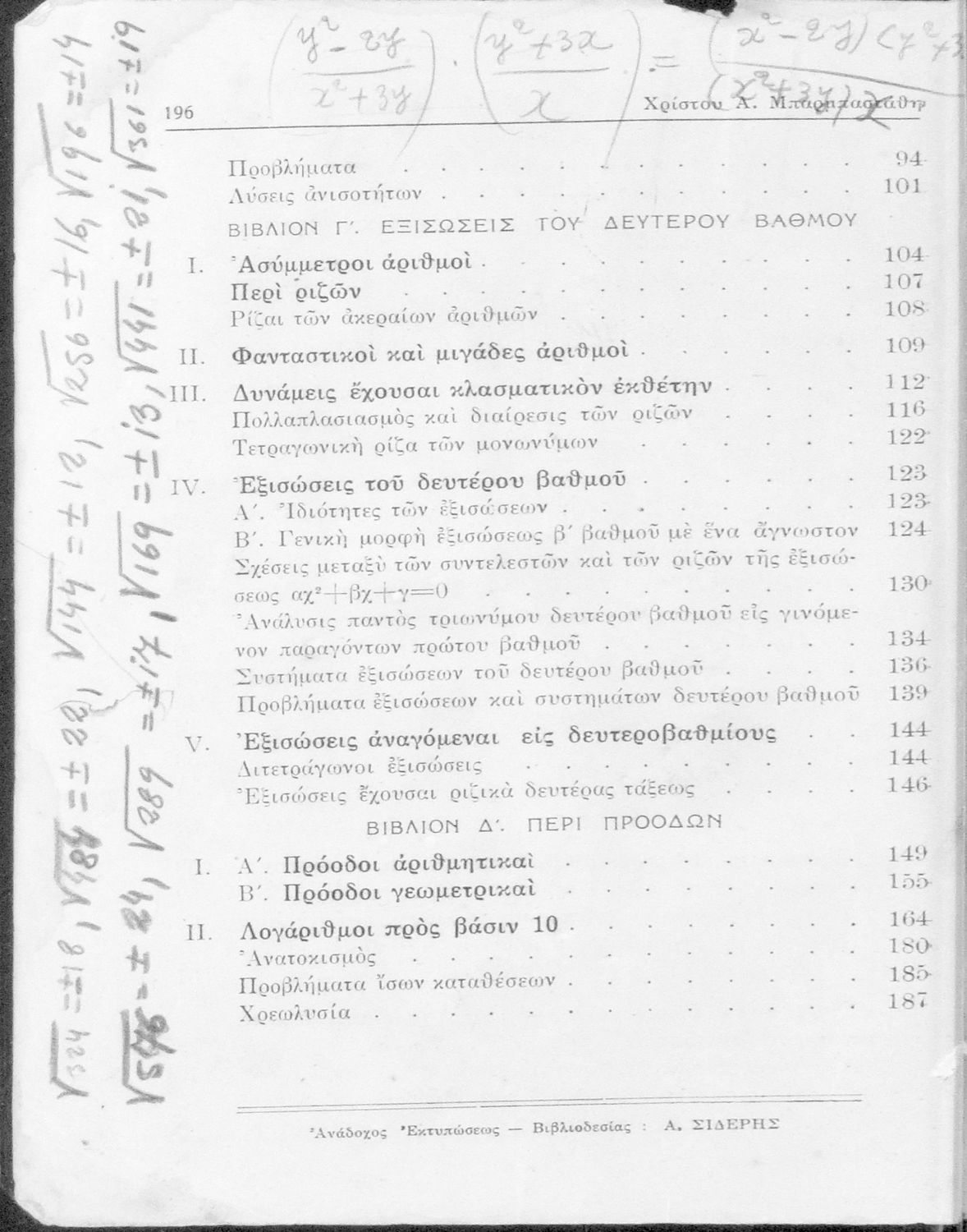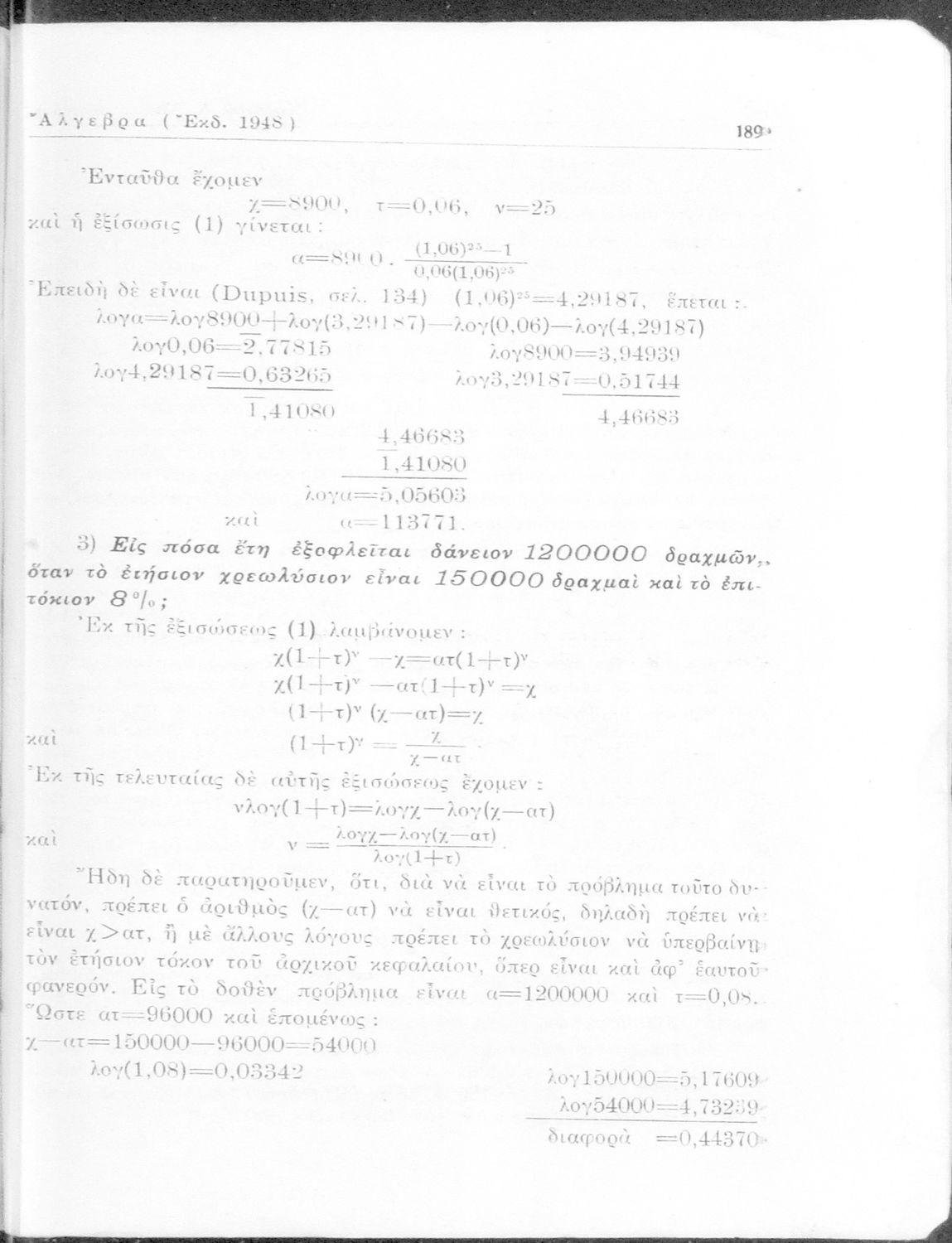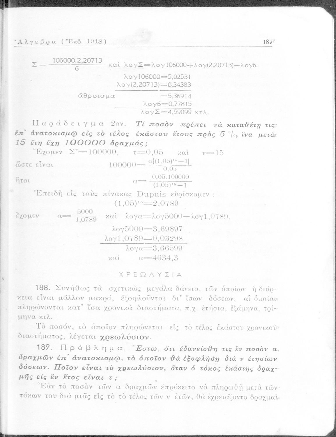 Άλγεβρα δια τας ανωτέρας τάξεις των Γυμνασίων
