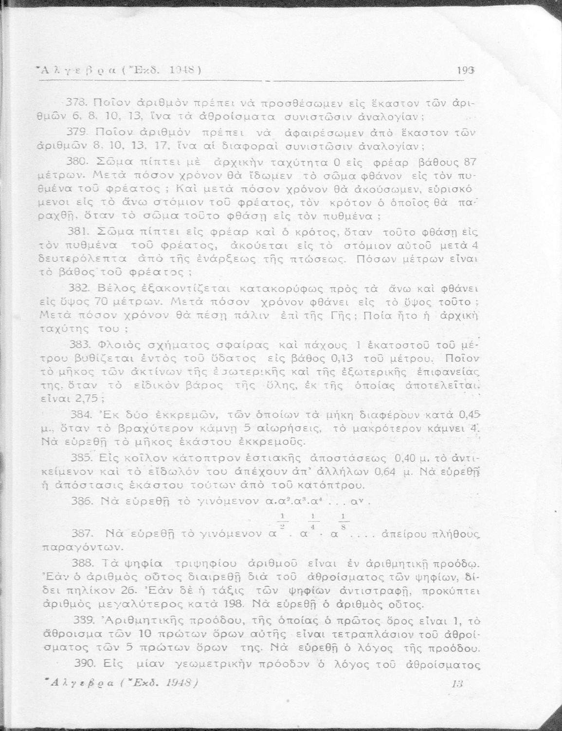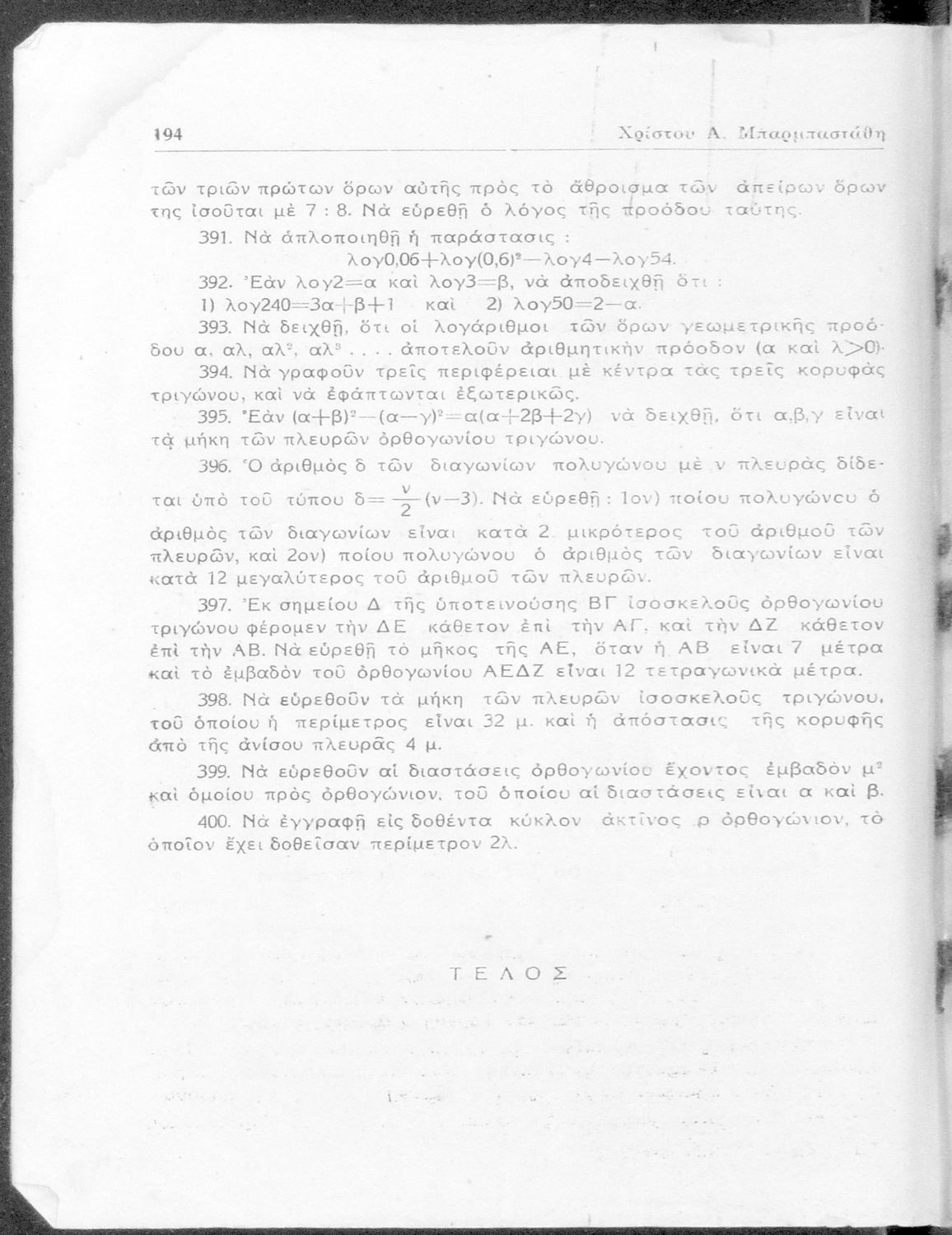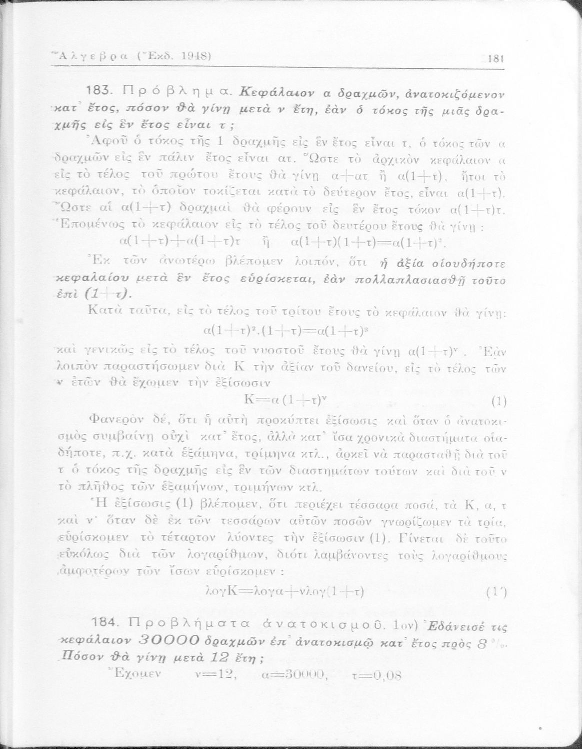 Άλγεβρα δια τας ανωτέρας τάξεις των Γυμνασίων