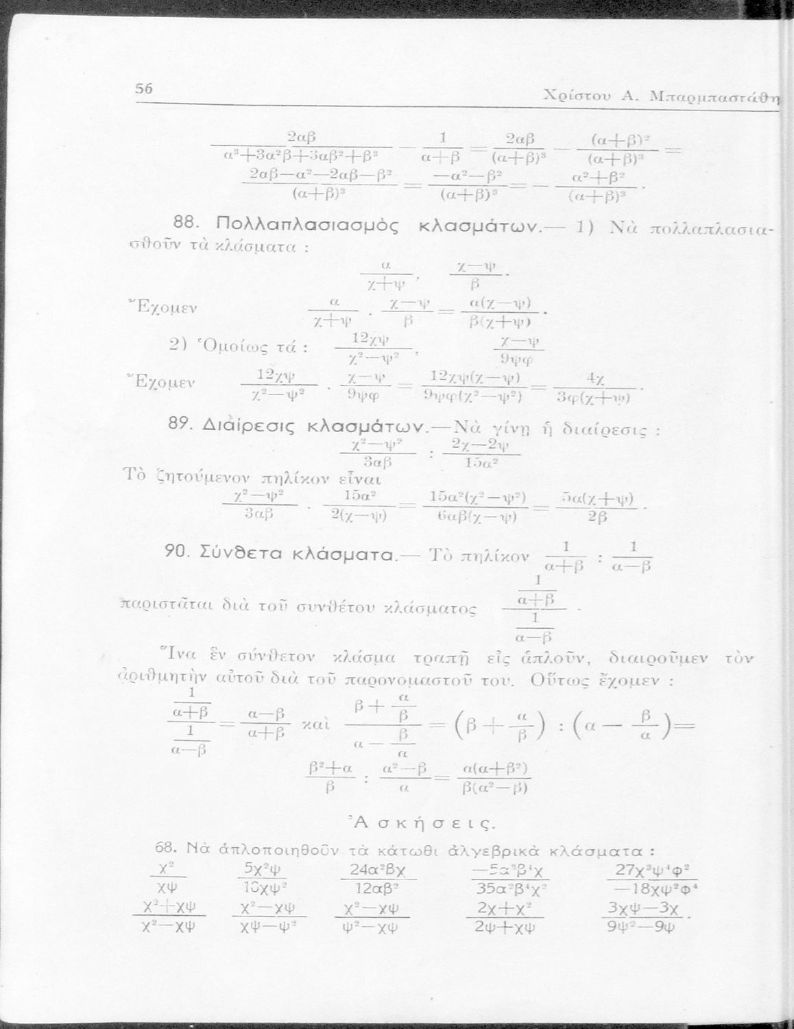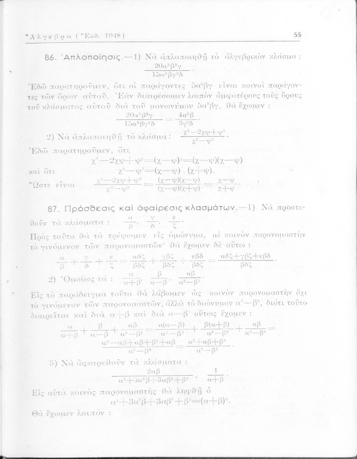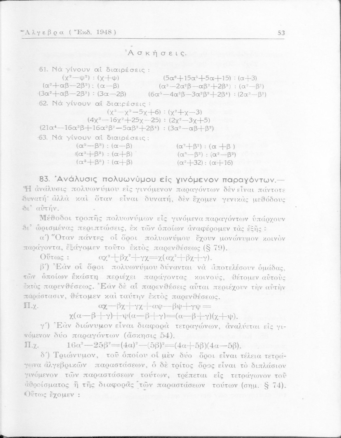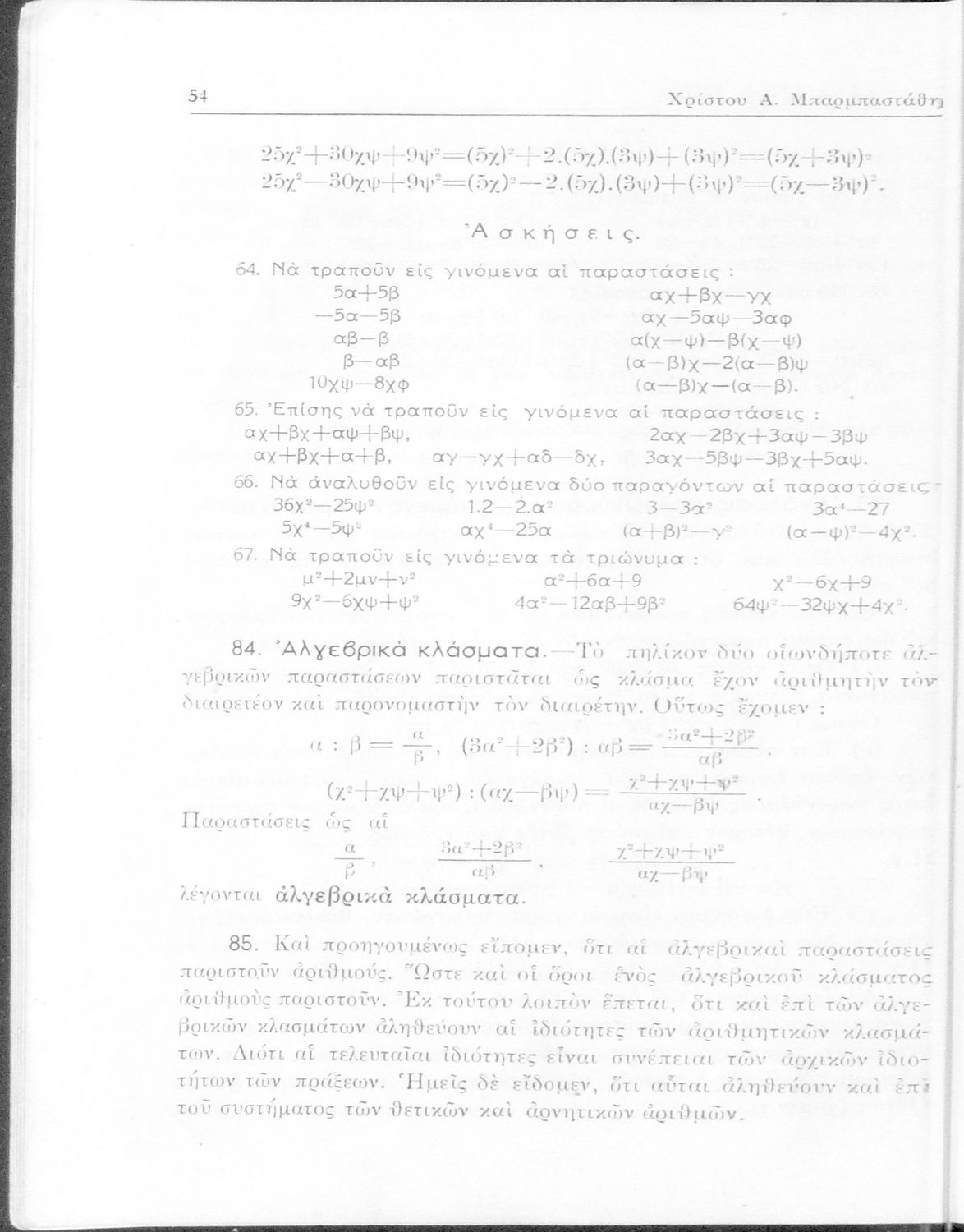Άλγεβρα δια τας ανωτέρας τάξεις των Γυμνασίων