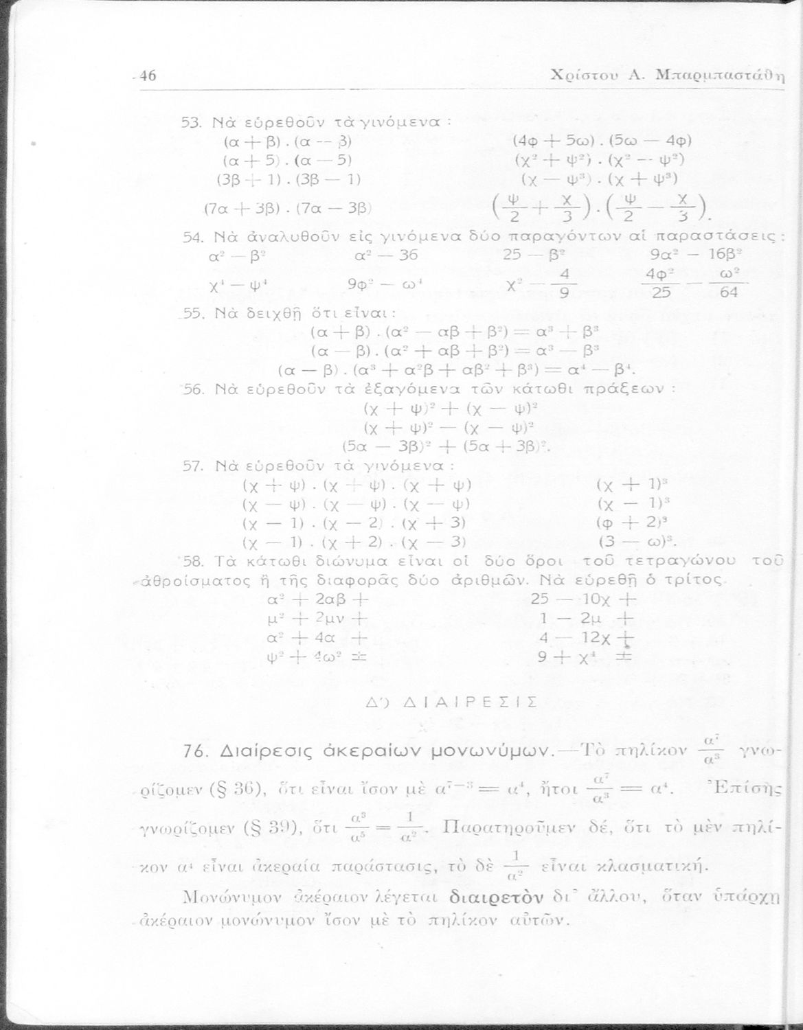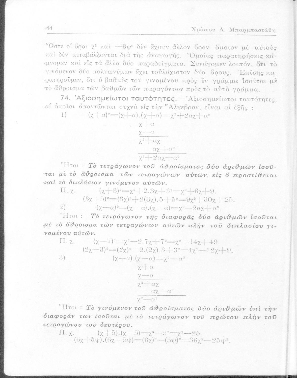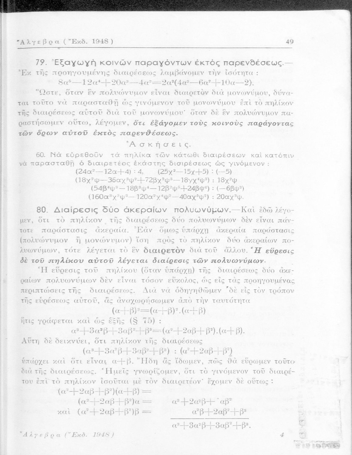 Άλγεβρα δια τας ανωτέρας τάξεις των Γυμνασίων