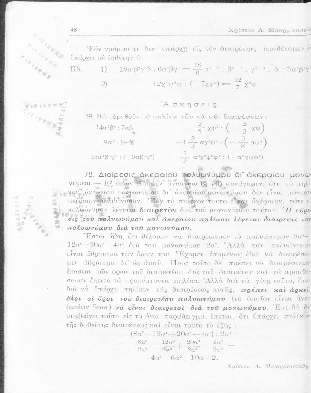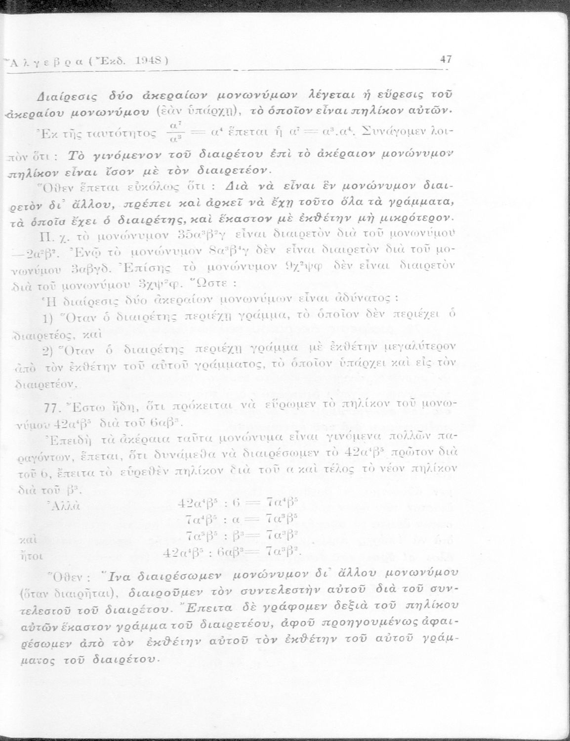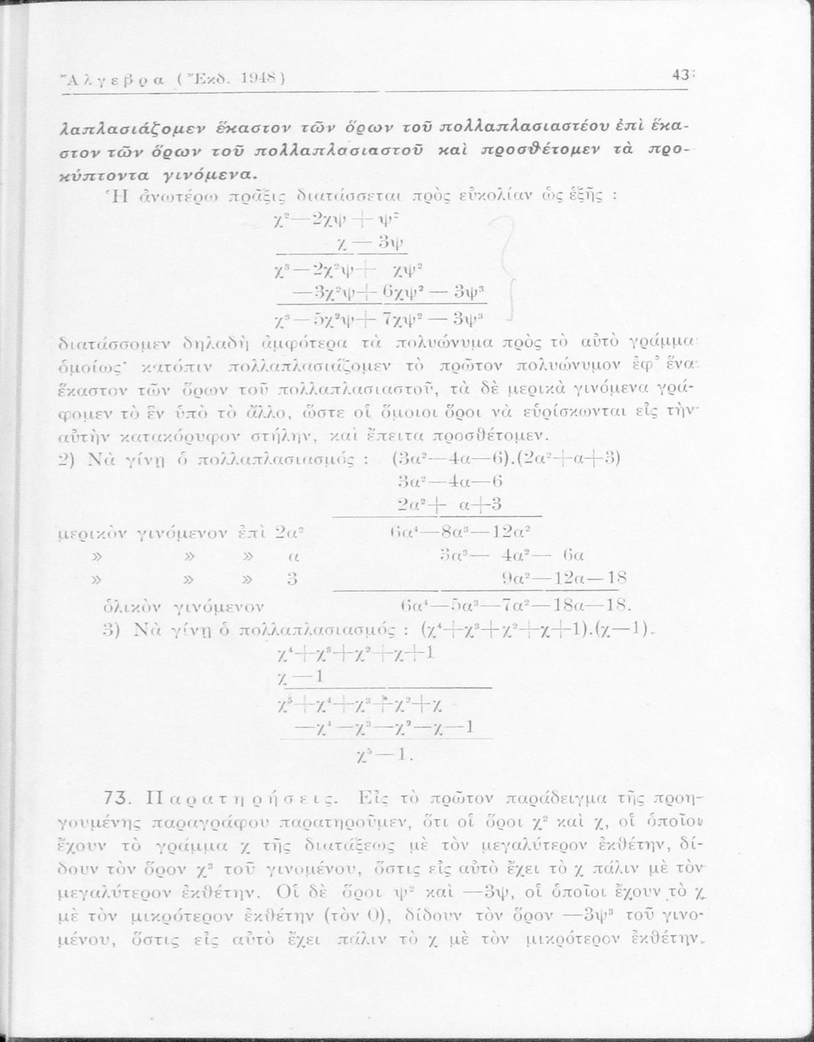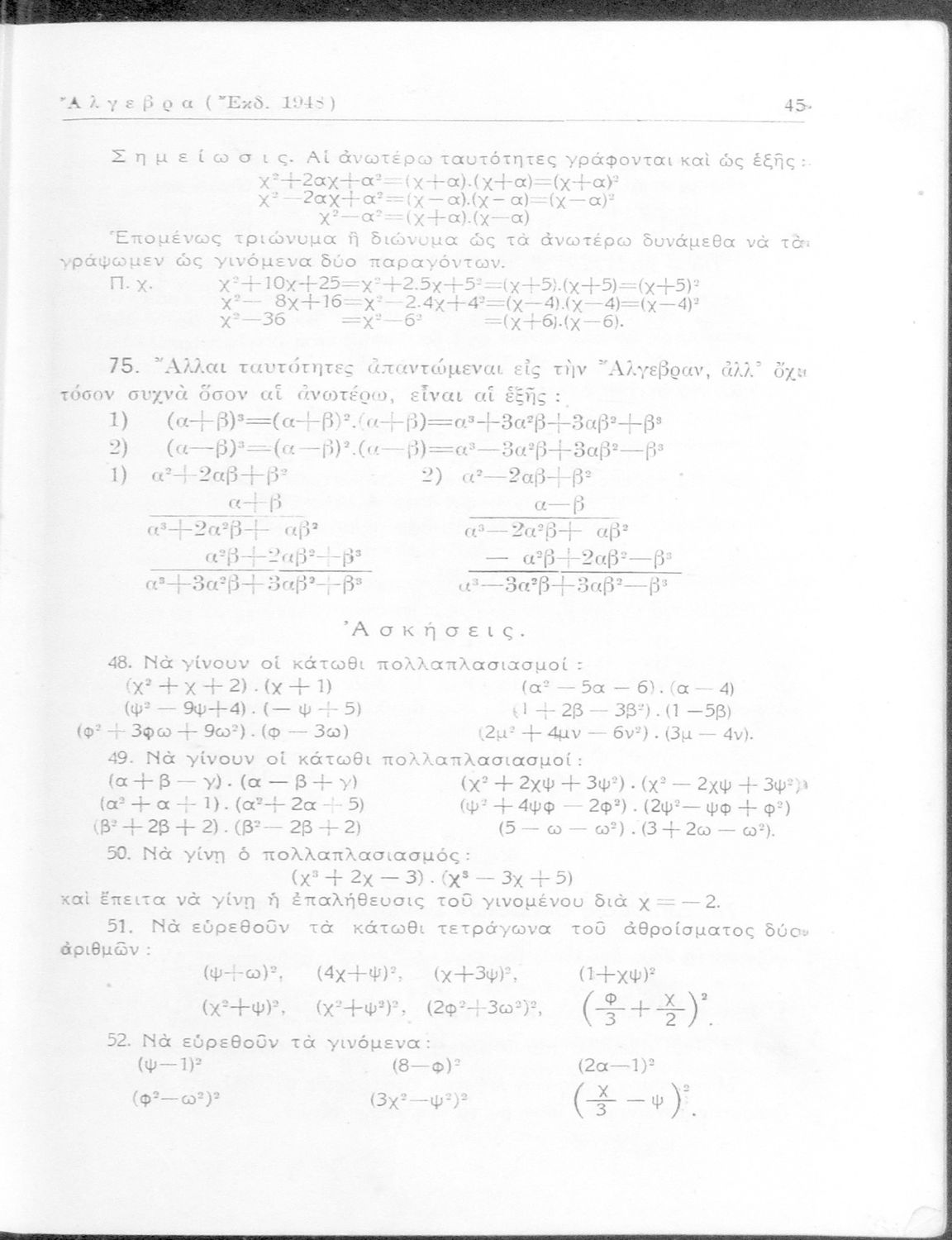 Άλγεβρα δια τας ανωτέρας τάξεις των Γυμνασίων