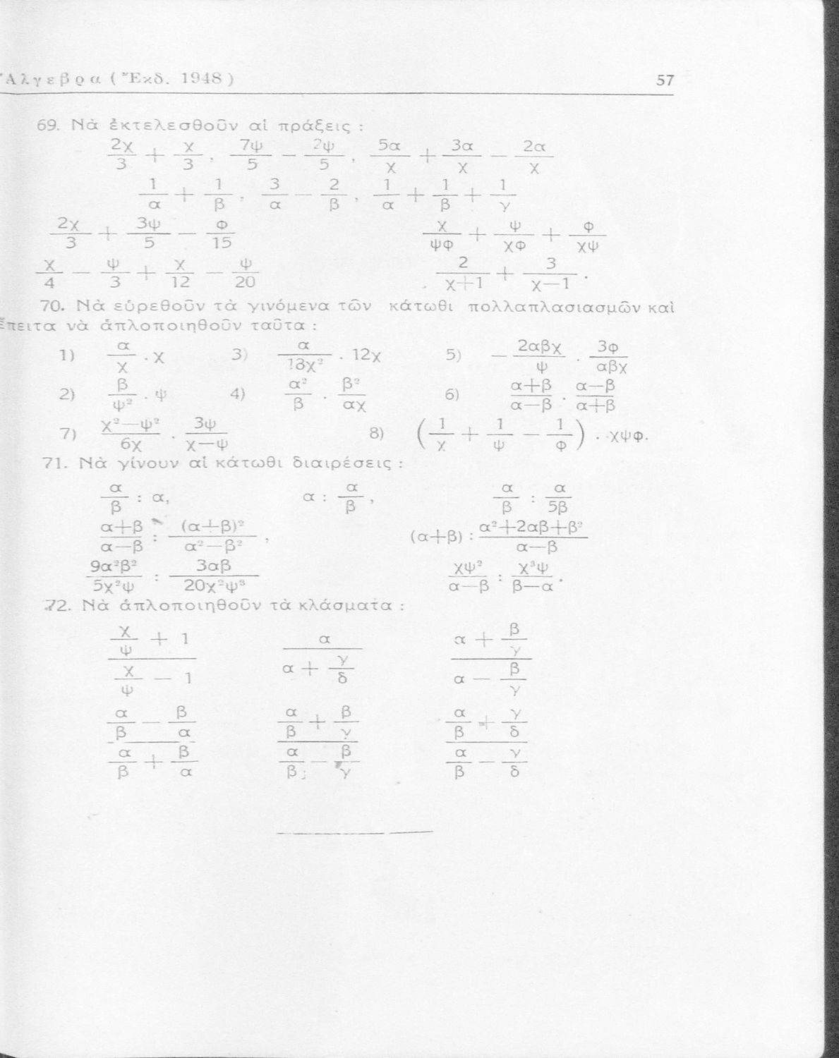 Σχολικό εγχειρίδιο Άλγεβρας Γυμνασίου που εστιάζει στις αλγεβρικές πράξεις και παραστάσεις και είναι χωρισμένο σε θεωρία και ασκήσεις.