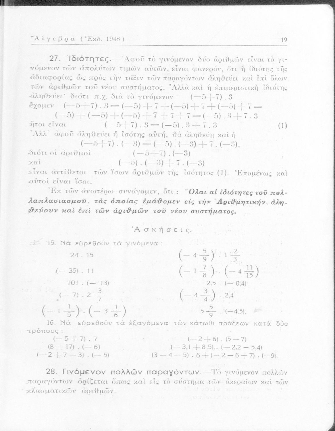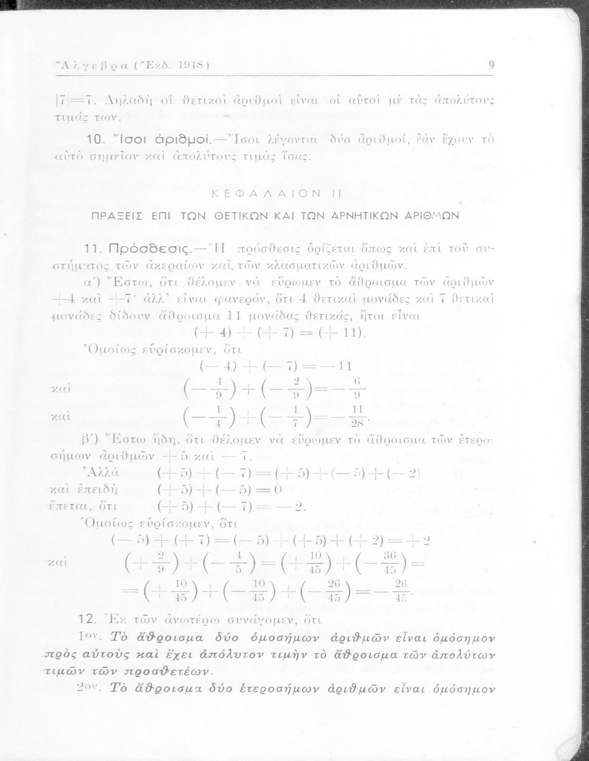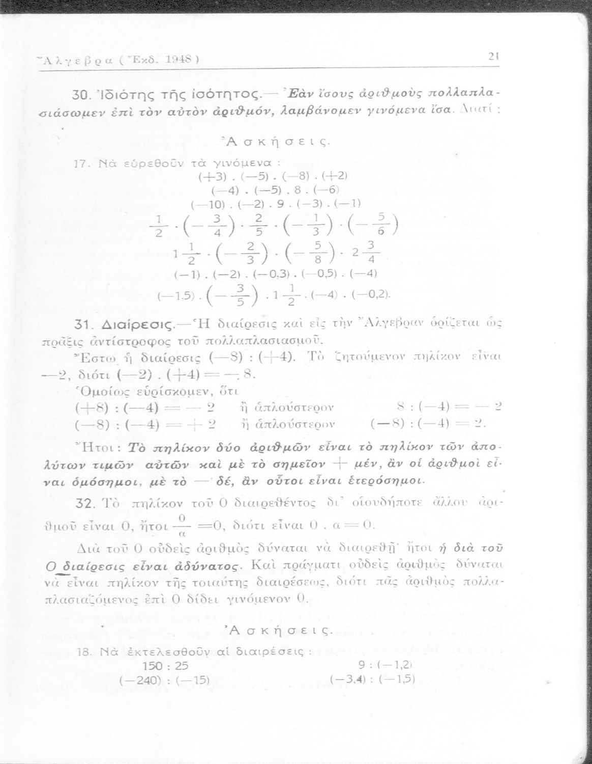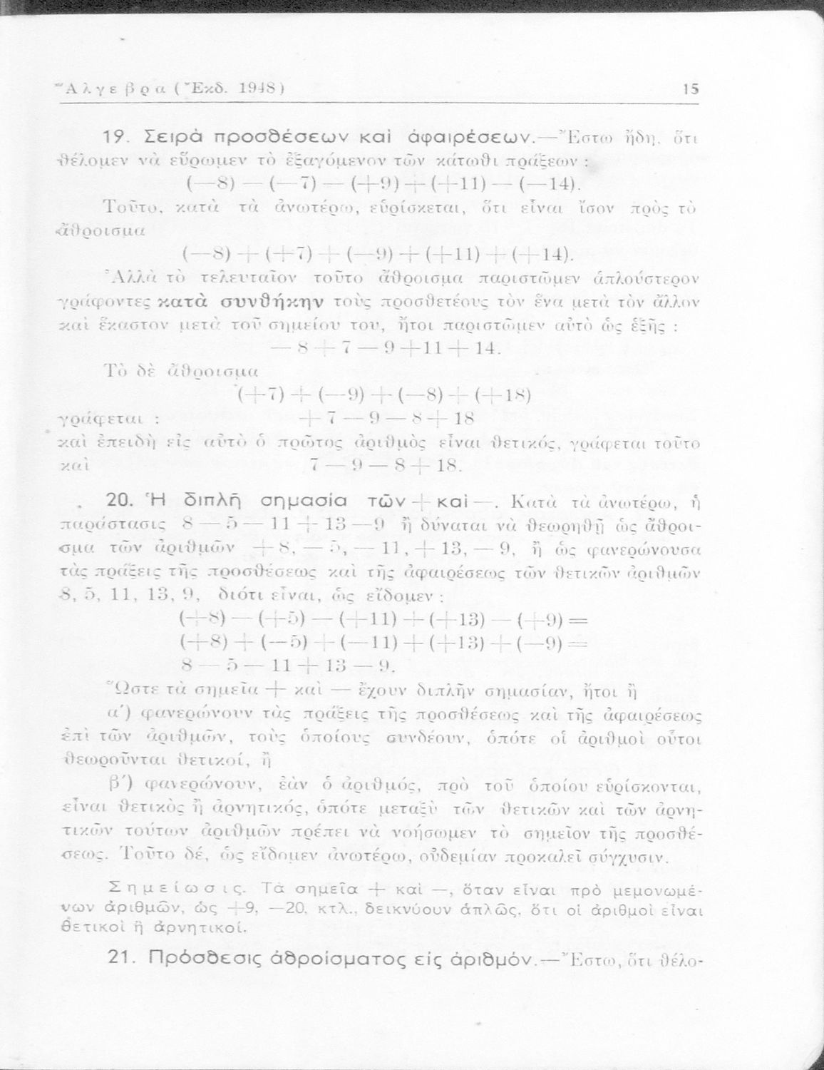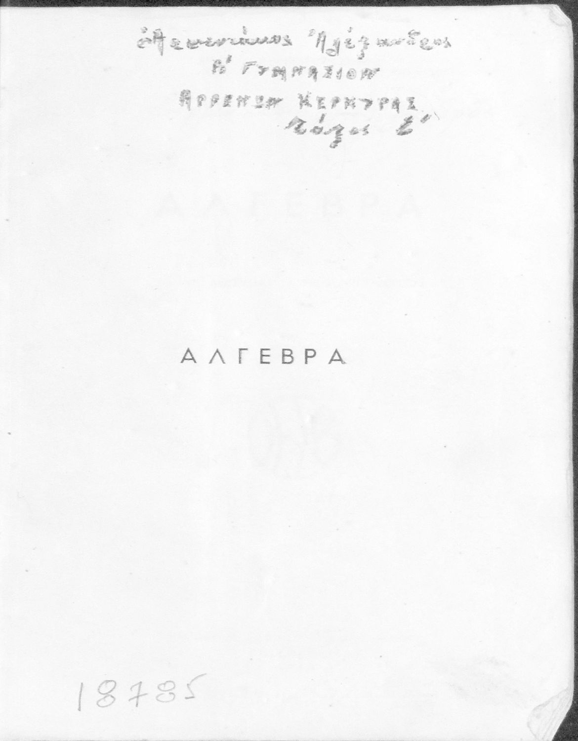 Άλγεβρα δια τας ανωτέρας τάξεις των Γυμνασίων