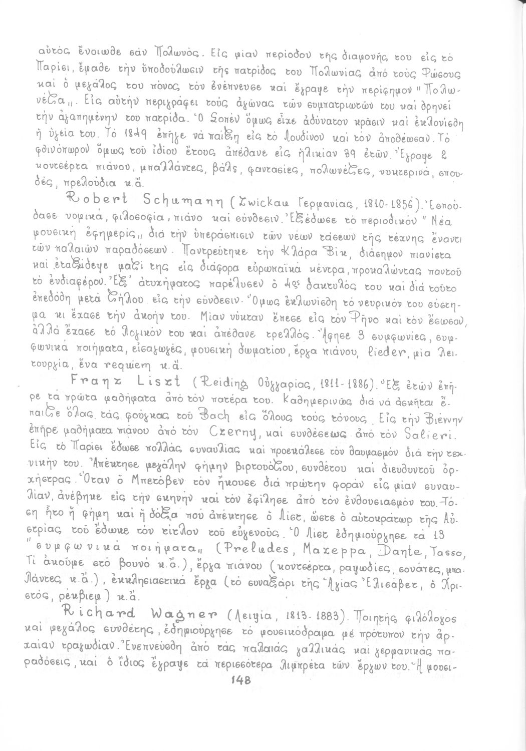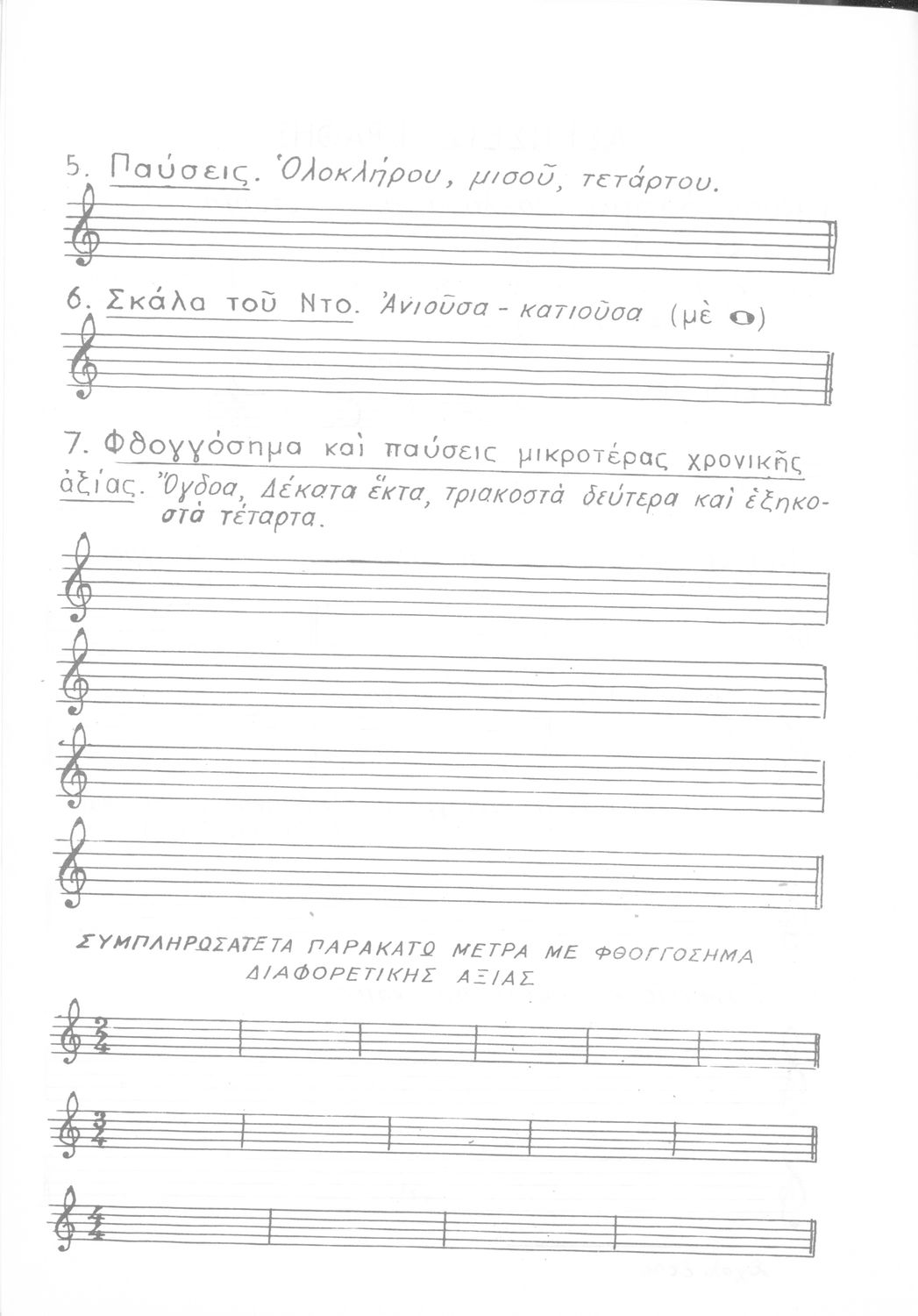 Σχολικό εγχειρίδιο Μουσικής κατά το αναλυτικόν πρόγραμμα του Υπουργείου Παιδείας. Περιέχει Θεωρία- Σολφέζ- Τραγούδι- Οργανολογία- Μορφολογία και Ιστορία της Μουσικής.