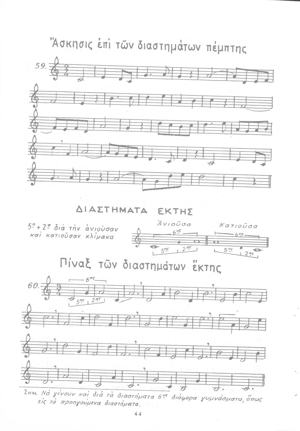 Σχολικό εγχειρίδιο Μουσικής κατά το αναλυτικόν πρόγραμμα του Υπουργείου Παιδείας. Περιέχει Θεωρία- Σολφέζ- Τραγούδι- Οργανολογία- Μορφολογία και Ιστορία της Μουσικής.