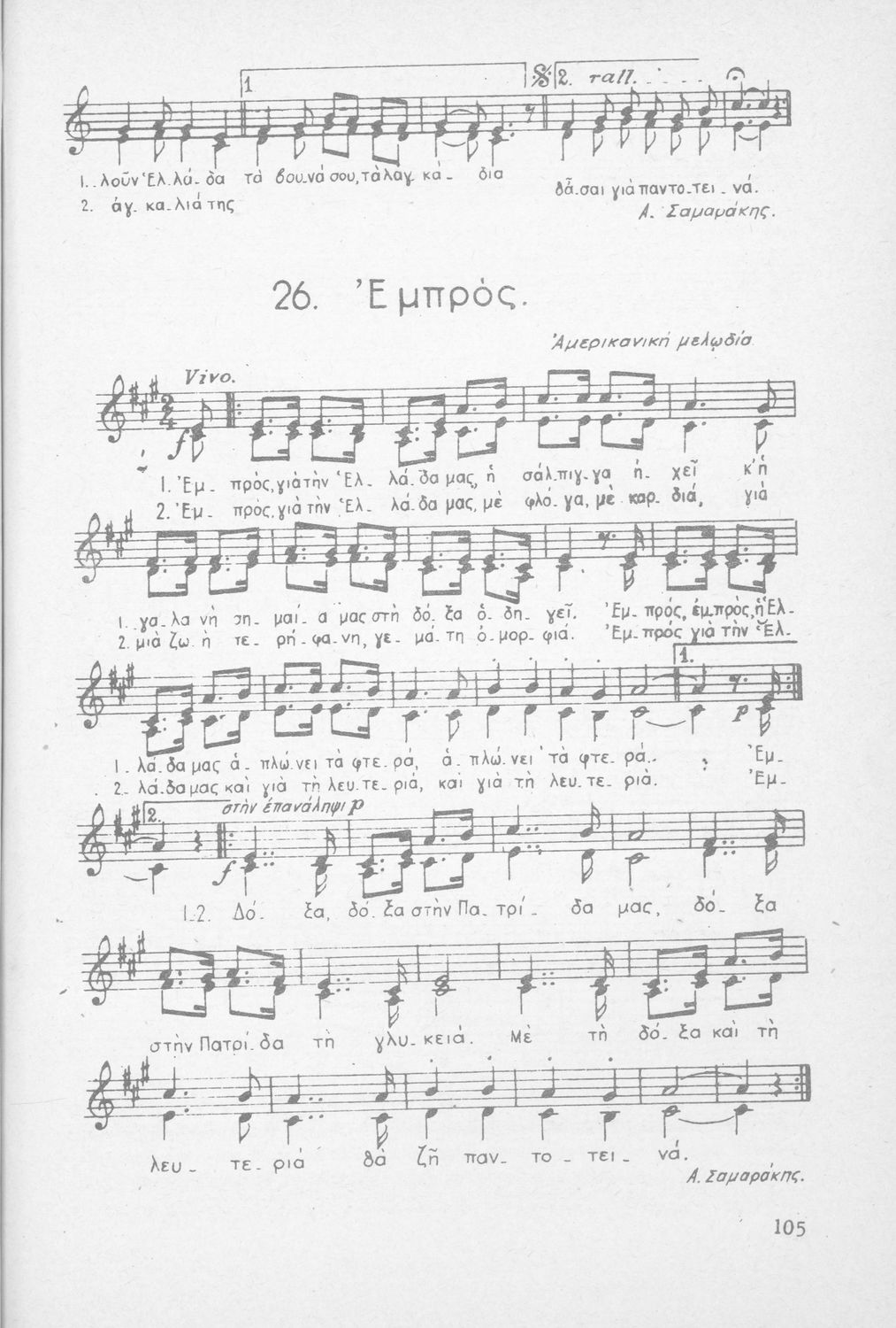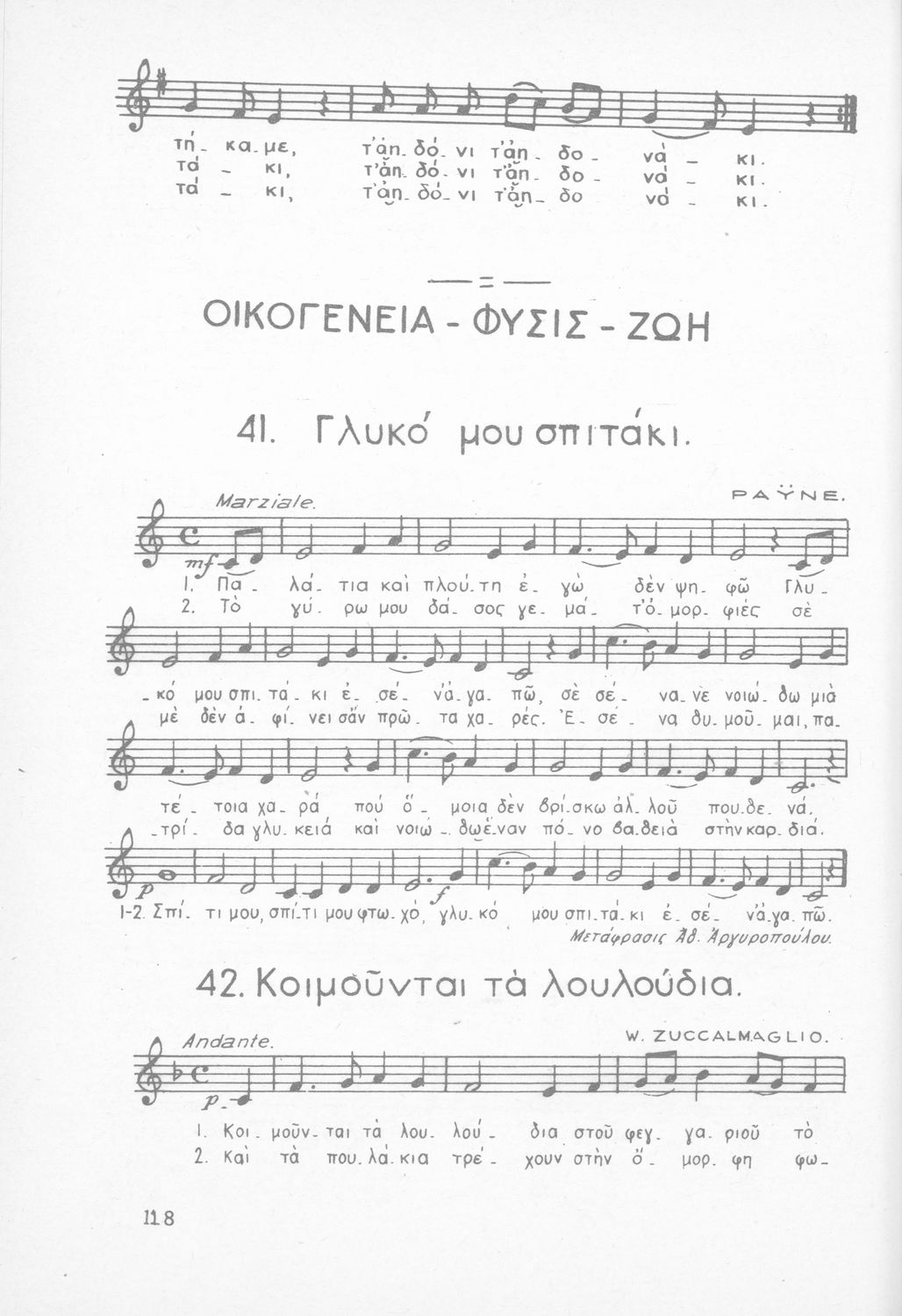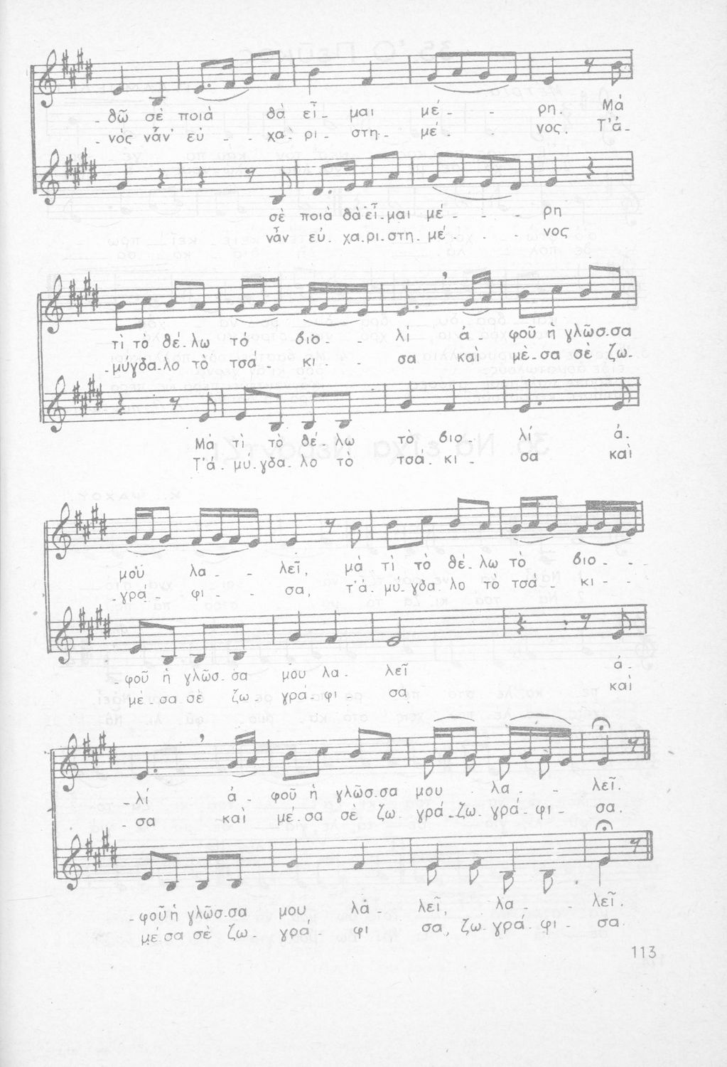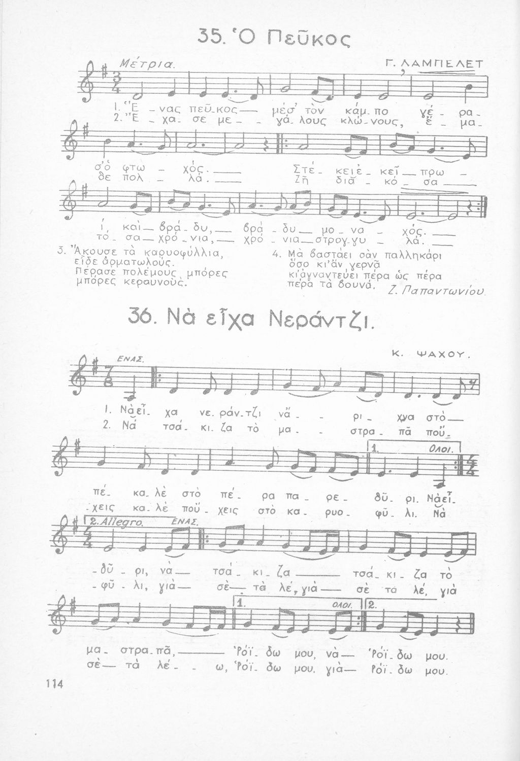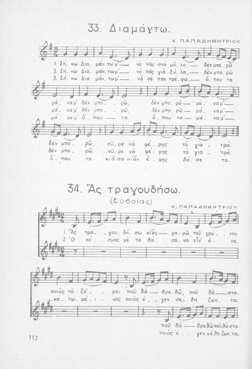 Σχολικό εγχειρίδιο Μουσικής για Γυμνάσια, Παρθεναγωγεία και Διδασκαλεία. Περιέχει ασκήσεις μελωδικές, χωρίς θεωρία.