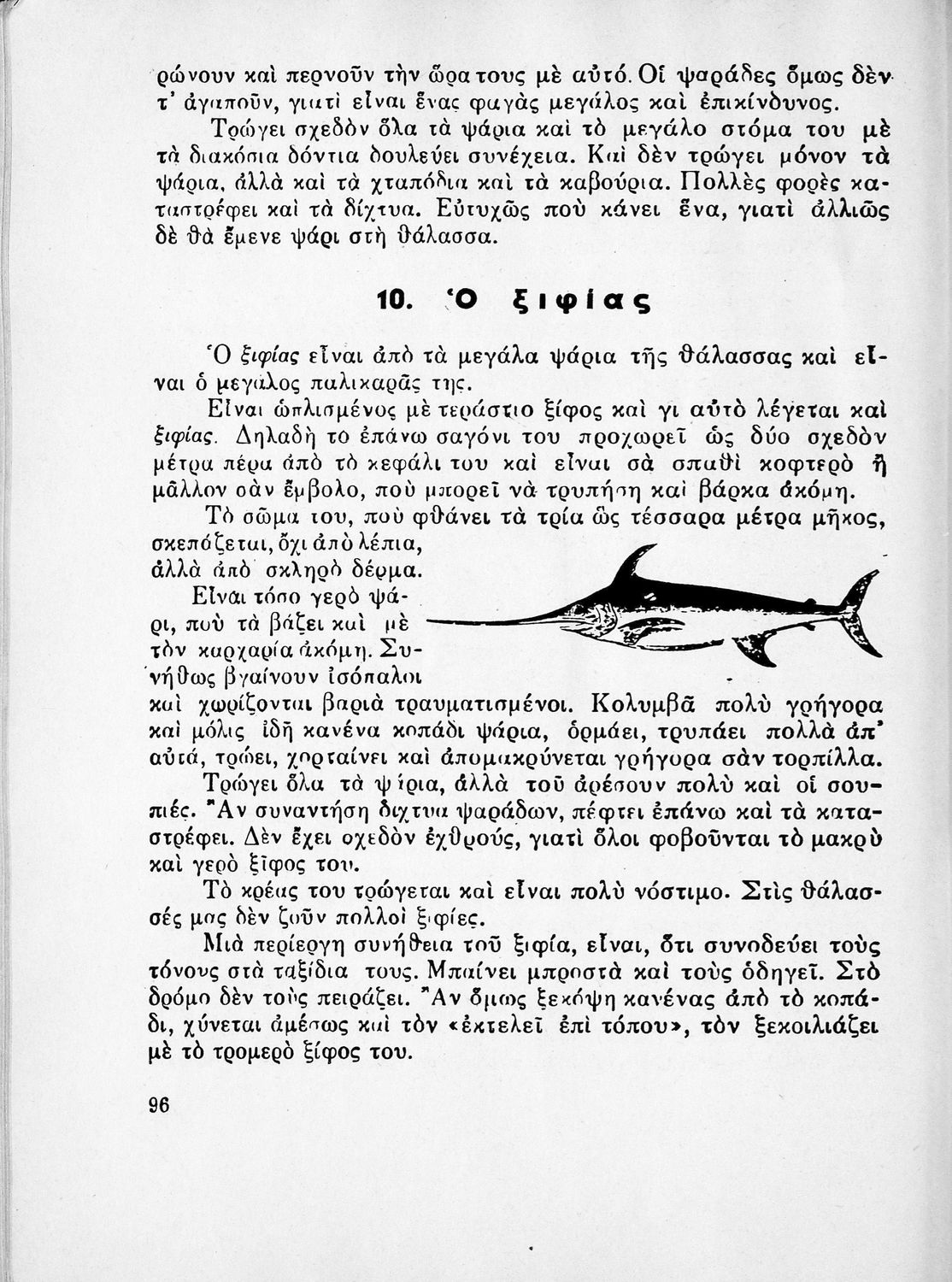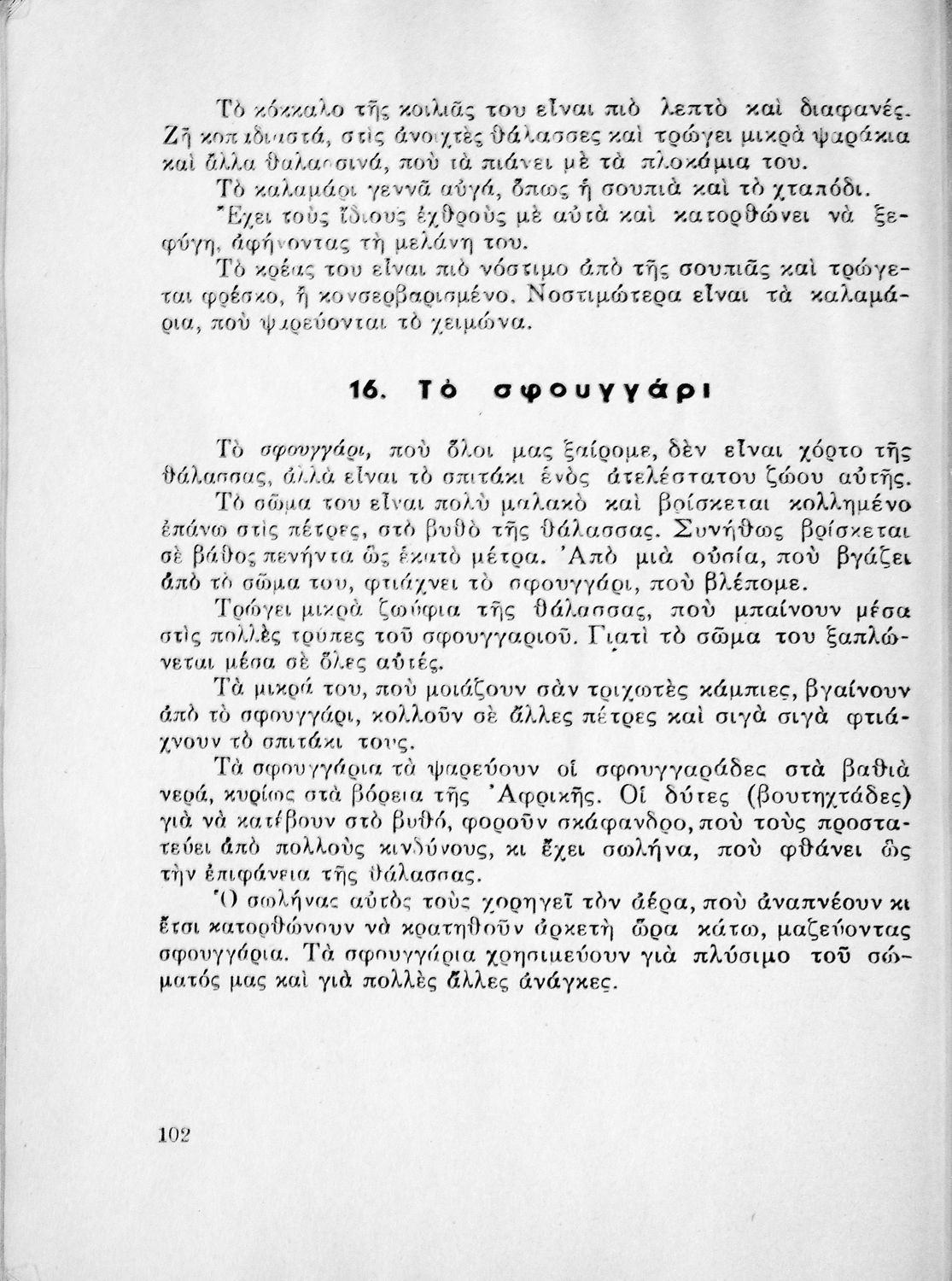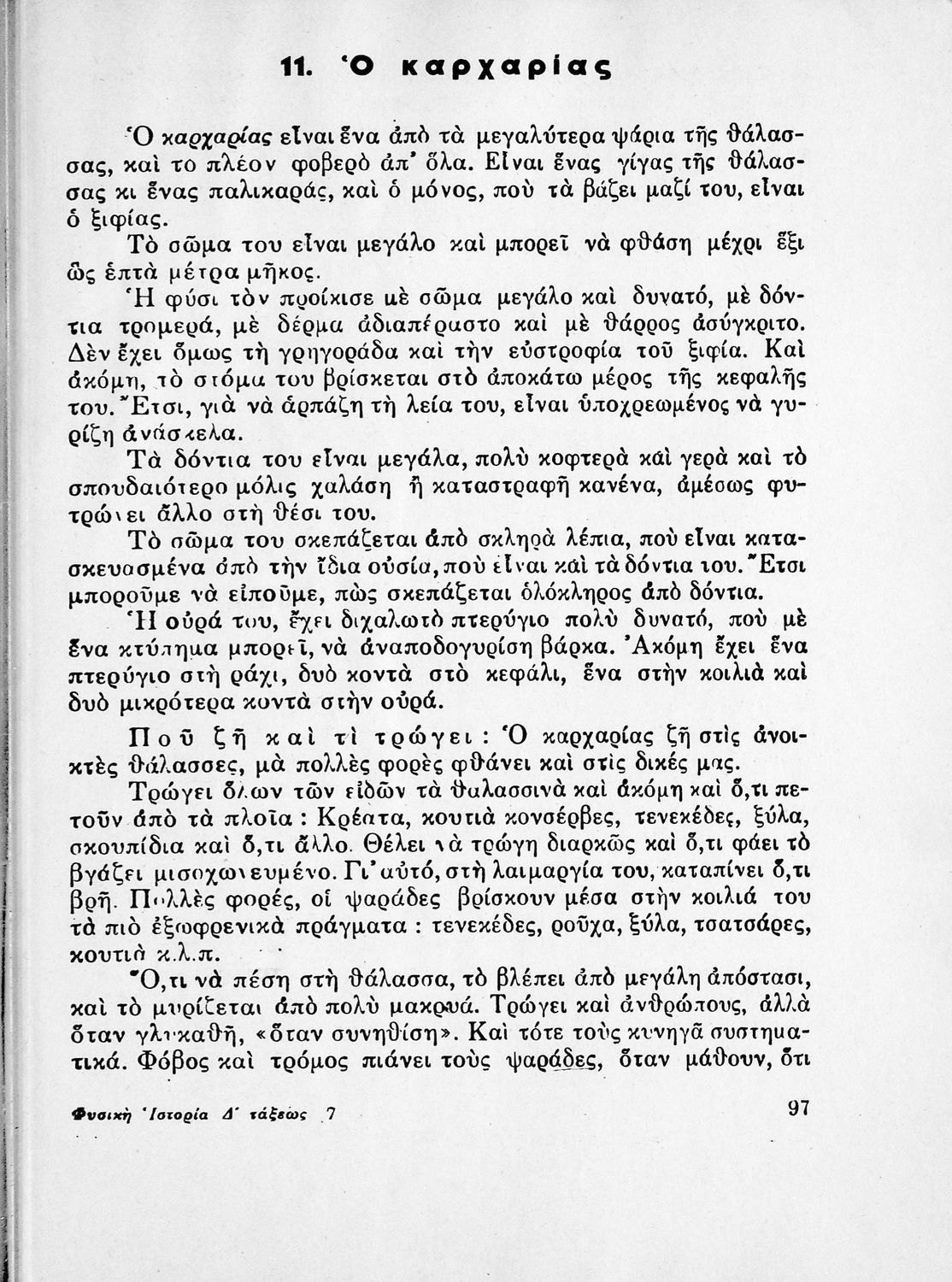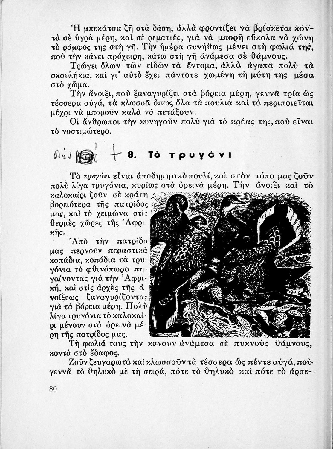Σχολικό εγχειρίδιο Γεωγραφίας για την Α΄ Ελληνικών Σχολείων. Βιβλίο Φυσικής Ιστορίας με ζώα και φυτά που αναφέρονται οι χρήσεις τους, οι εχθροί και οι προφυλάξεις.