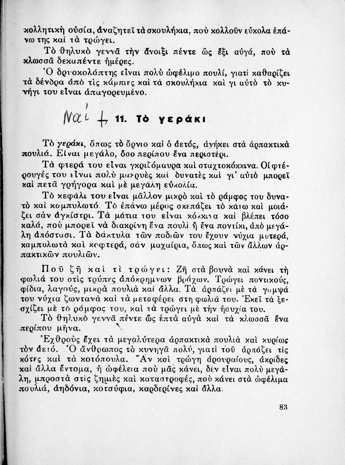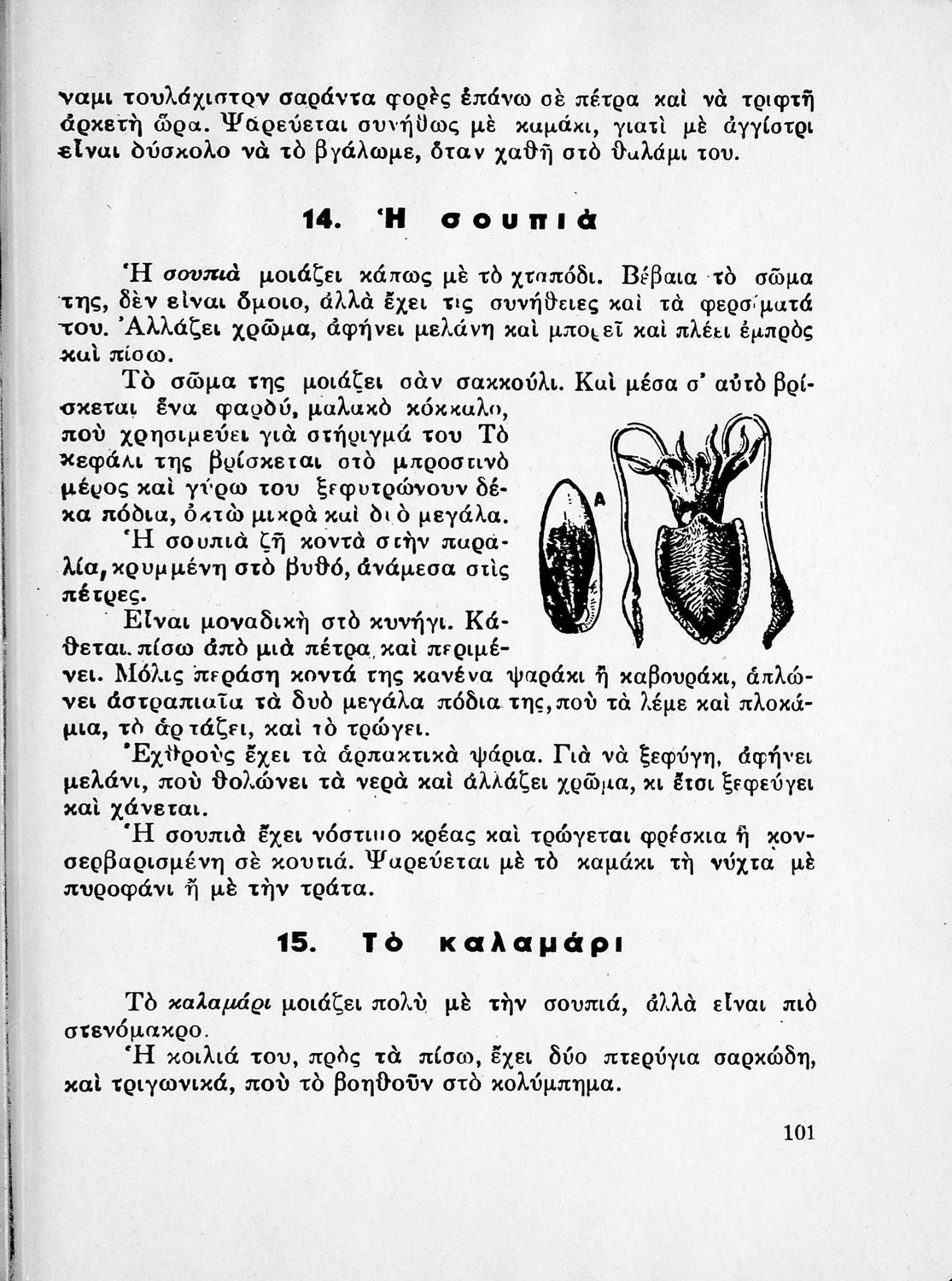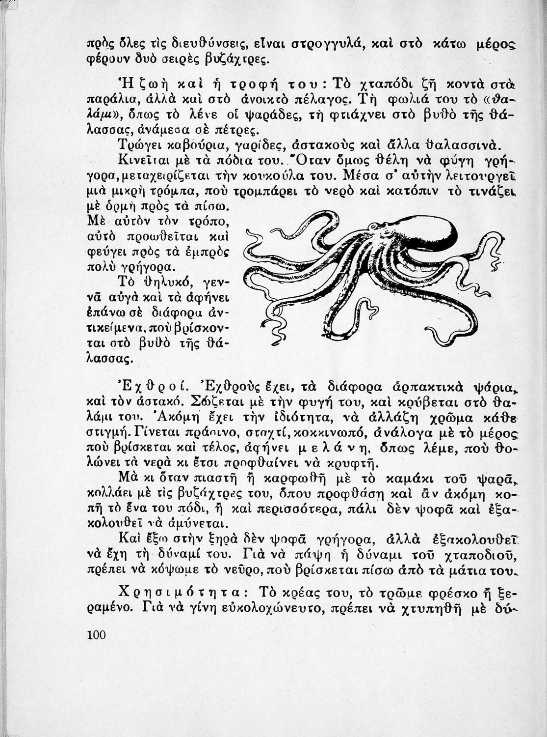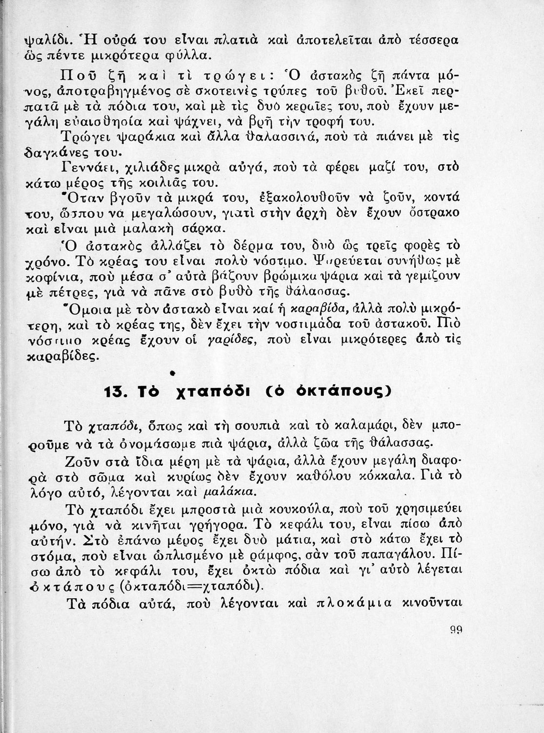 Σχολικό εγχειρίδιο Γεωγραφίας για την Α΄ Ελληνικών Σχολείων. Βιβλίο Φυσικής Ιστορίας με ζώα και φυτά που αναφέρονται οι χρήσεις τους, οι εχθροί και οι προφυλάξεις.
