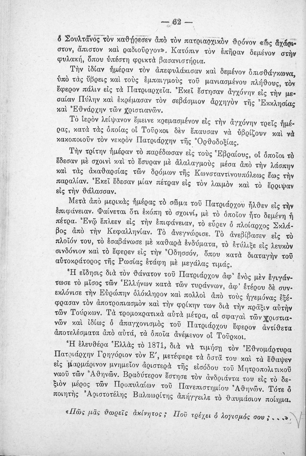 Σχολικό εγχειρίδιο της ΣΤ΄ Δημοτικού για το μάθημα της Ιστορίας. Αναφέρεται διεξοδικά στην Ελληνική Επανάσταση και συνοπτικά καλύπτονται τα άλλα ιστορικά γεγονότα μέχρι των Β΄ Παγκόσμιο.