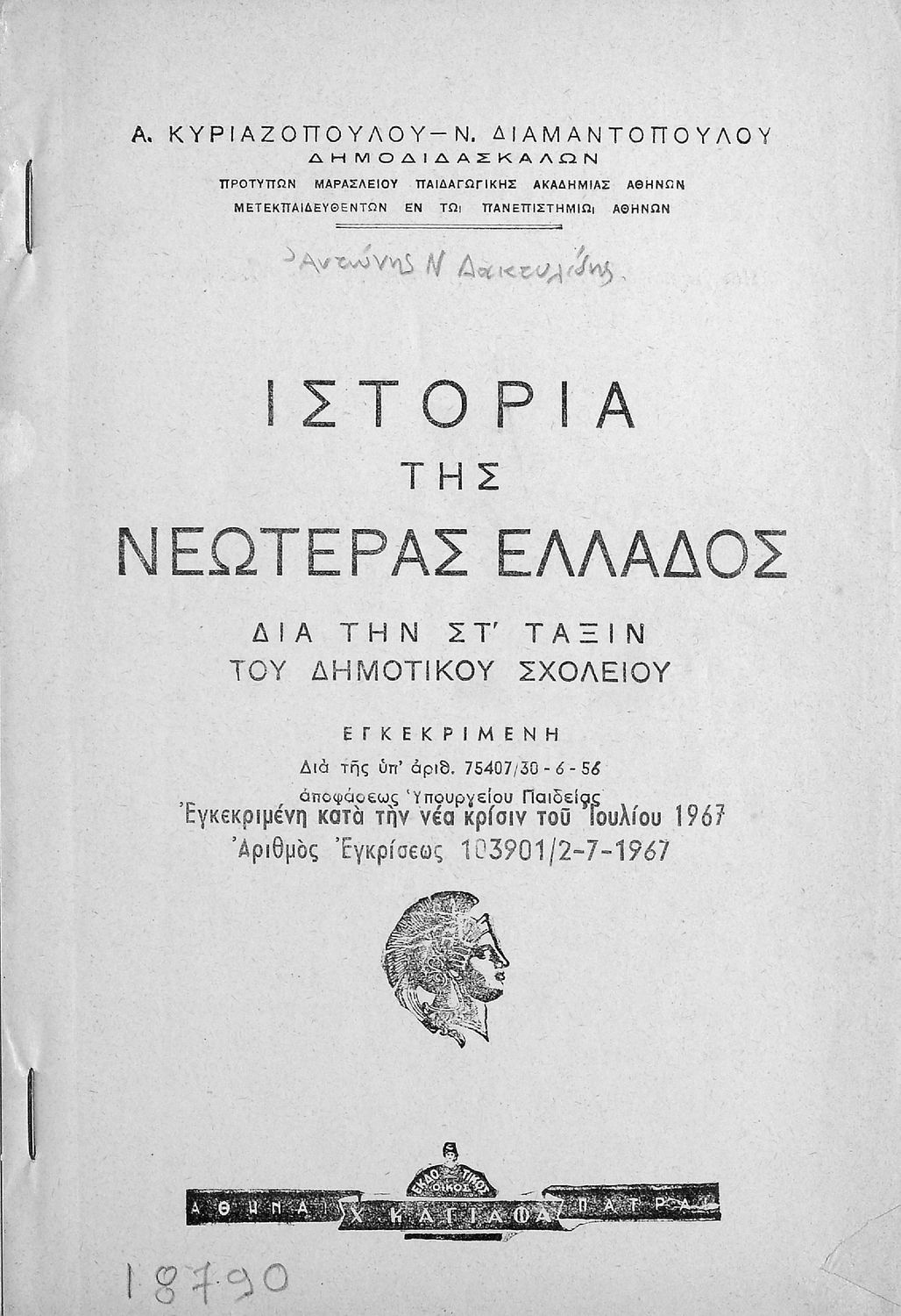 Τίτλος: Ιστορία της Νεωτέρας Ελλάδος. ΣΤ΄ Τάξεως Δημοτικού Σχολείου