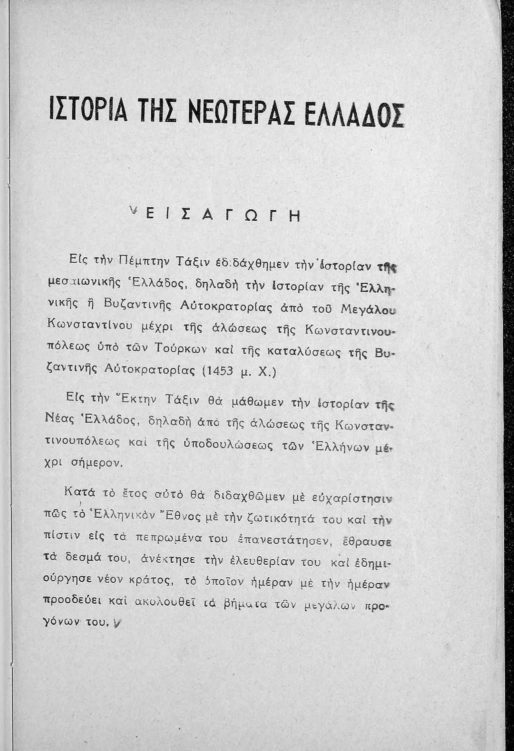 Σχολικό εγχειρίδιο της ΣΤ΄ Δημοτικού για το μάθημα της Ιστορίας. Αναφέρεται διεξοδικά στην Ελληνική Επανάσταση και συνοπτικά καλύπτονται τα άλλα ιστορικά γεγονότα μέχρι των Β΄ Παγκόσμιο.