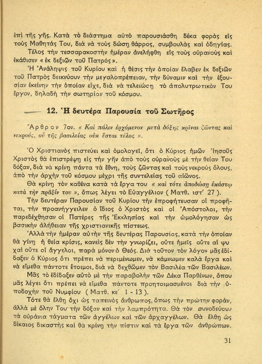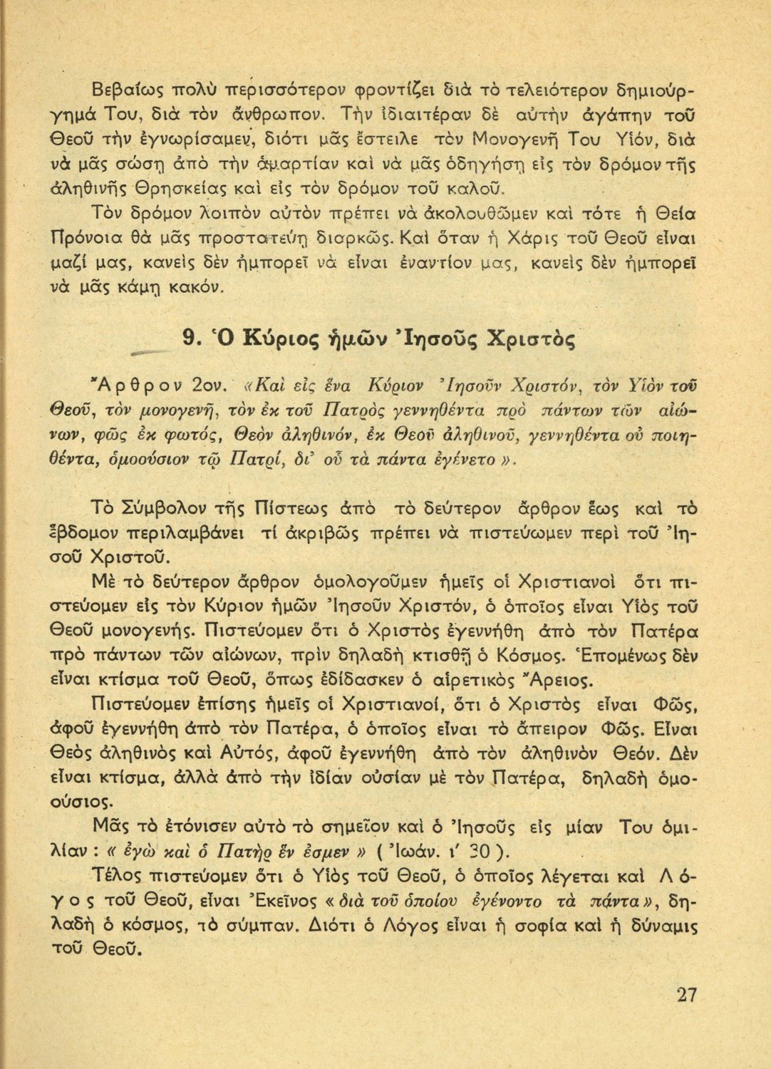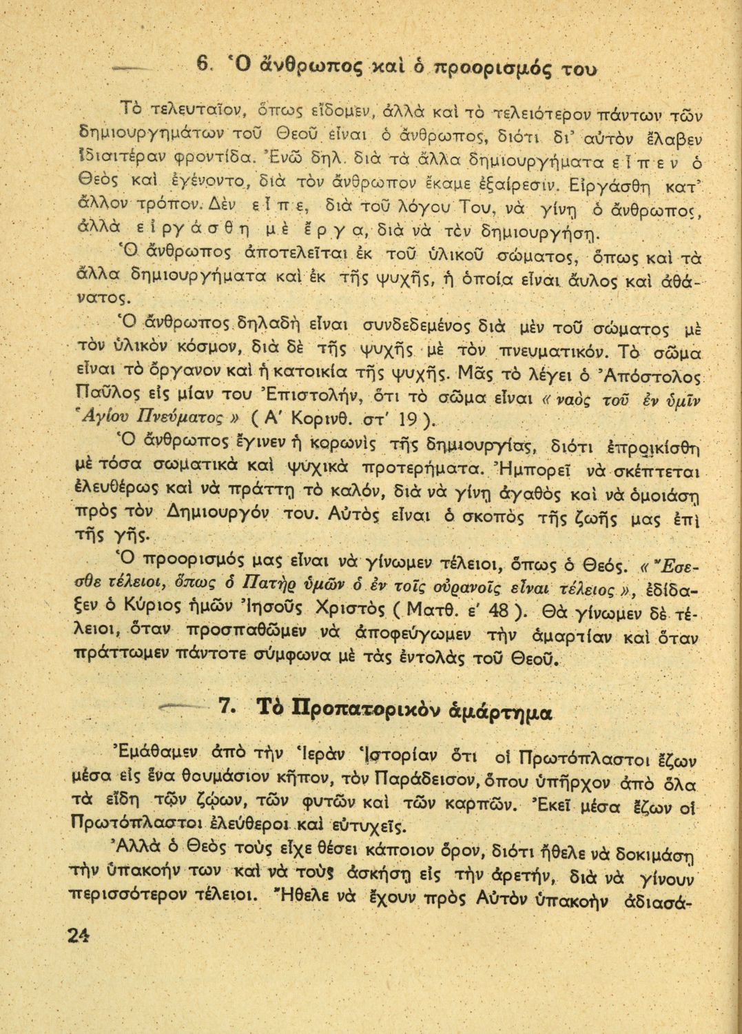 Βαθμίδα εκπαίδευσης: Πρωτοβάθμια Τάξη: ΣΤ' Δημοτικού Μάθημα: Θρησκευτικά Γλώσσα: Απλή καθαρεύουσα Παρουσίαση περιεχομένου: Μαθητικό βοήθημα Θρησκευτικών ΣΤ΄ Δημοτικού που αναλύει την έννοια της κατήχησης με έμφαση στο ορθόδοξο χριστιανικό δόγμα, το οποίο εξετάζει από δογματική και ηθική σκοπιά. Περιλαμβάνει και στοιχεία λειτουργικής της Ορθόδοξης Εκκλησίας και παράρτημα με προσευχές. |