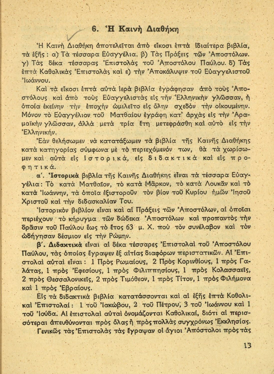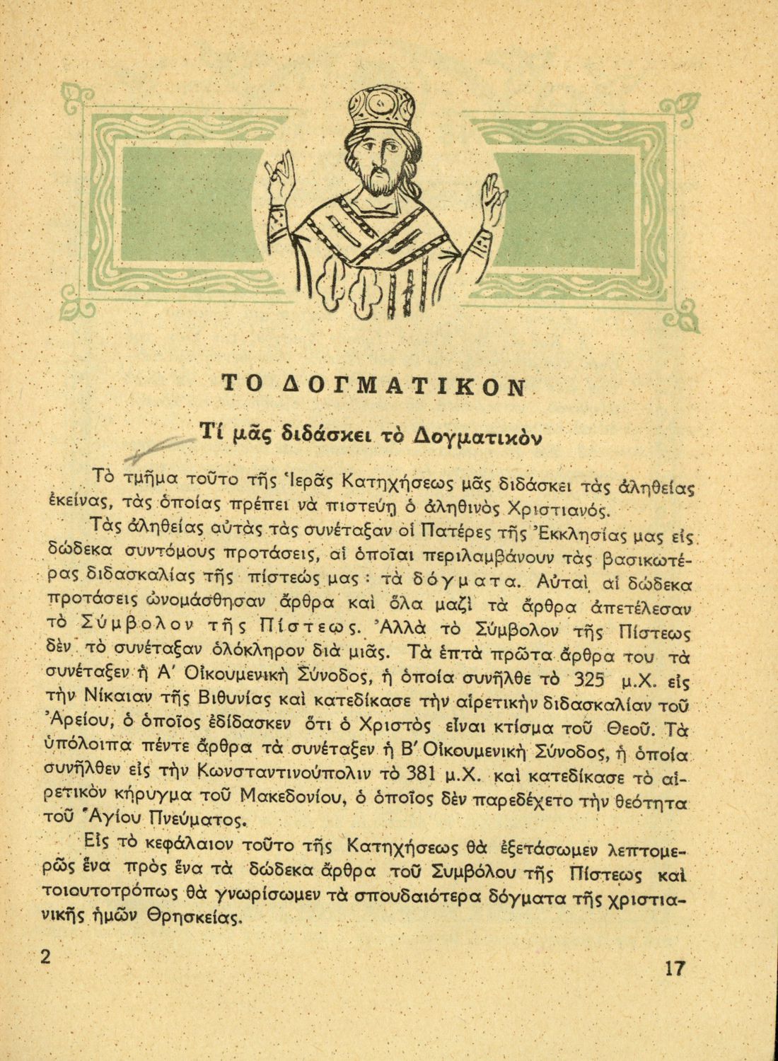 Μαθητικό βοήθημα Θρησκευτικών ΣΤ΄ Δημοτικού που αναλύει την έννοια της κατήχησης με έμφαση στο ορθόδοξο χριστιανικό δόγμα, το οποίο εξετάζει από δογματική και ηθική σκοπιά. Περιλαμβάνει και στοιχεία λειτουργικής της Ορθόδοξης Εκκλησίας και παράρτημα με προσευχές.