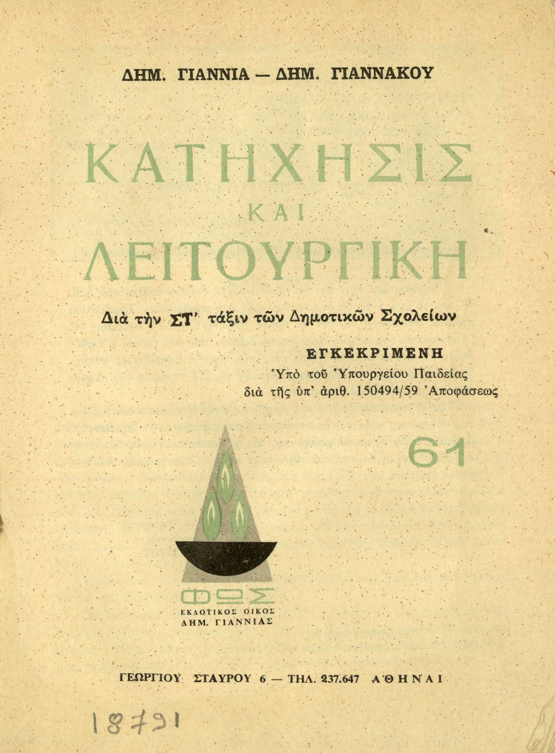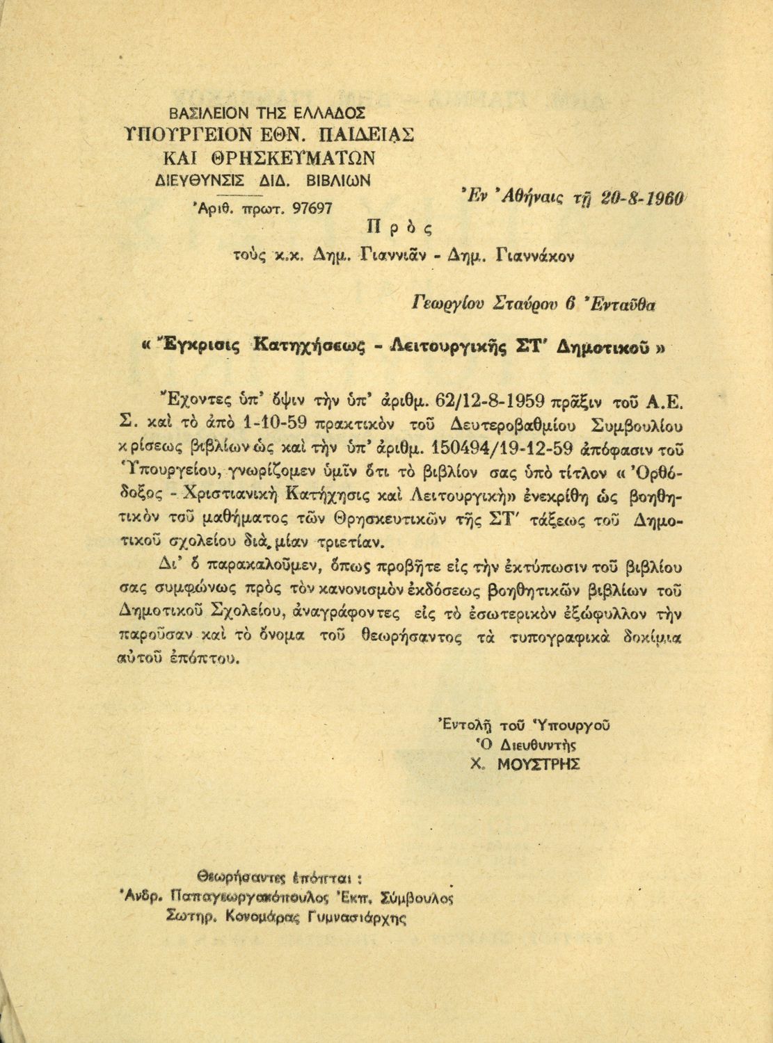 Έτος έκδοσης: 1959 Τόπος έκδοσης: Αθήνα Υπουργική απόφαση / Σύμβαση: 150494/1959 Έτος έγκρισης: 1959 |