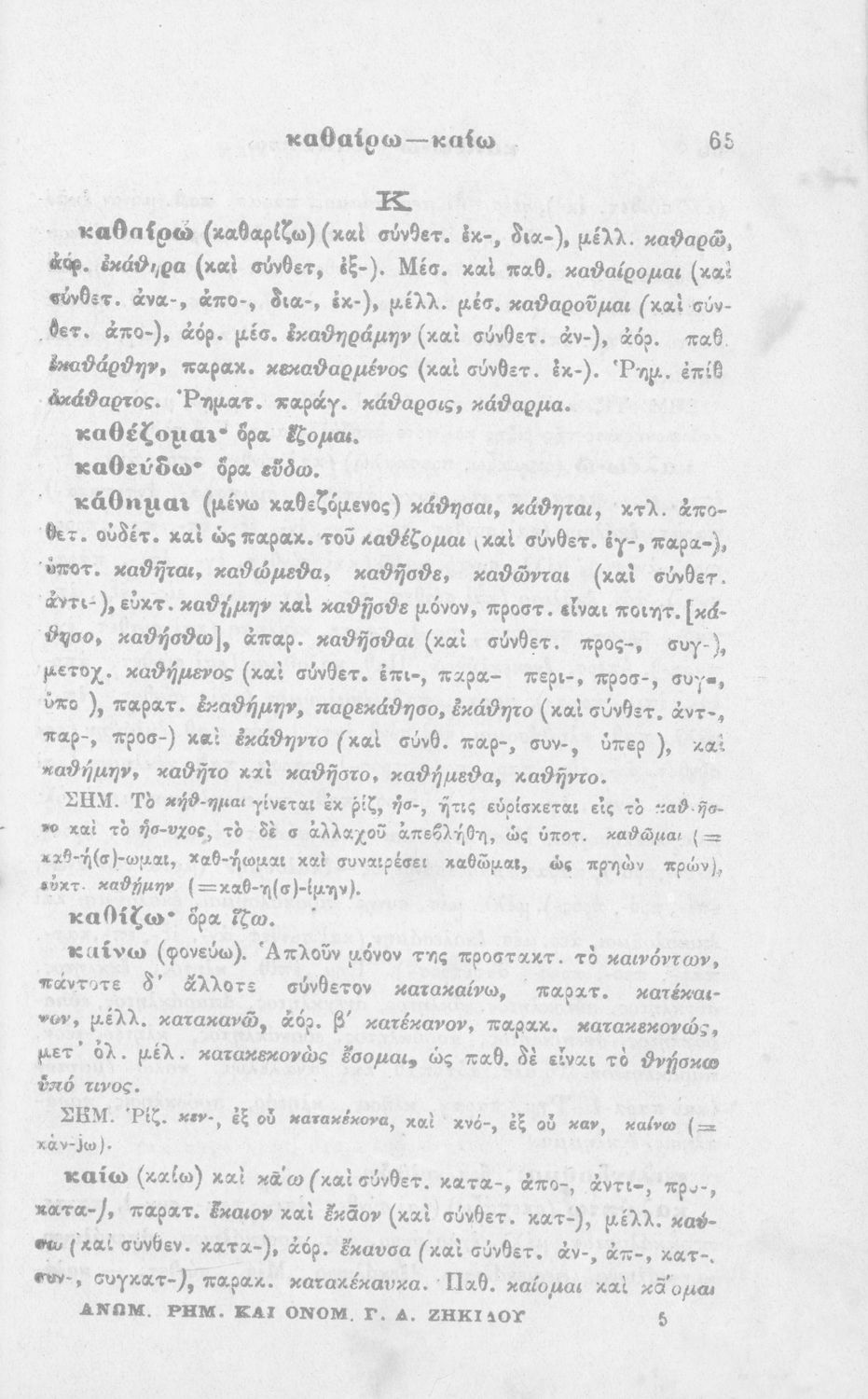 Μαθητικό βοήθημα Αρχαίων Ελληνικών για τα Ελληνικά Σχολεία, Παρθεναγωγεία και Γυμνάσια που περιλαμβάνει γραμματική της αρχαίας ελληνικής και κατάλογο ανωμάλων ρημάτων.
